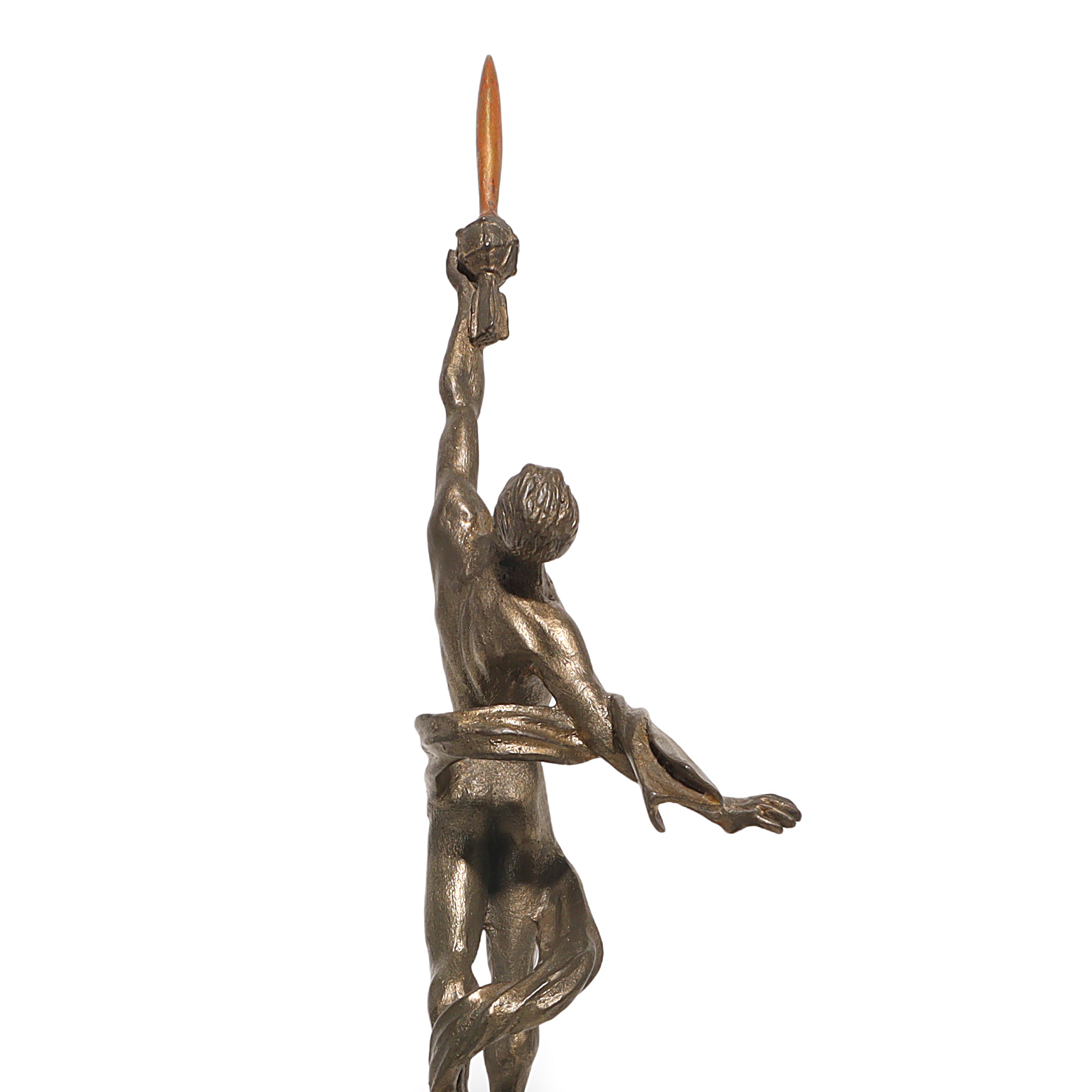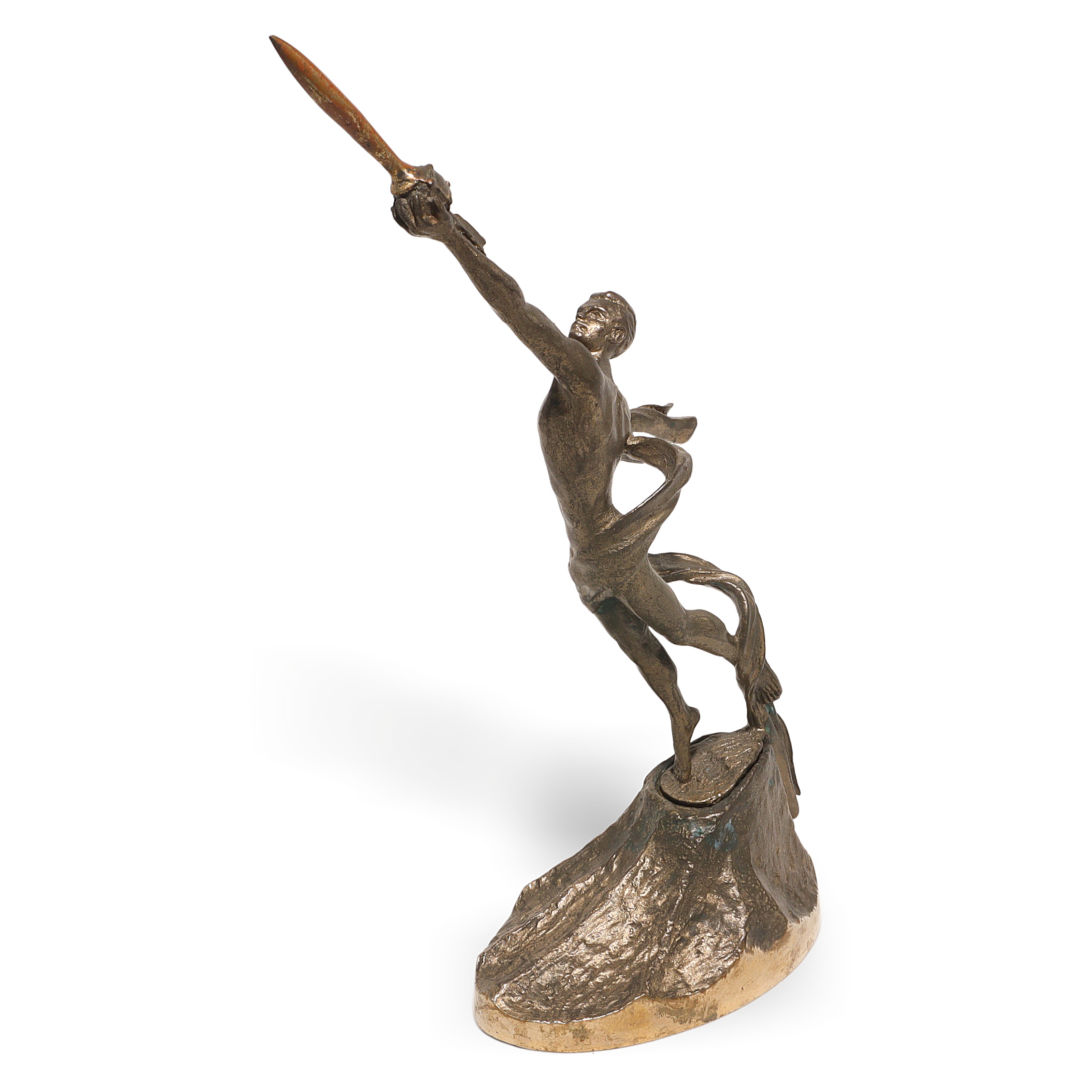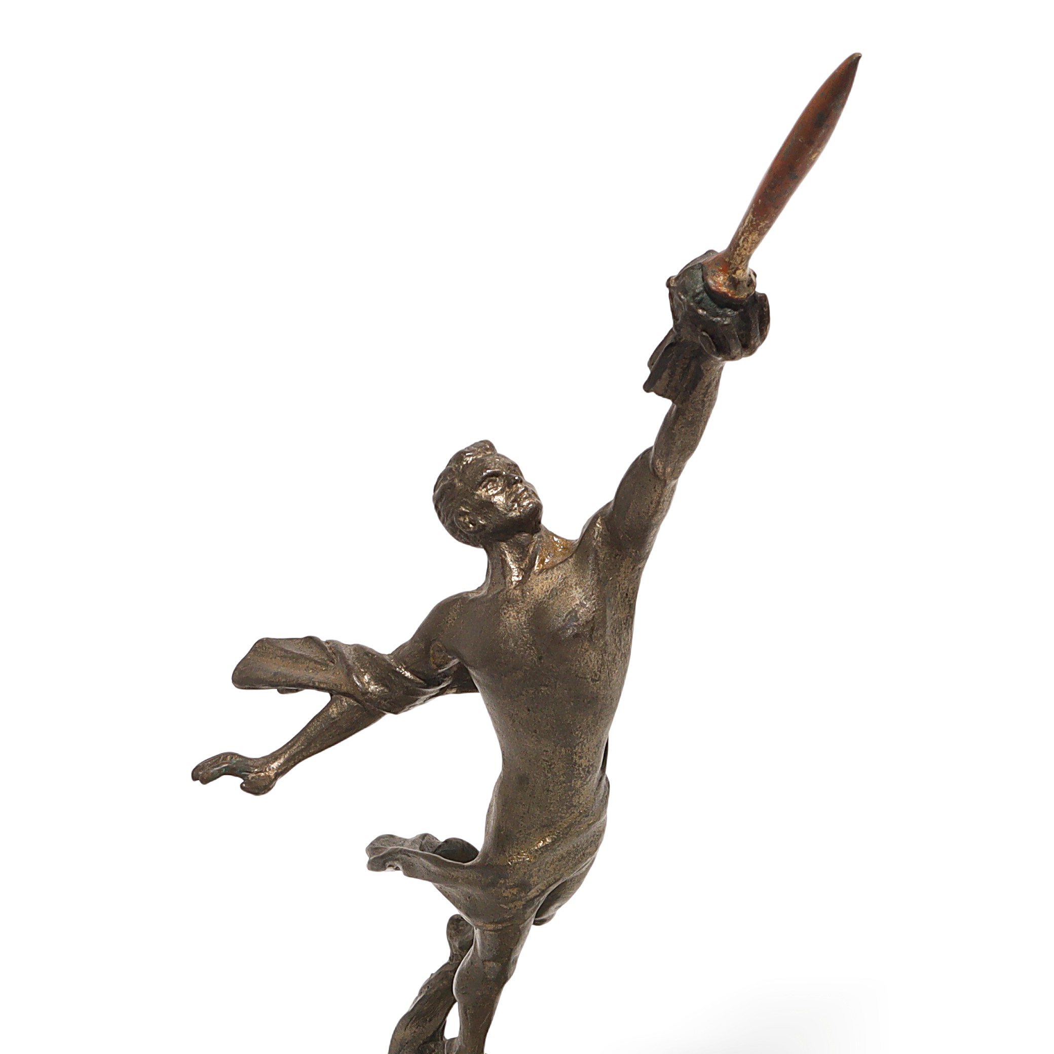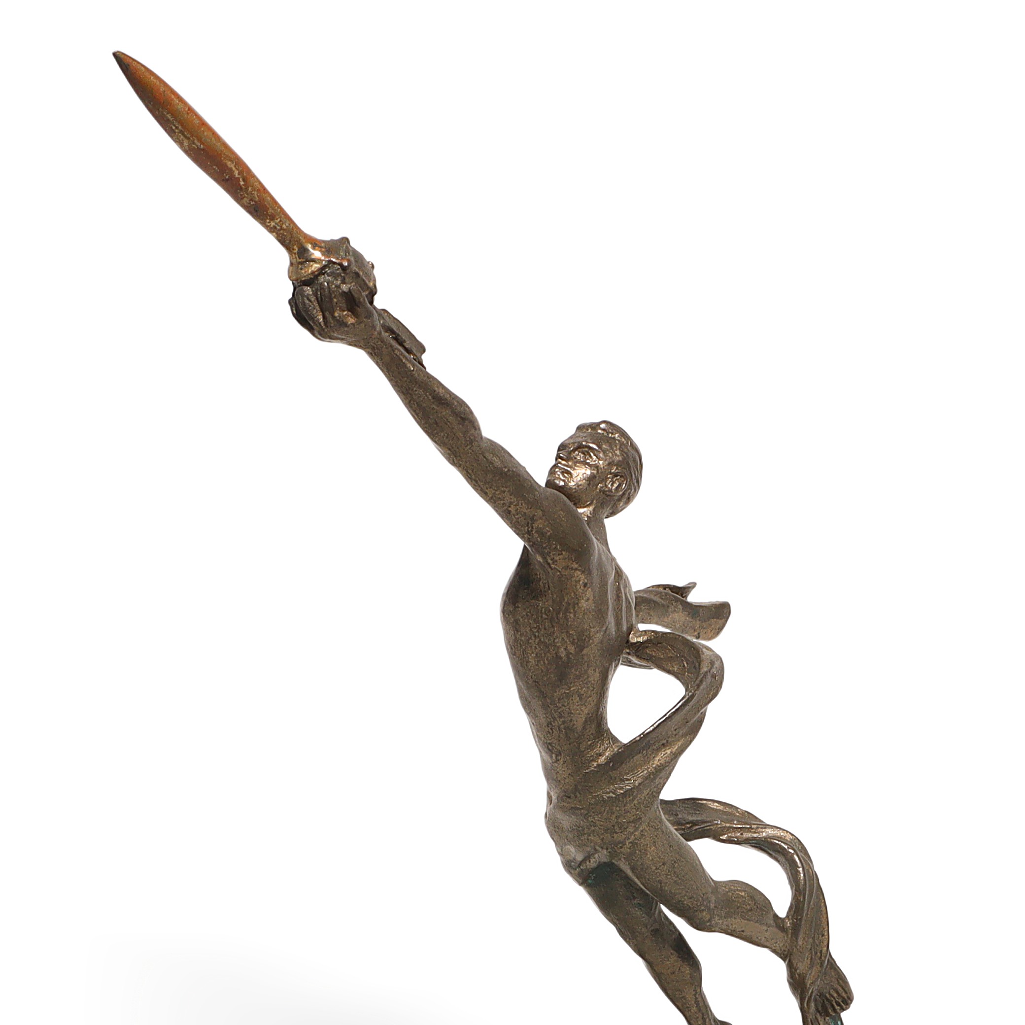 This is a vintage Art Deco–inspired bronze called Rocket Man, dated around 1960. The figure shows a streamlined male form springing…