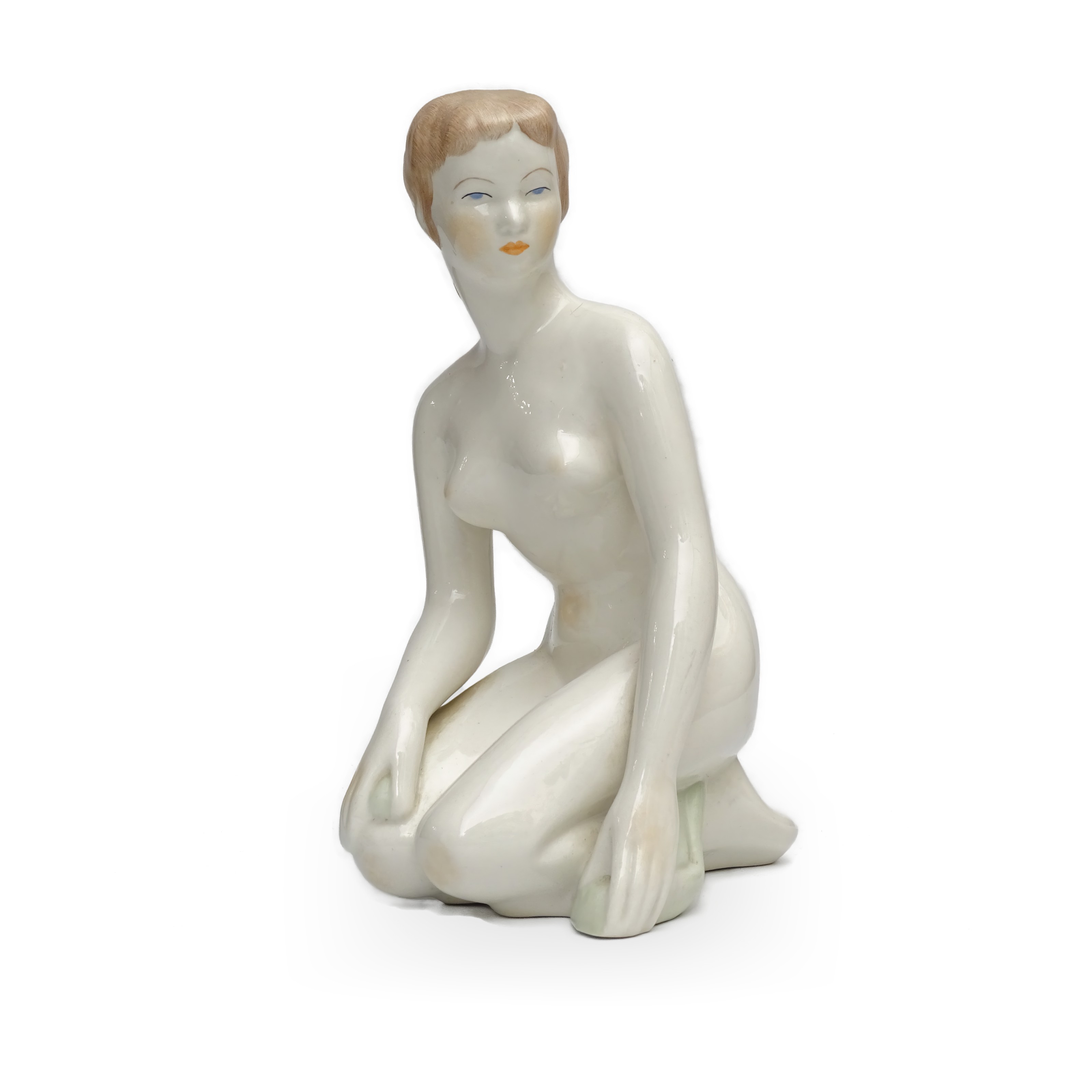 This unique piece you’re looking at is an Aquincum Nude Woman Kneeling sculpture, an Art Deco ceramic figurine that’s a true vintage find from around 1980. This elegant figure is a testament to the distinct style of the late 20th century, capturing the romanticism and grace reminiscent of the Art Deco movement. Despite being over four decades old, this exquisite piece is in near mint condition, which is quite impressive for a ceramic item of this age. The figure’s pose is serene and contemplative, making it a sophisticated addition to any home decor. It’s perfect not only as a romantic gift but also as a charming piece for any collector of vintage ceramics.