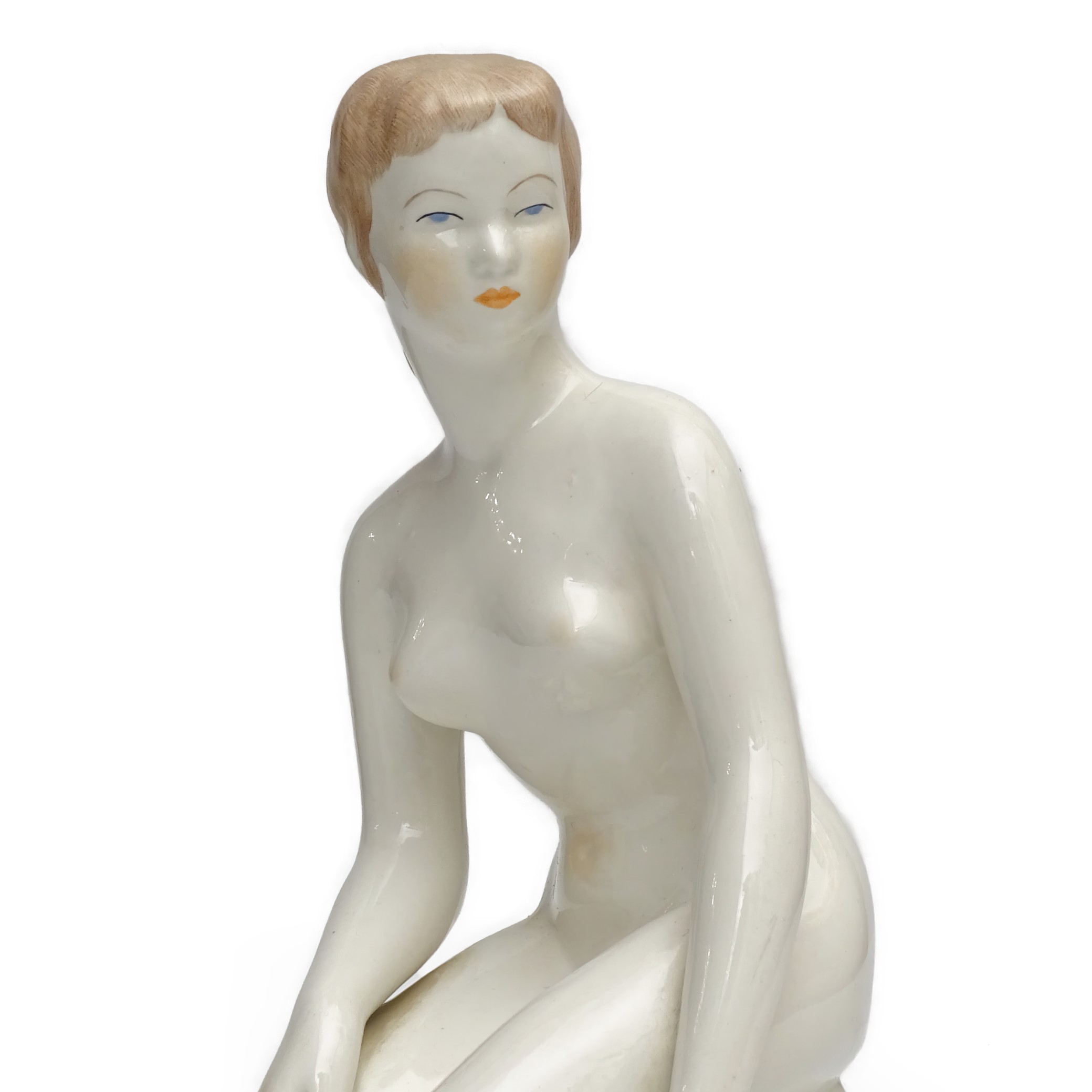 The Art Deco influence in this sculpture is evident through its clean lines and elegant form, emphasizing the movement’s focus on luxury and modernity. Figurines like this are rare finds today, especially in such pristine condition. Collectors and enthusiasts appreciate the historical value these pieces bring, encapsulating a moment in time when art and functionality were seamlessly intertwined in everyday objects.