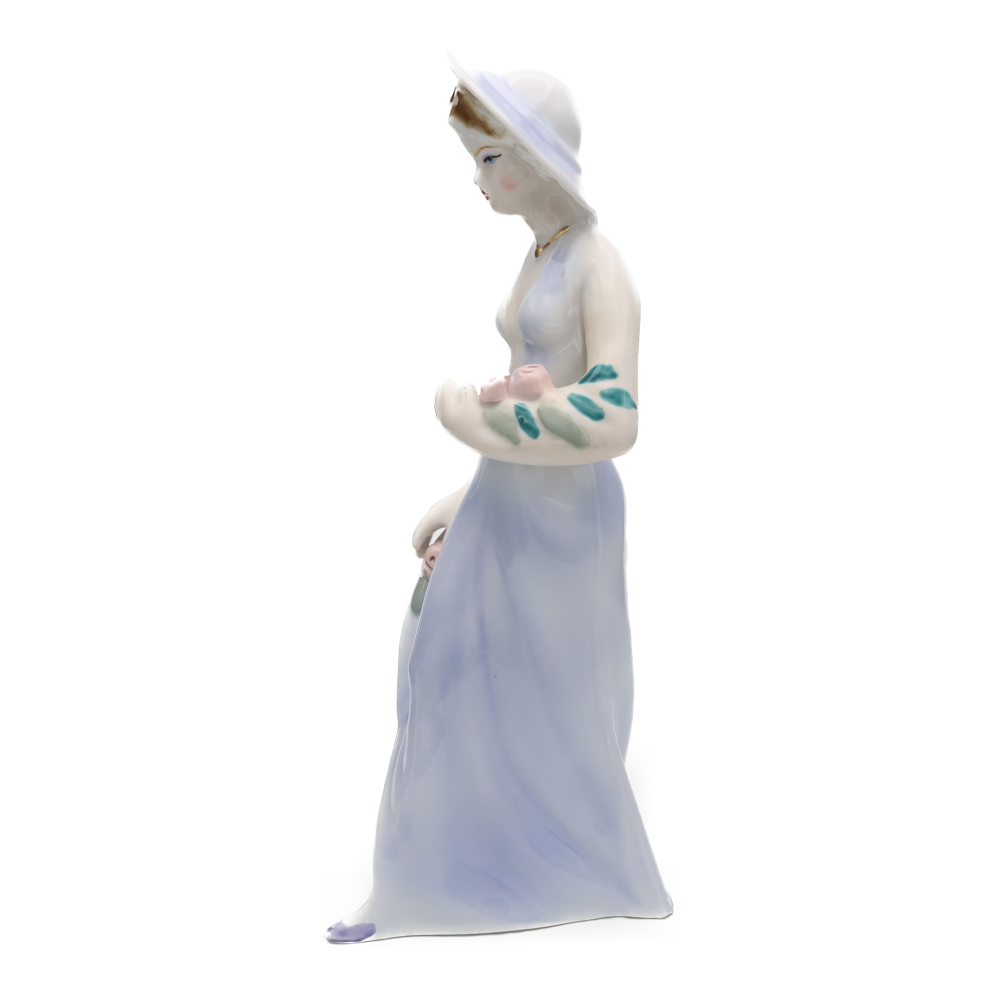 Vintage figurines like this one are symbolic of a bygone era, where craftsmanship was key and details mattered. Unlike mass-produced items of today, each piece from these times typically involved a level of artistry and hand-finishing that makes them unique. This particular figurine, despite its mid-20th century manufacture date, is a nod to the aesthetic principles of an earlier period, making it both a decorative piece and a conversation starter.
