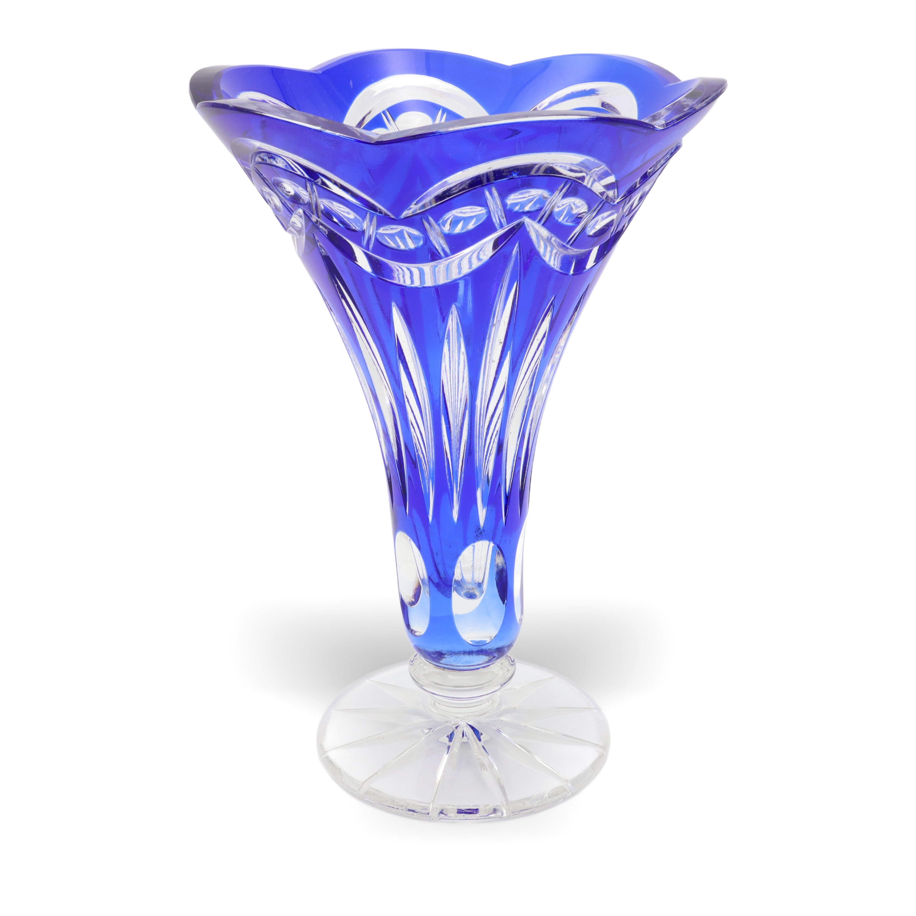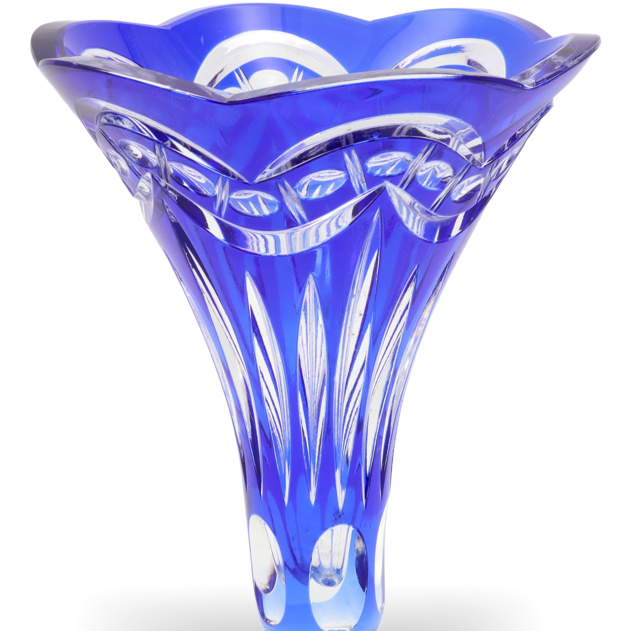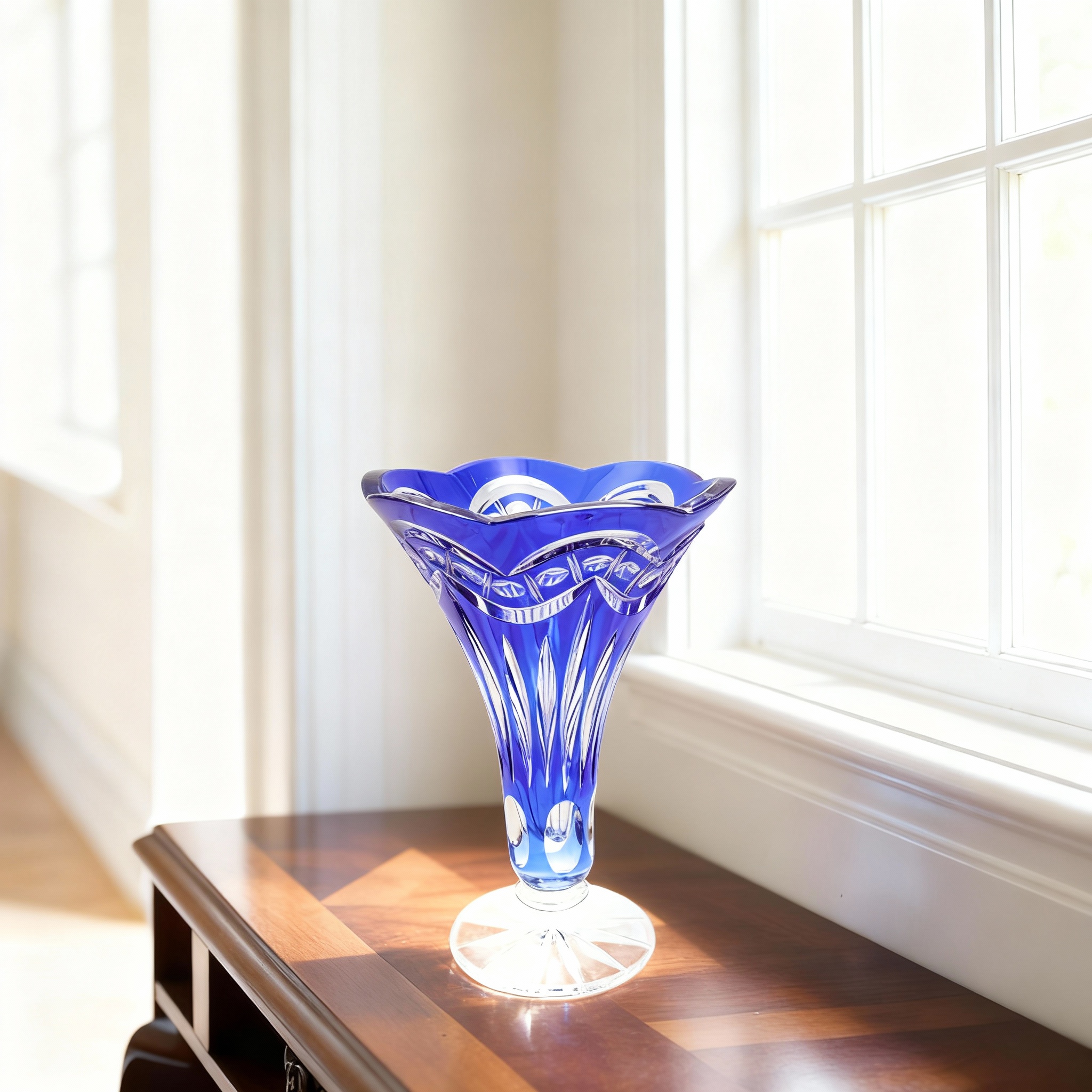 Bohemia Blue Crystal Hand Cut Vase - Czech Glass