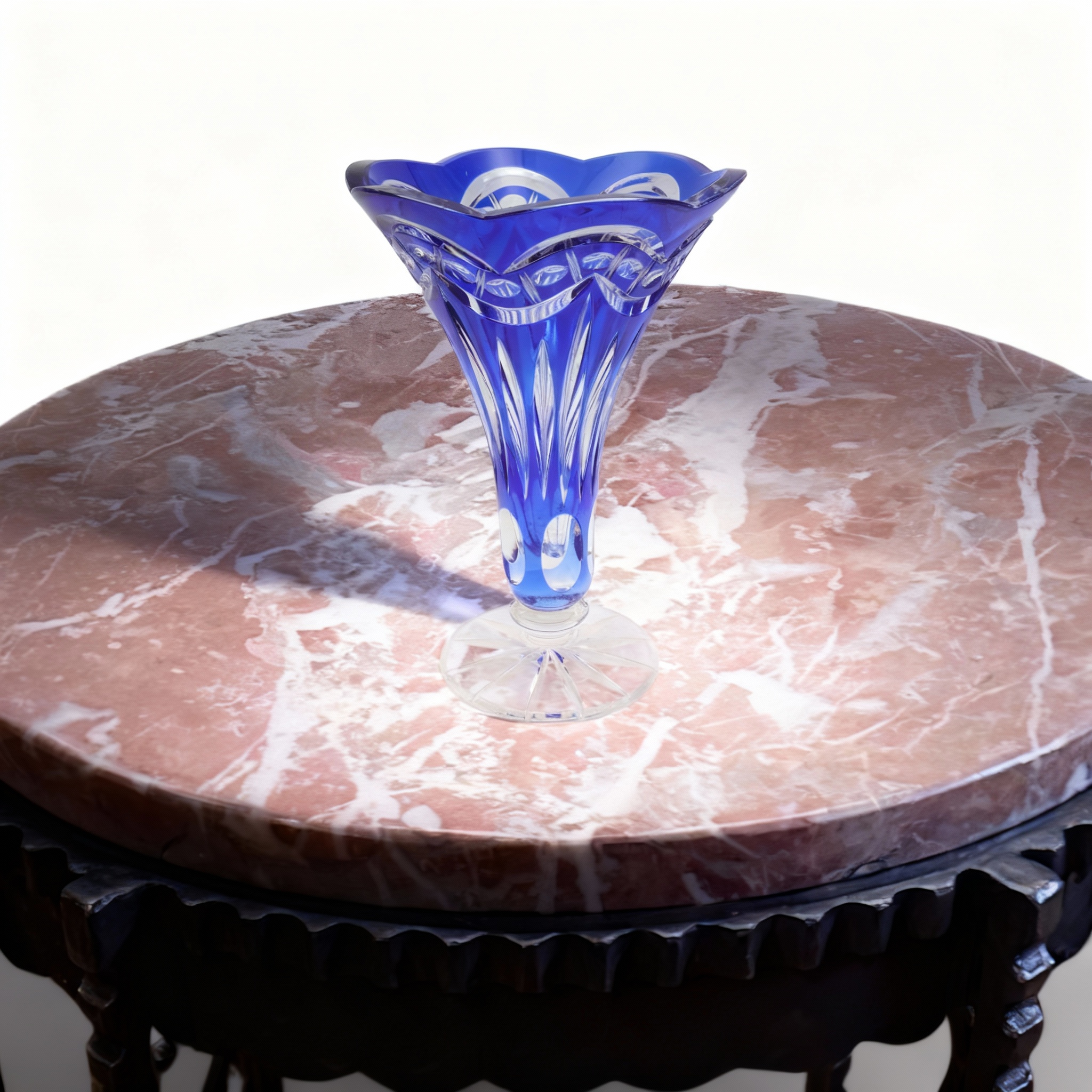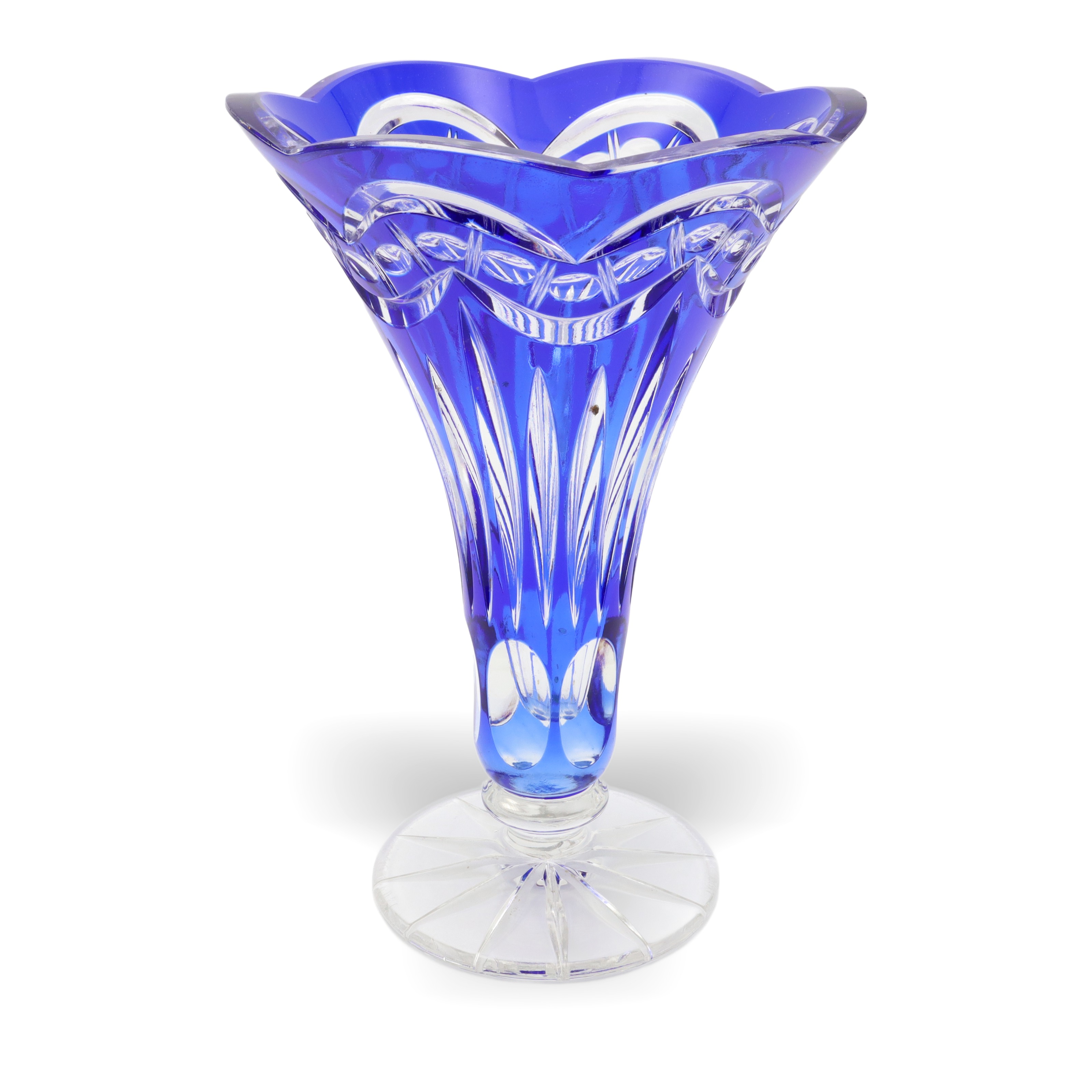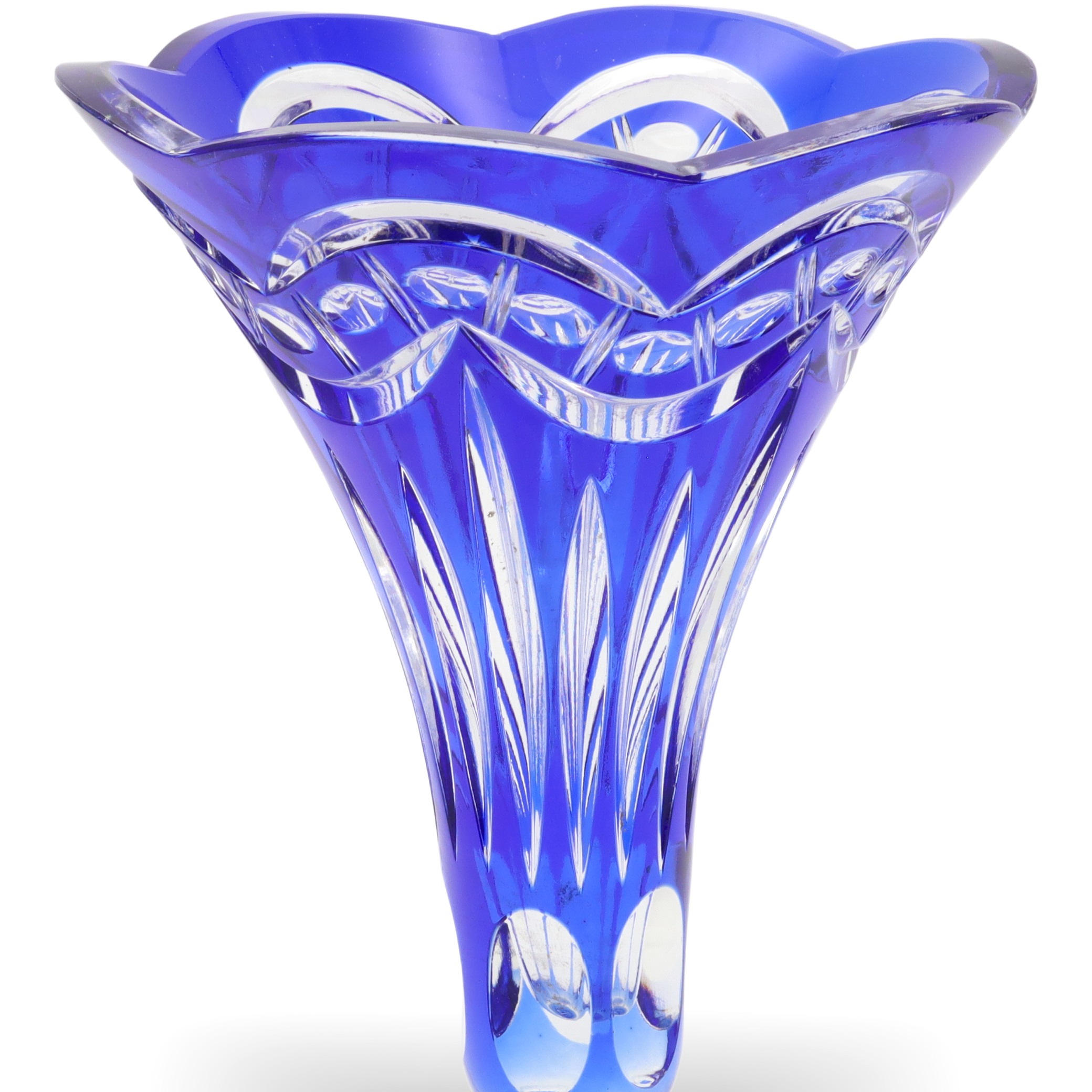 Bohemia Blue Crystal Hand Cut Vase - Czech Glass