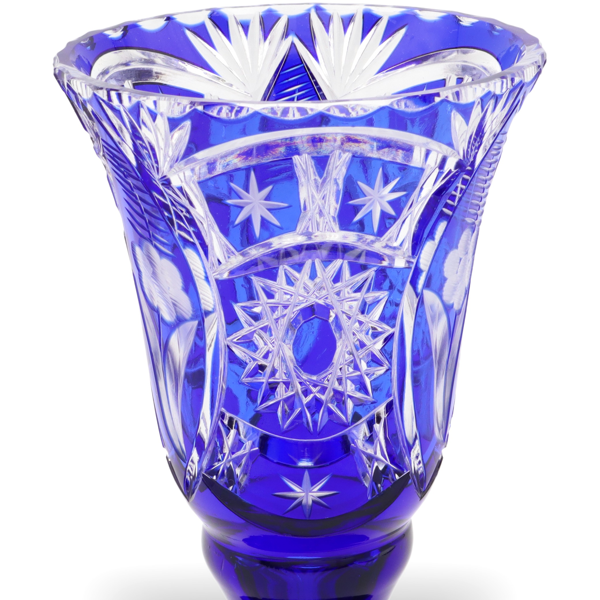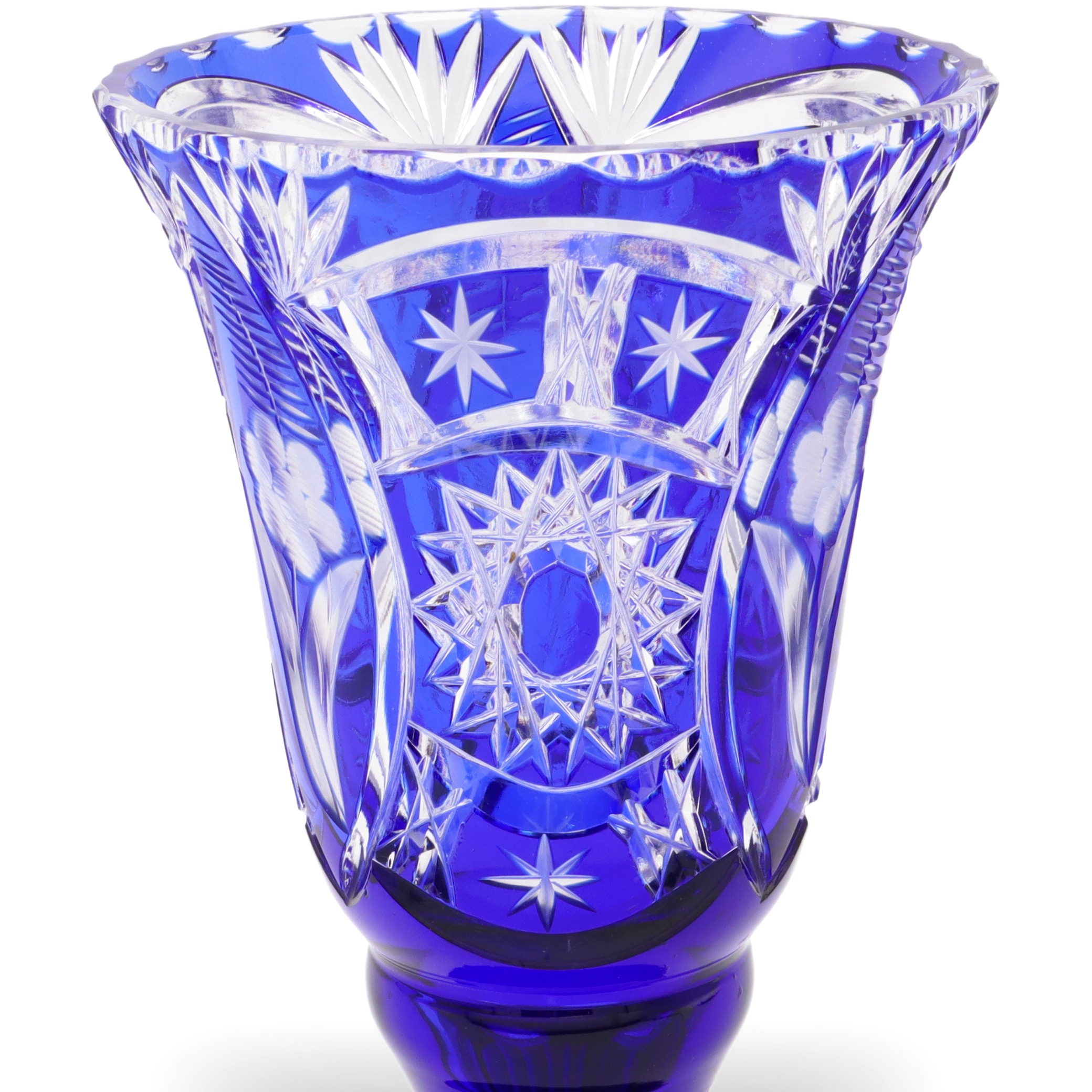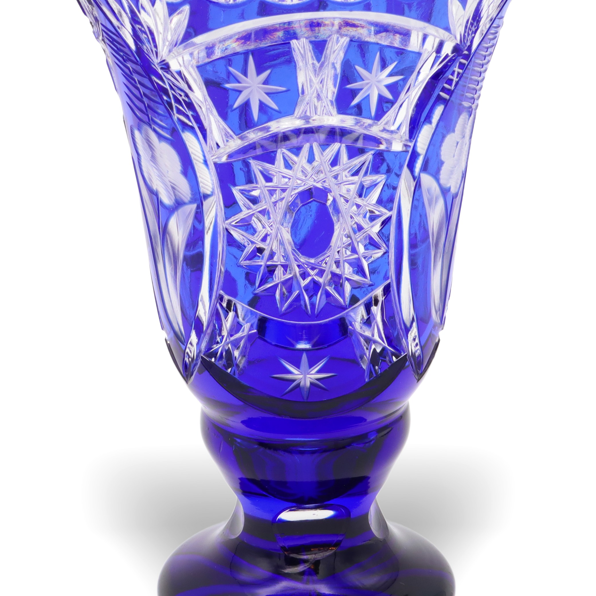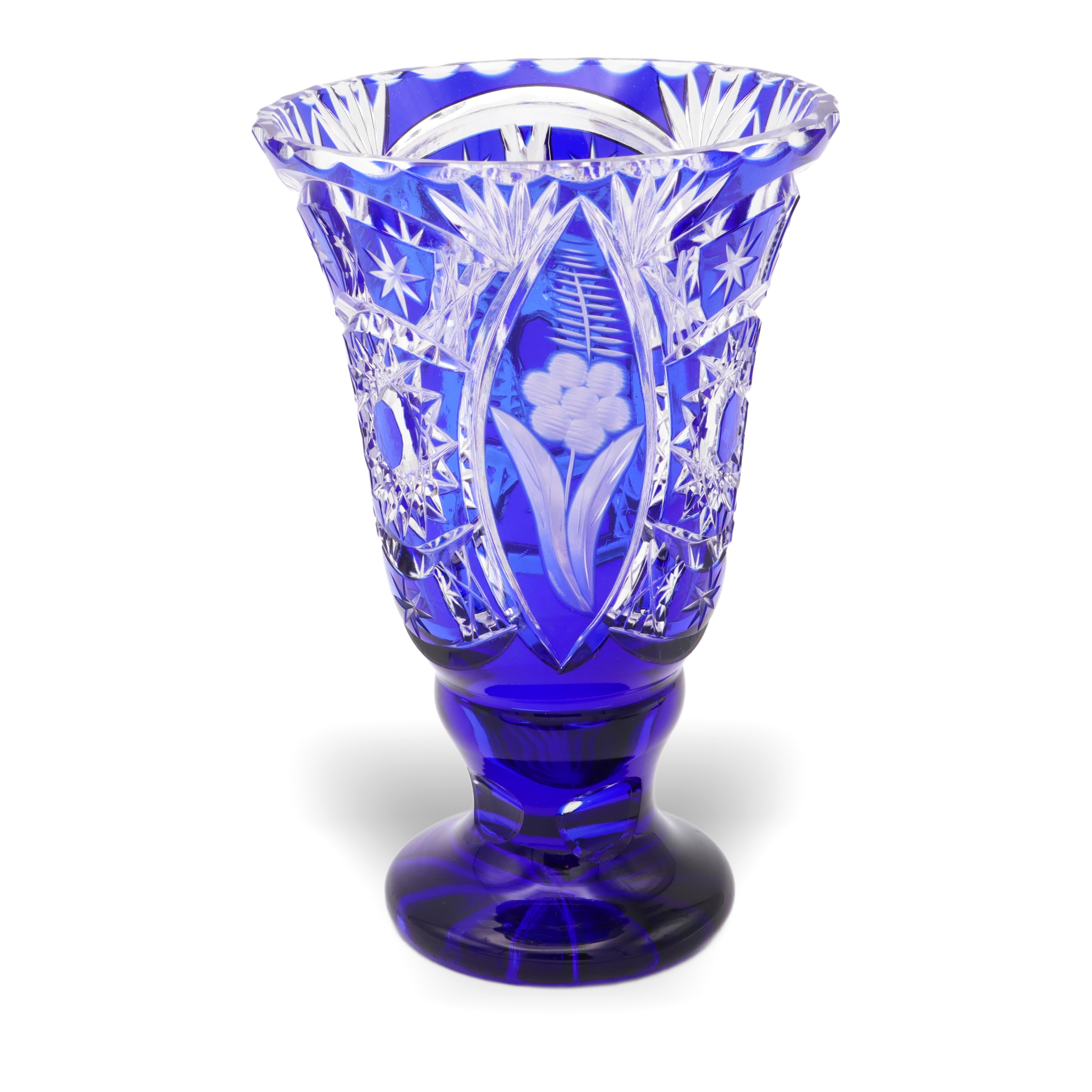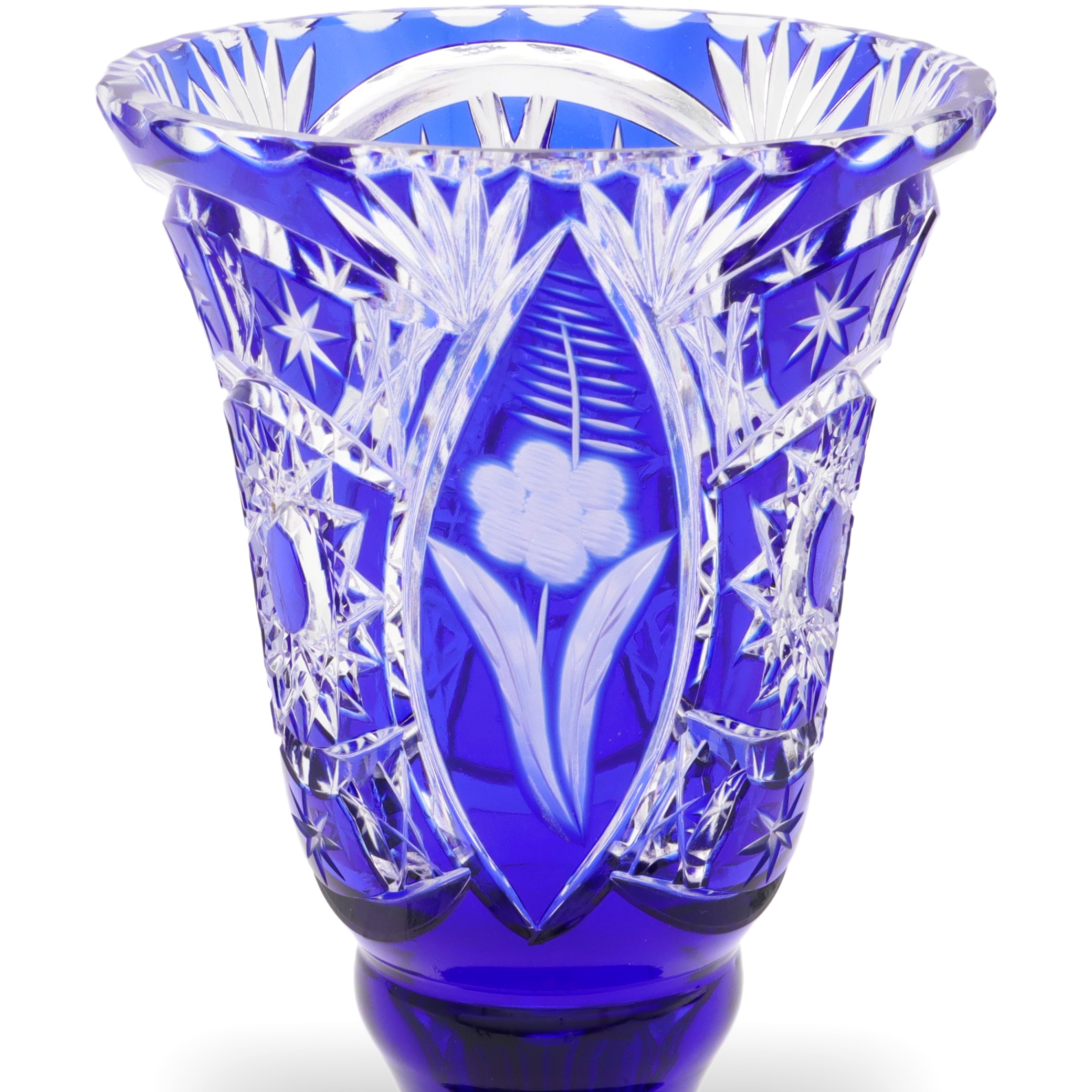 This striking piece is a Bohemia crystal glass hand-cut blue flower vase, crafted around 1960. The deep blue color and intricate hand-cut…