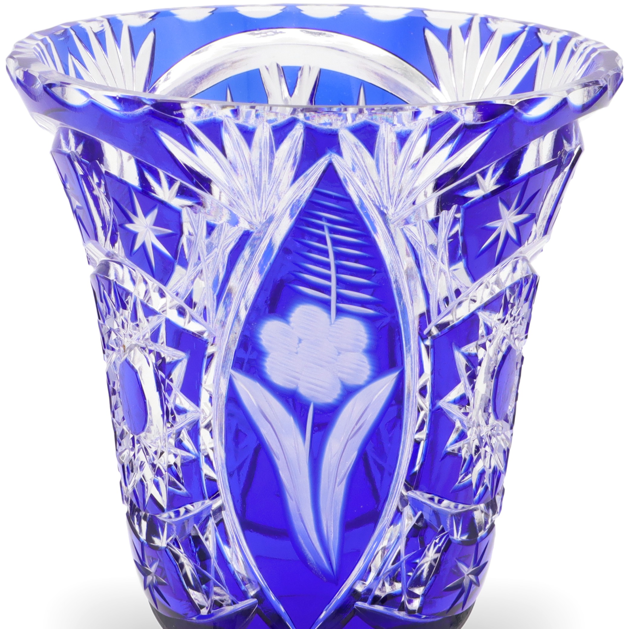 This striking piece is a Bohemia crystal glass hand-cut blue flower vase, crafted around 1960. The deep blue color and intricate hand-cut star and floral patterns make it instantly eye-catching. Standing at about 5.5 inches high and 3.5 inches wide, it’s big enough to be used as a centerpiece but not so large that it dominates a table. It’s in near mint condition, meaning it’s almost as perfect as the day it was made—hardly any wear or blemishes, which is pretty rare for a piece over six decades old. If you put it in the sunlight, the way it catches and reflects light is truly something special. This kind of vase isn’t just for show; you could pop in a few fresh flowers and bring a pop of color (and a bit of history) to any room.