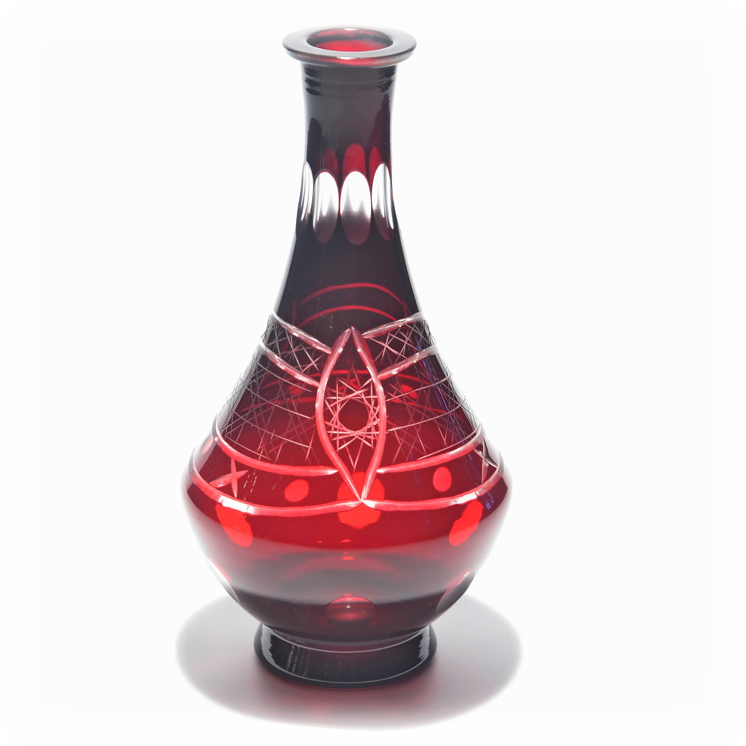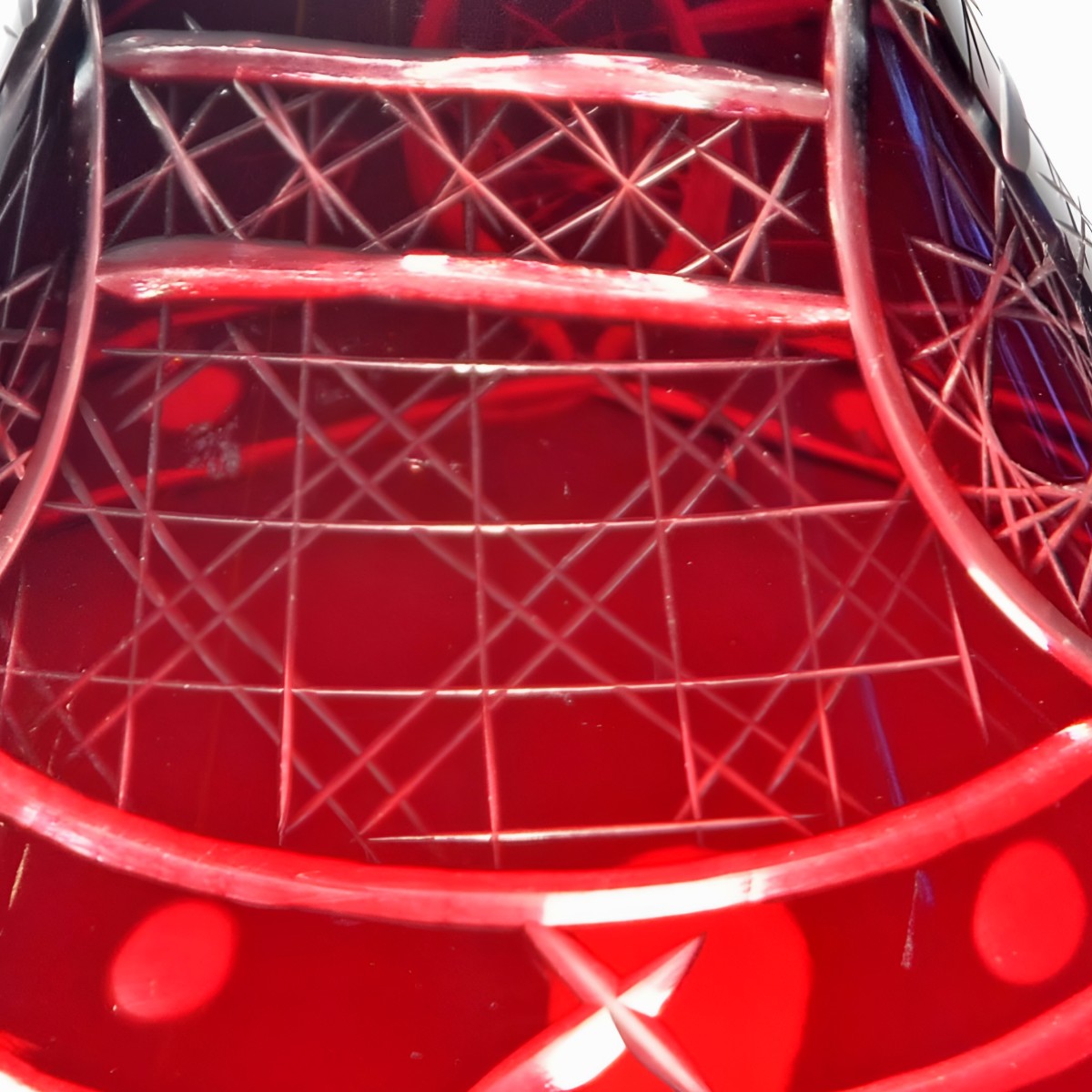 Introducing an exquisite piece of craftsmanship: this Bohemian Red Lead Crystal Decanter with a stunning porcelain finish. Imagine walking into a room where this radiant decanter sits — the rich, ruby-red color immediately captures your eye and brightens the space with its brilliant sparkle. Whether you’re hosting a dinner party or simply enjoying a quiet evening at home, this decanter brings a touch of elegance and style that’s hard to miss. It’s not just a functional item; it’s a conversation starter and a testament to fine Bohemian artistry, measuring approximately 12 inches in height and 6 inches in width.