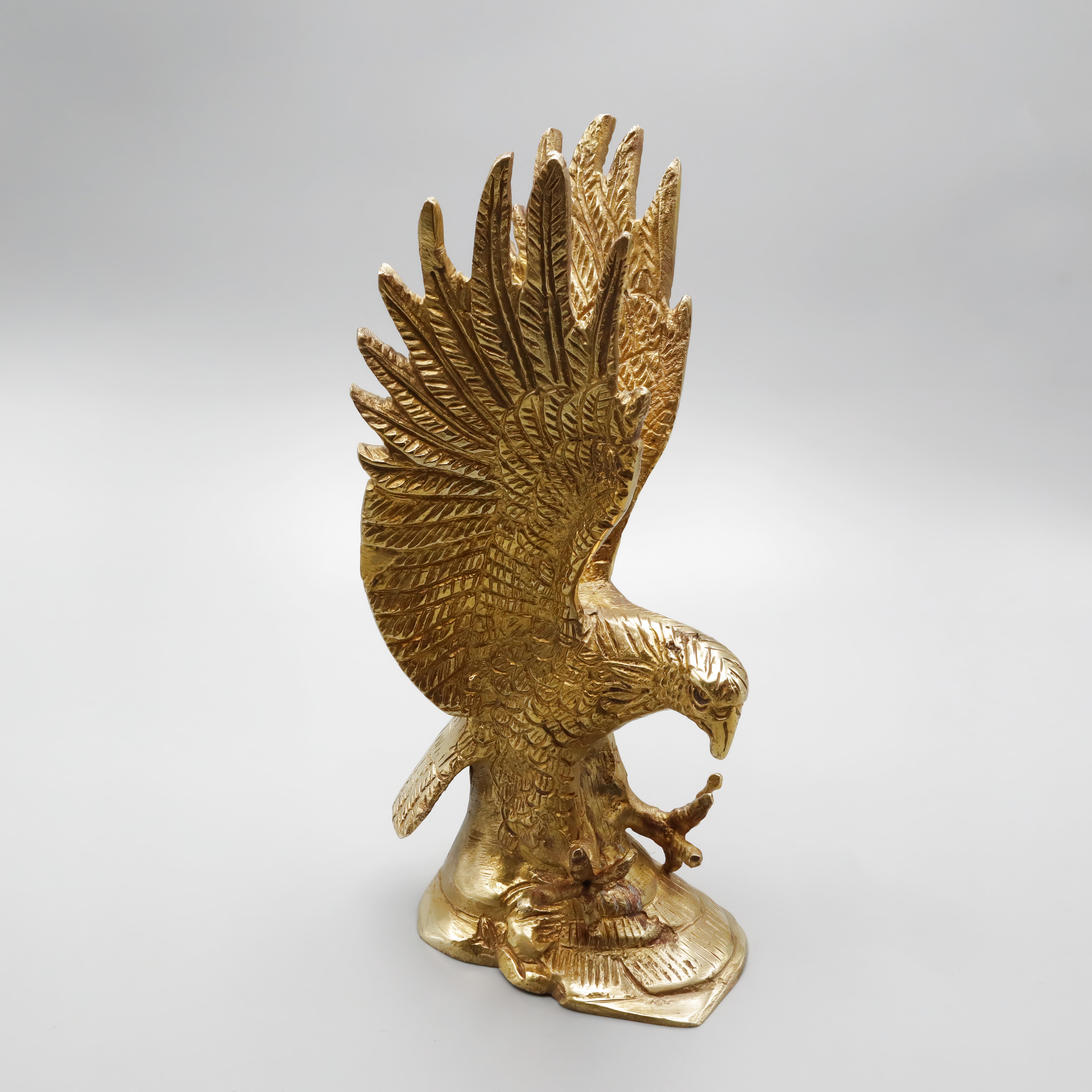 In terms of its lineage, bronze sculptures like this have been cherished across various cultures for centuries due to their durability and aesthetic appeal. This particular piece taps into a long tradition of animal art, often admired for conveying both a sense of realism and artistic interpretation. Vintage eagle figurines have always been popular among collectors, symbolizing honor and prestige. The rarity and age of such pieces make them valuable, as they are not mass-produced and often tell a story of their own, possibly spanning decades. The use of bronze adds a rustic yet timeless quality, ensuring that the piece has stood the test of time both in terms of physicality and artistic relevance. Whether you’re a seasoned collector or someone looking to add a unique touch to your home, this eagle figurine offers a glimpse into history and a testament to skilled craftsmanship.