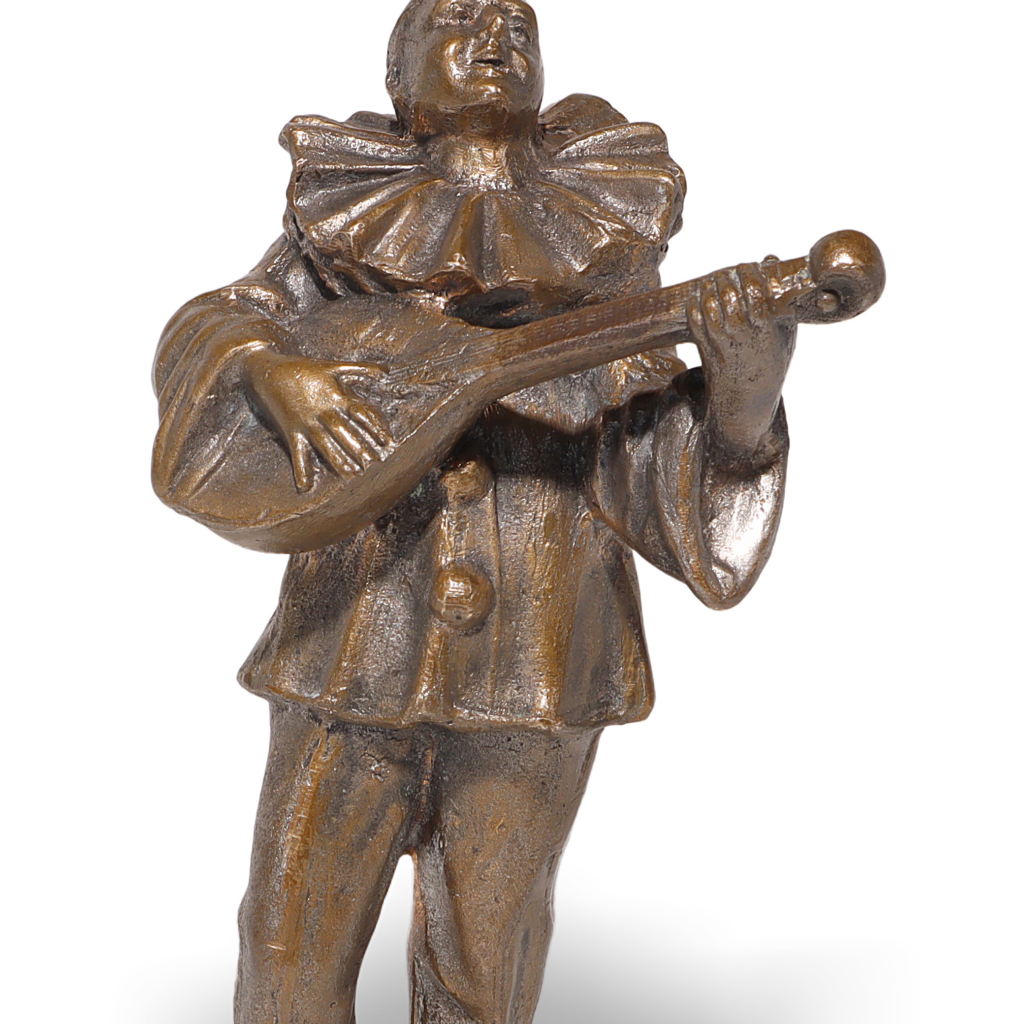This charming piece is a bronze figurine of a Pierrot, the classic French clown, strumming away on his mandolin. Made around…