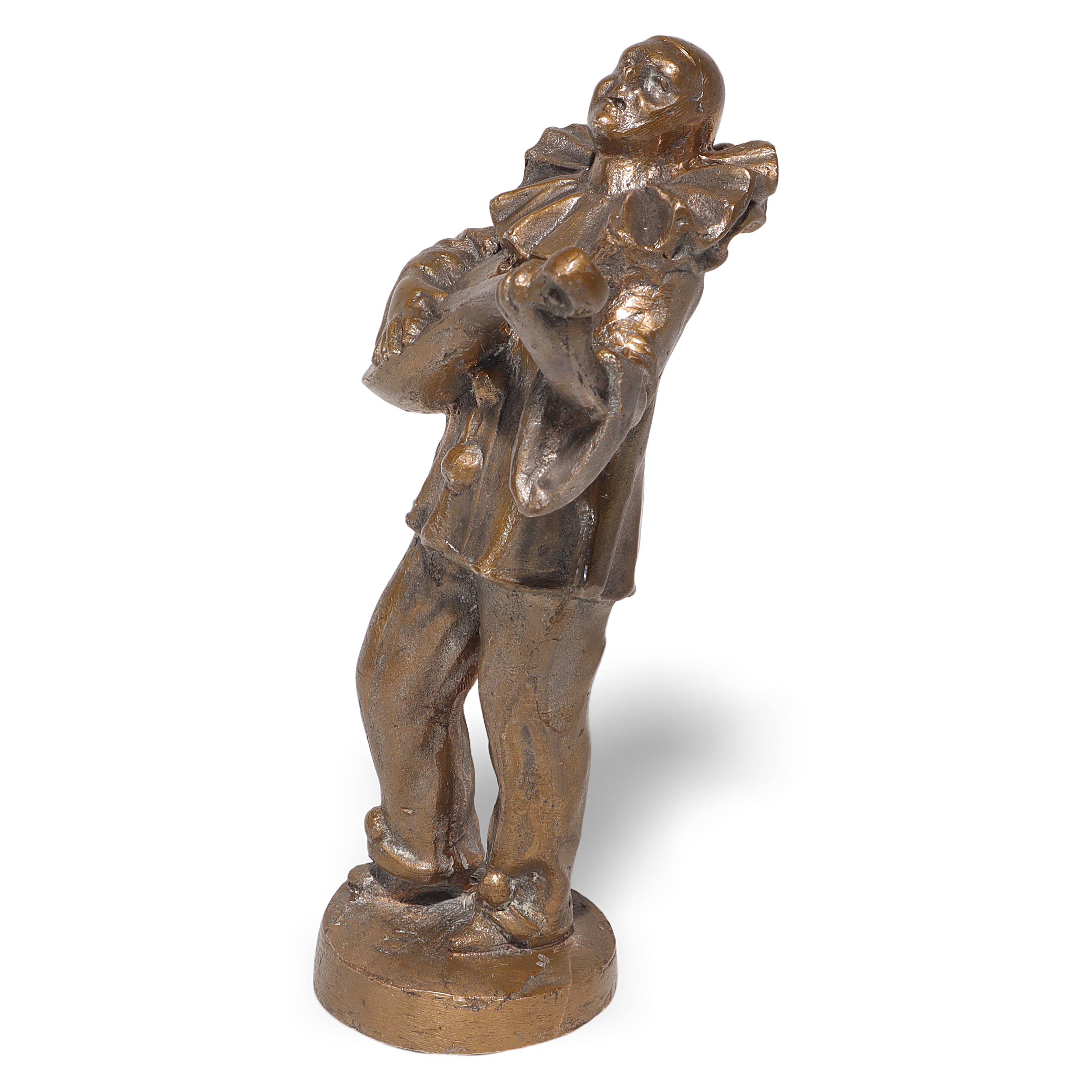 This charming piece is a bronze figurine of a Pierrot, the classic French clown, strumming away on his mandolin. Made around 1970, this sculpture stands 6 inches tall, 2.5 inches wide, and 2 inches long, and it’s in near mint condition—even after more than fifty years. The details are lovely, from the whimsical ruffled collar to the expressive way he’s holding his instrument. It has that old-world, nostalgic feel that instantly draws your eye. Statues like this don’t pop up every day, so if you’re drawn to vintage décor or have a fondness for European theater traditions, this is probably a little treasure you’d want for your shelf.