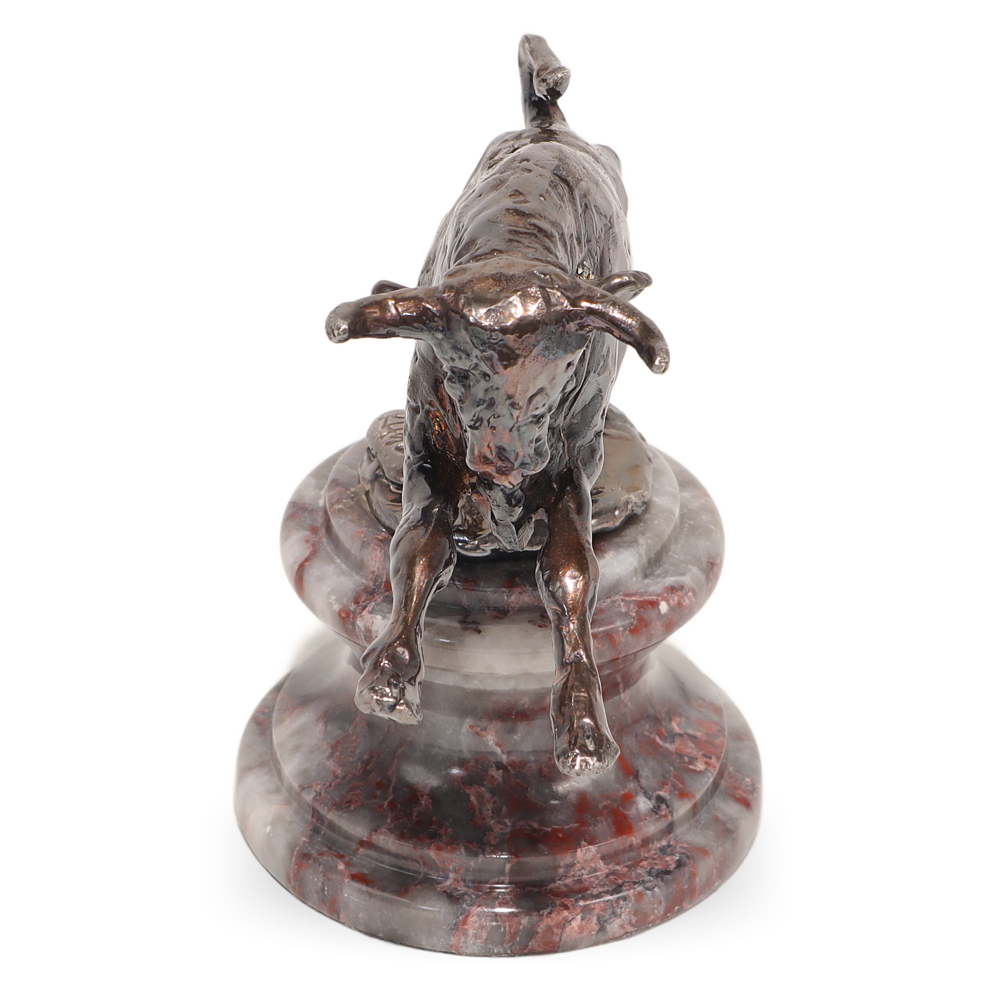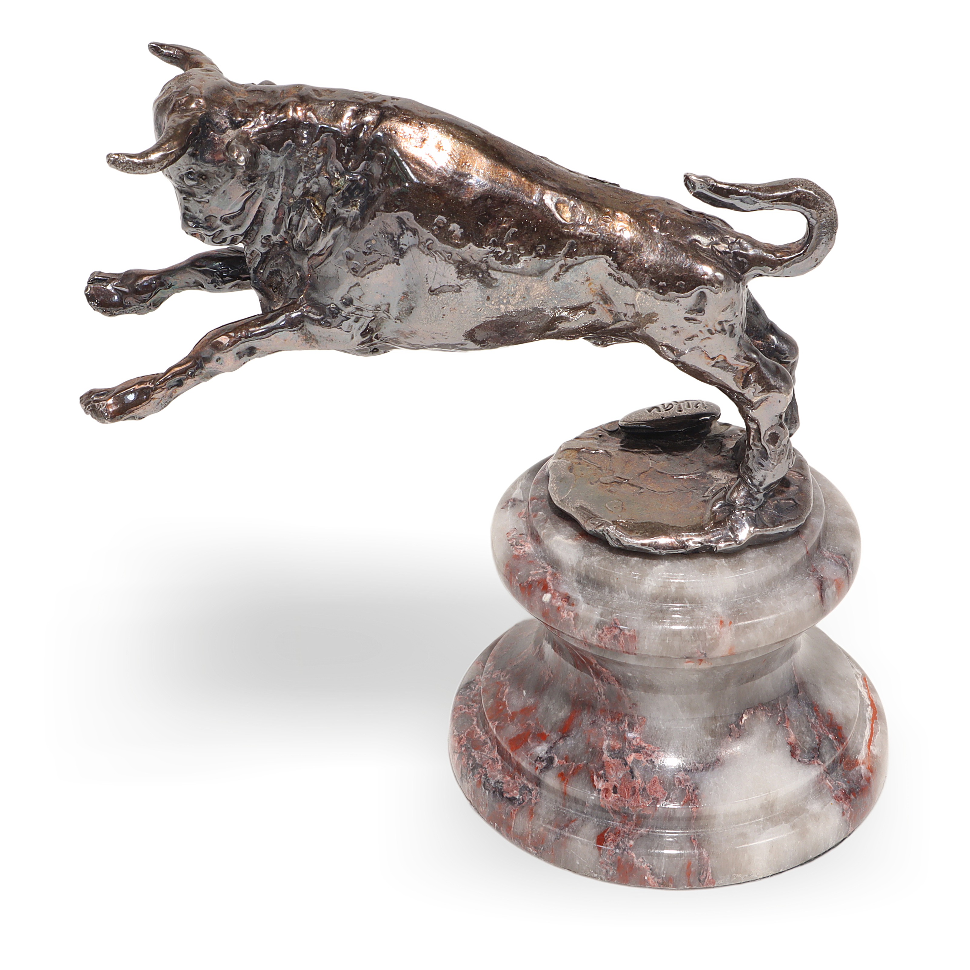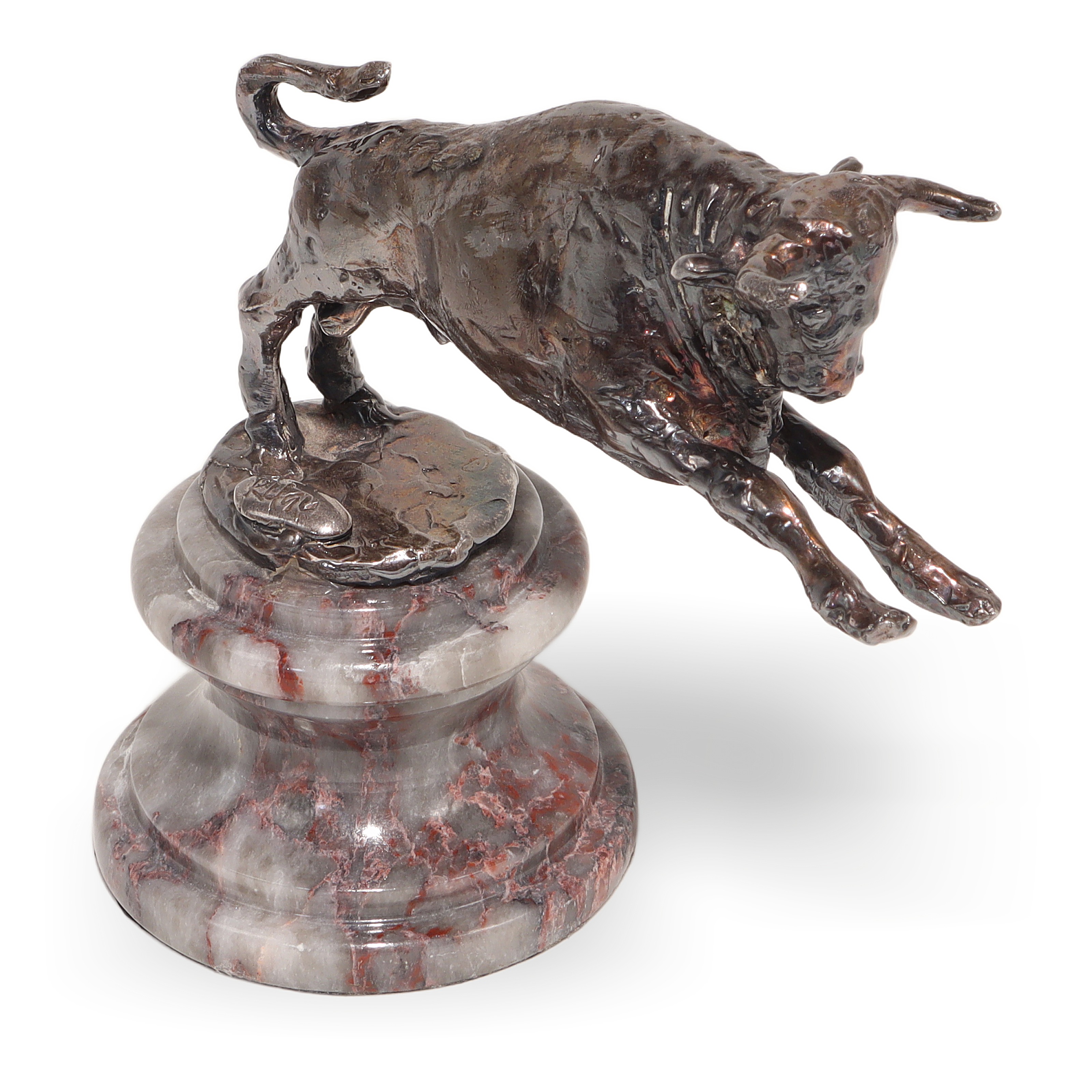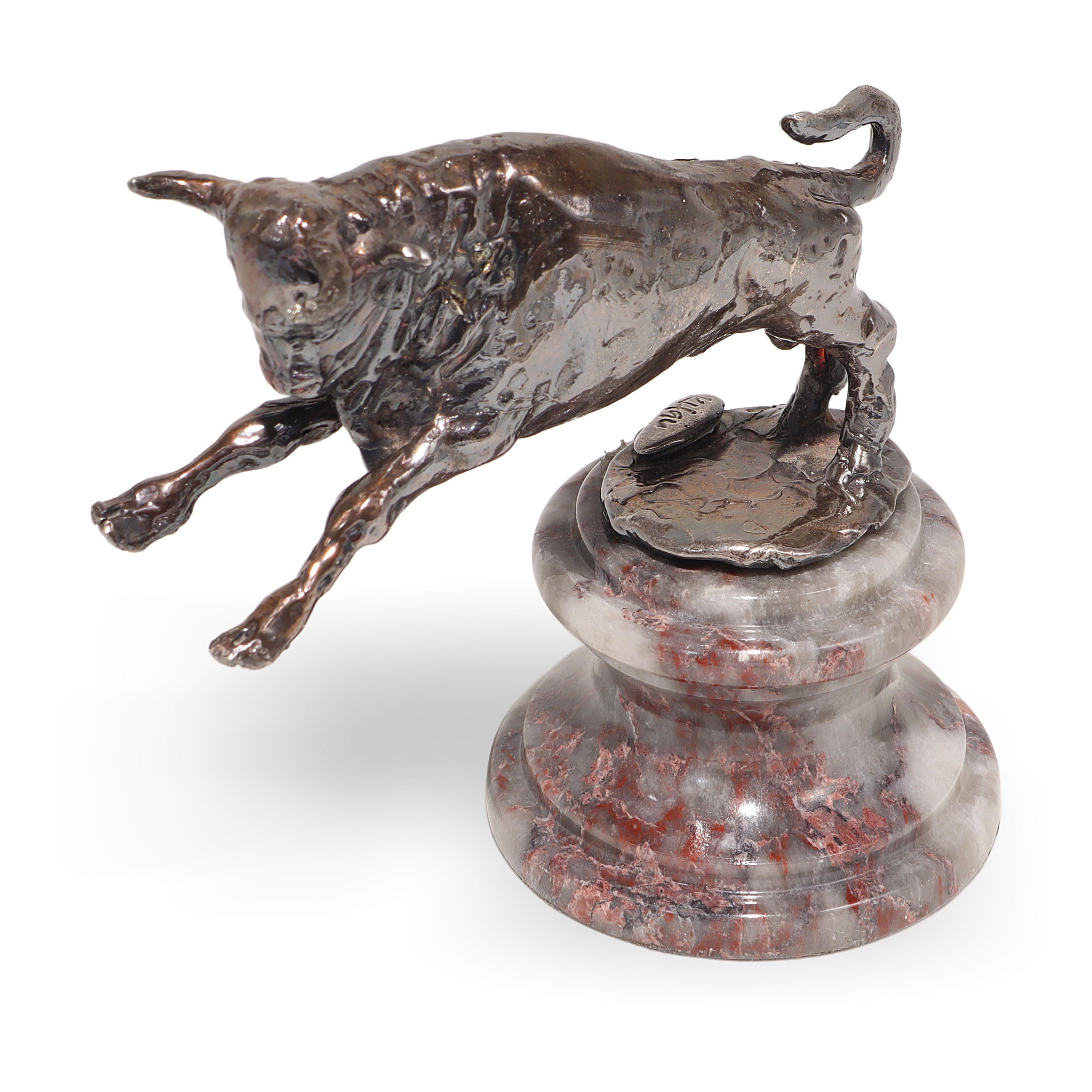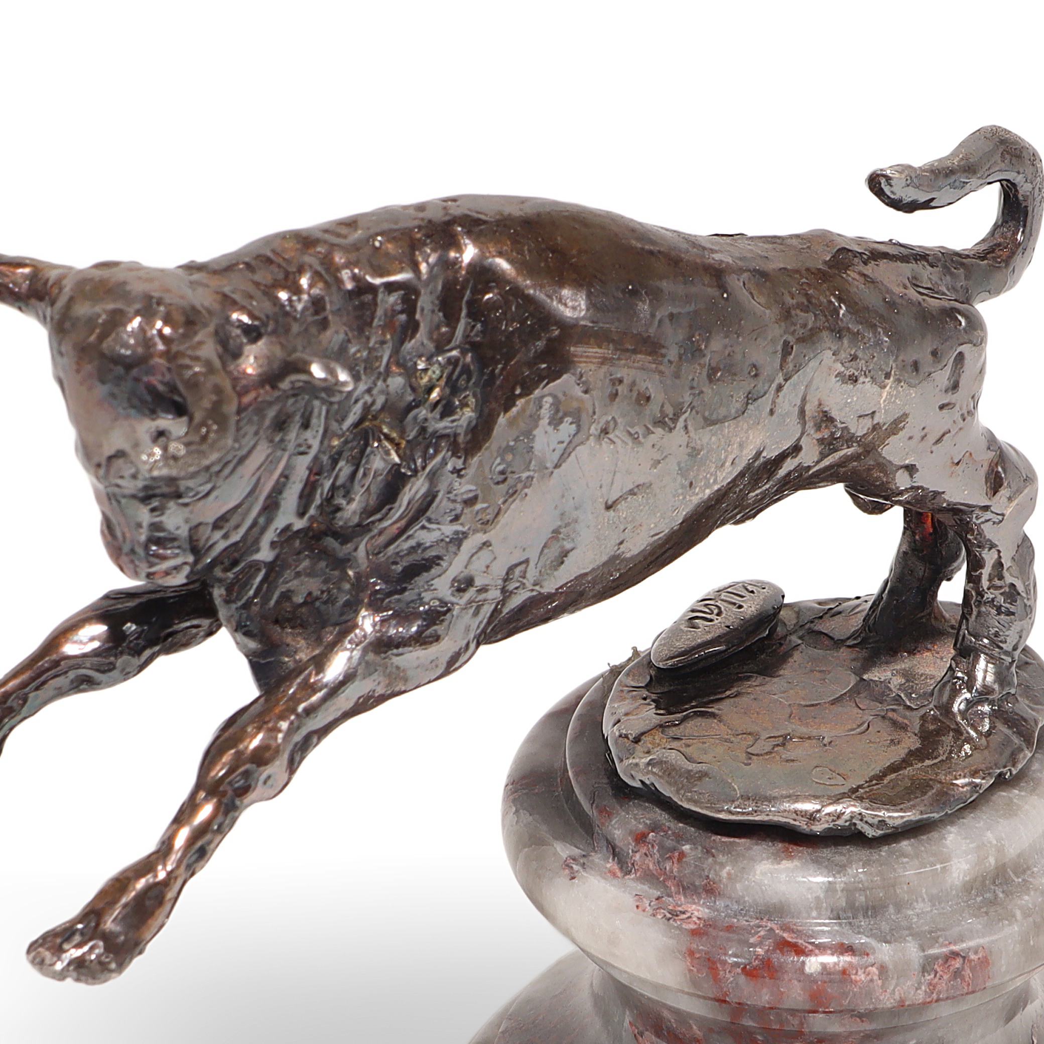 This unique piece is a vintage bull sculpture crafted from metal and mounted on a striking marble base. Standing at 5…