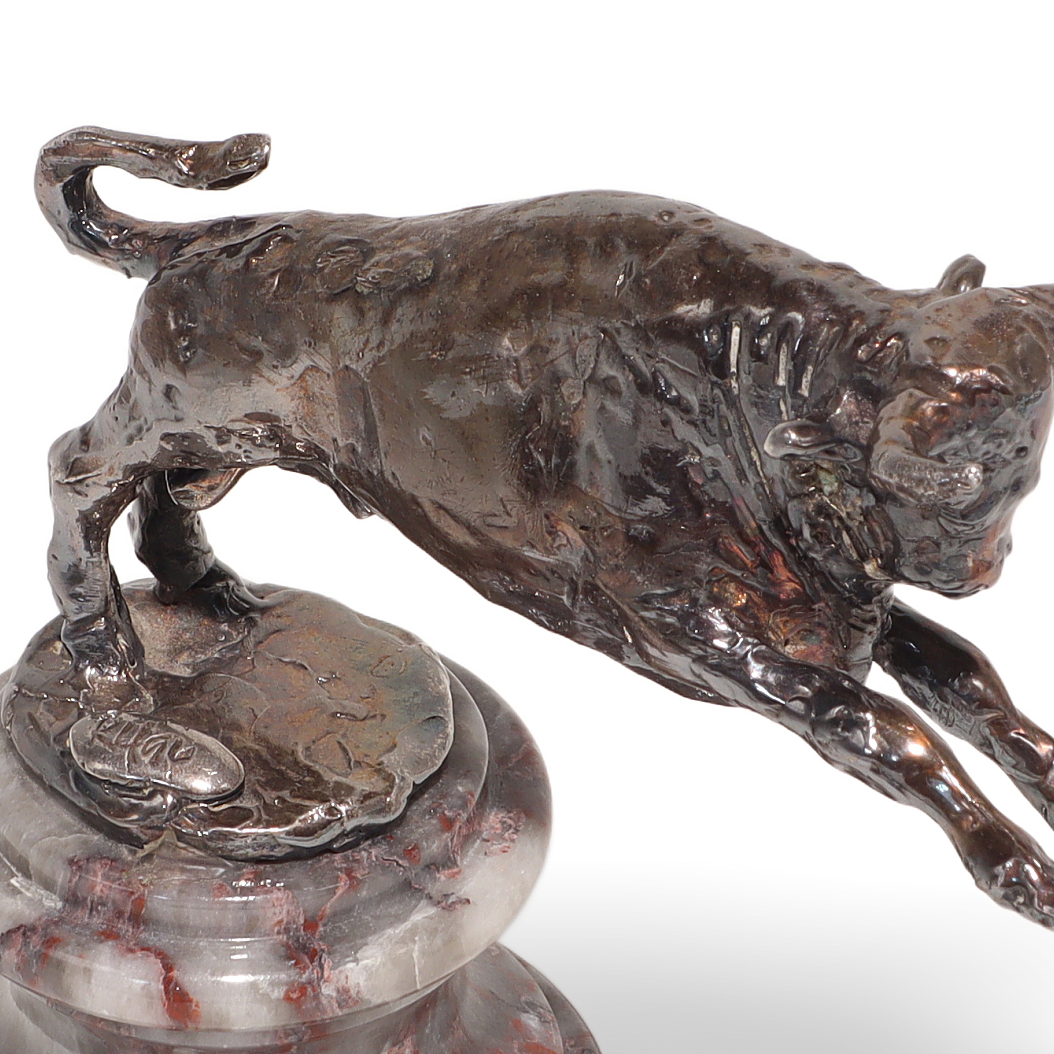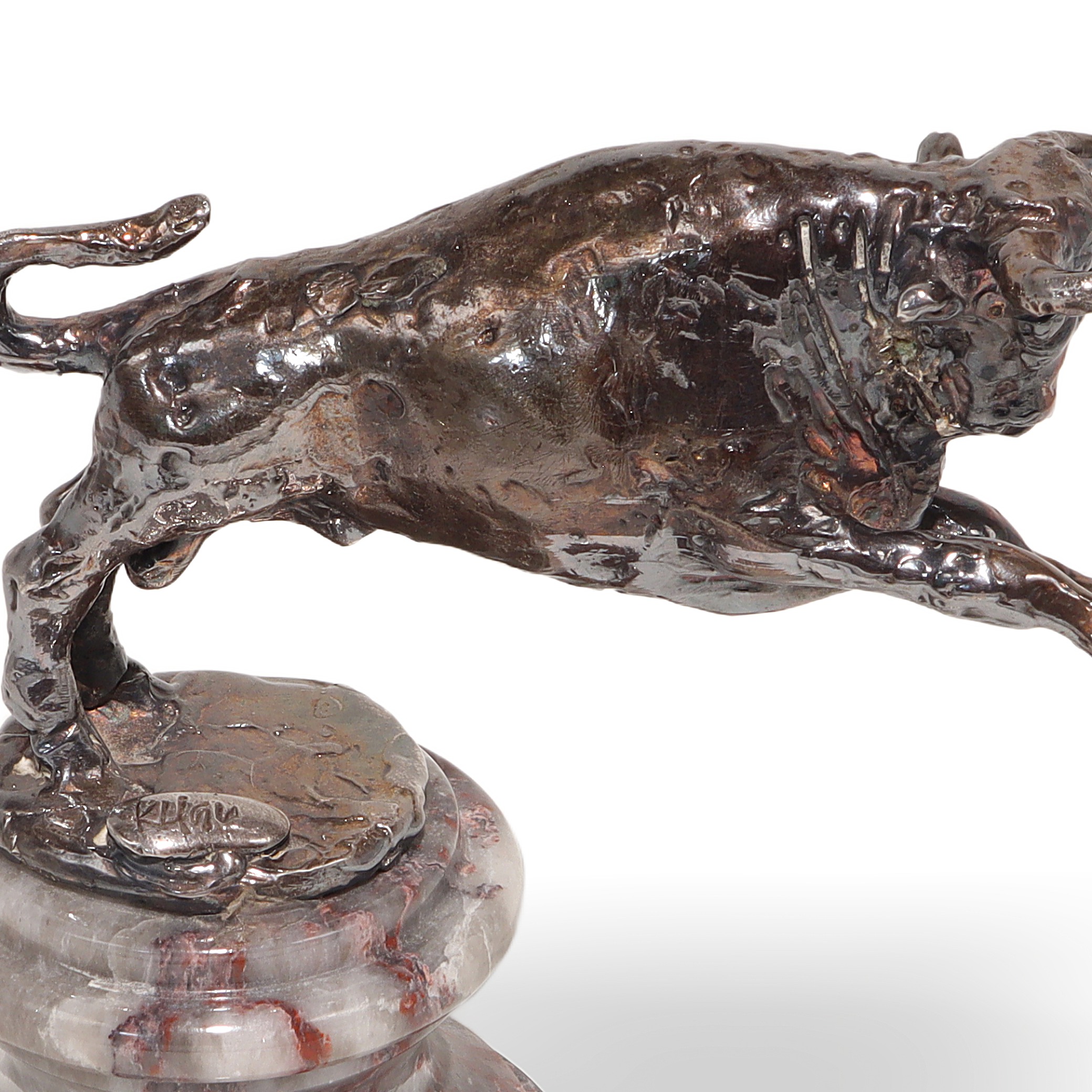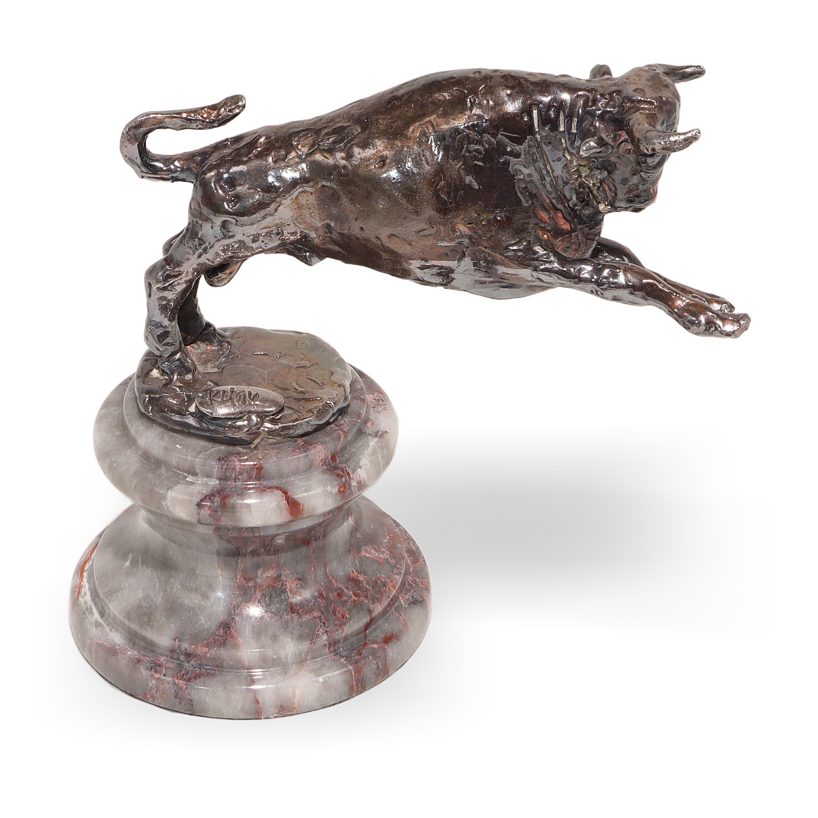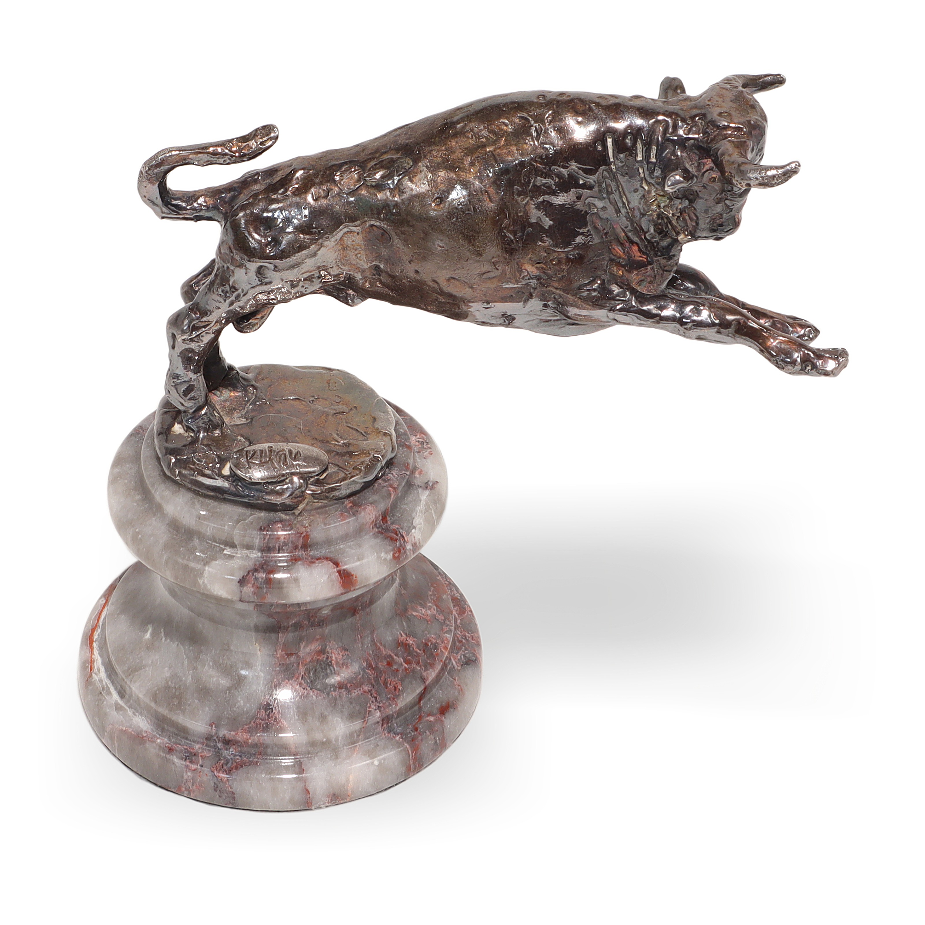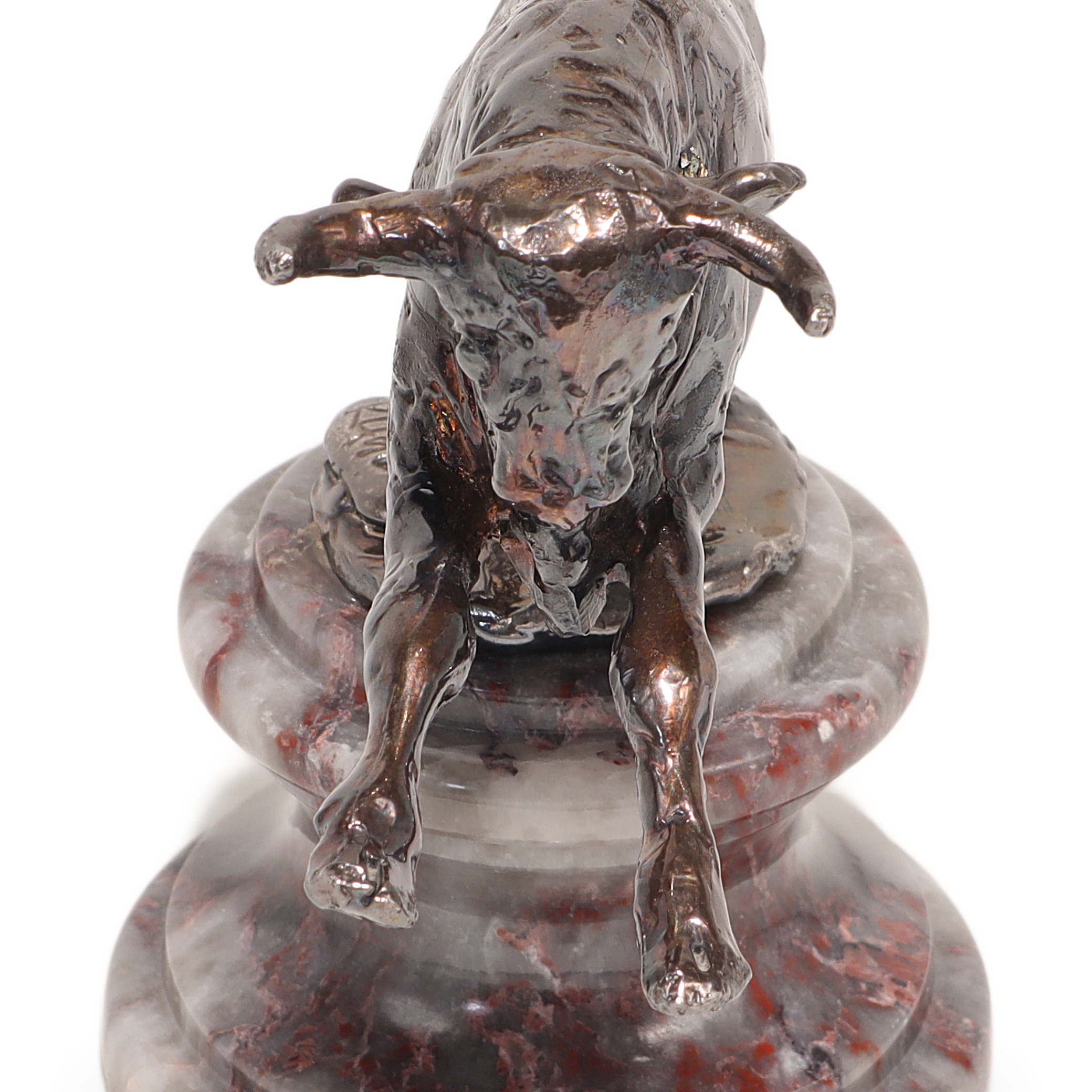 This unique piece is a vintage bull sculpture crafted from metal and mounted on a striking marble base. Standing at 5…