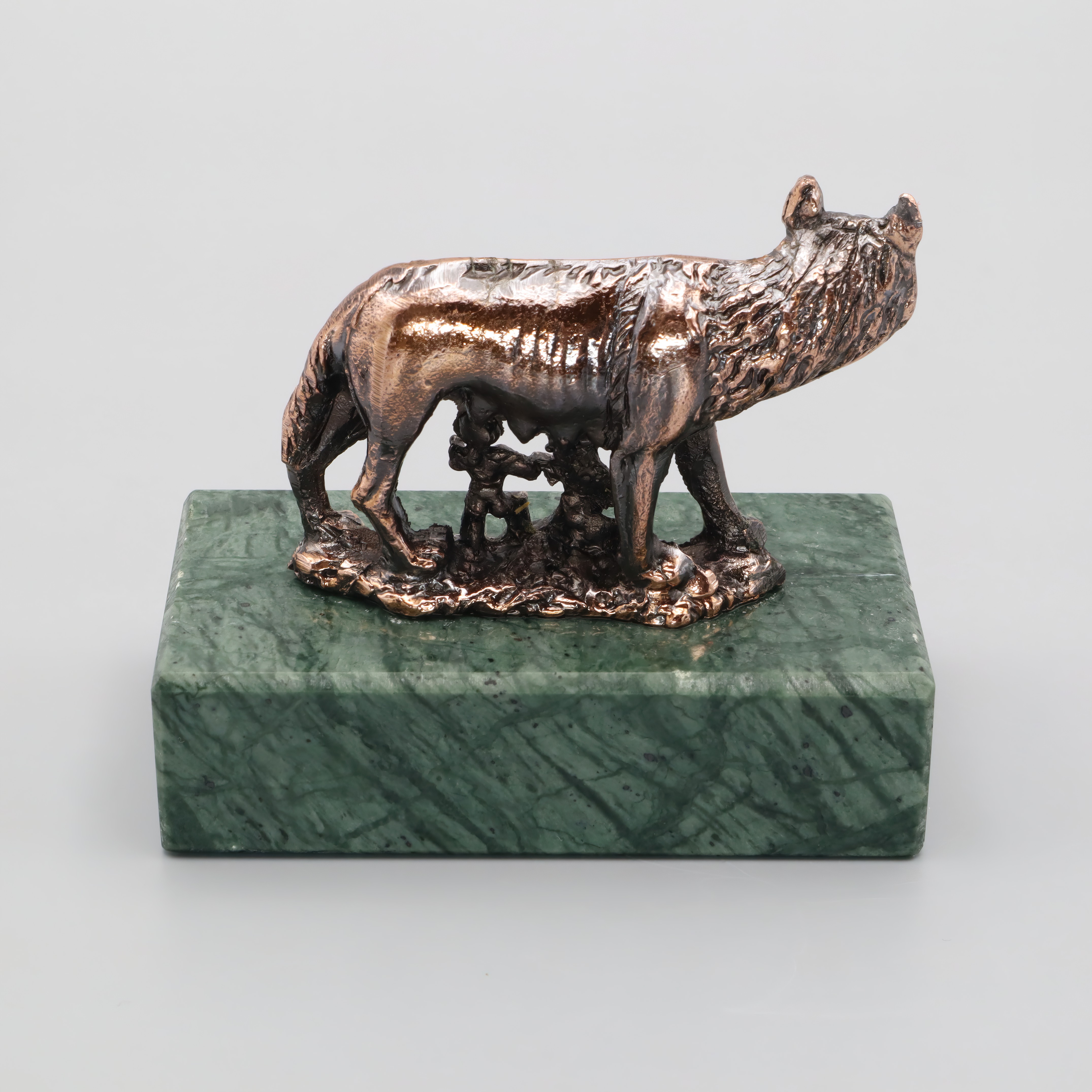 This Capitoline Wolf with Romulus and Remus bronze statuette is a charming piece of decor that captures a slice of ancient Roman mythology. Made around 1980, this sculpture represents the legendary tale of the wolf that nurtured the founders of Rome, Romulus and Remus, making it both a conversation starter and a cultural icon. It’s crafted to be a collectible piece, and its antique-inspired design gives it a timeless appeal. At a height and width of 3 inches and a length of 1.5 inches, it’s compact enough to fit as a centerpiece on a small table or shelf, yet substantial enough to draw interest. The mint condition of this piece ensures that it still holds the shine and detail as if it were just made.