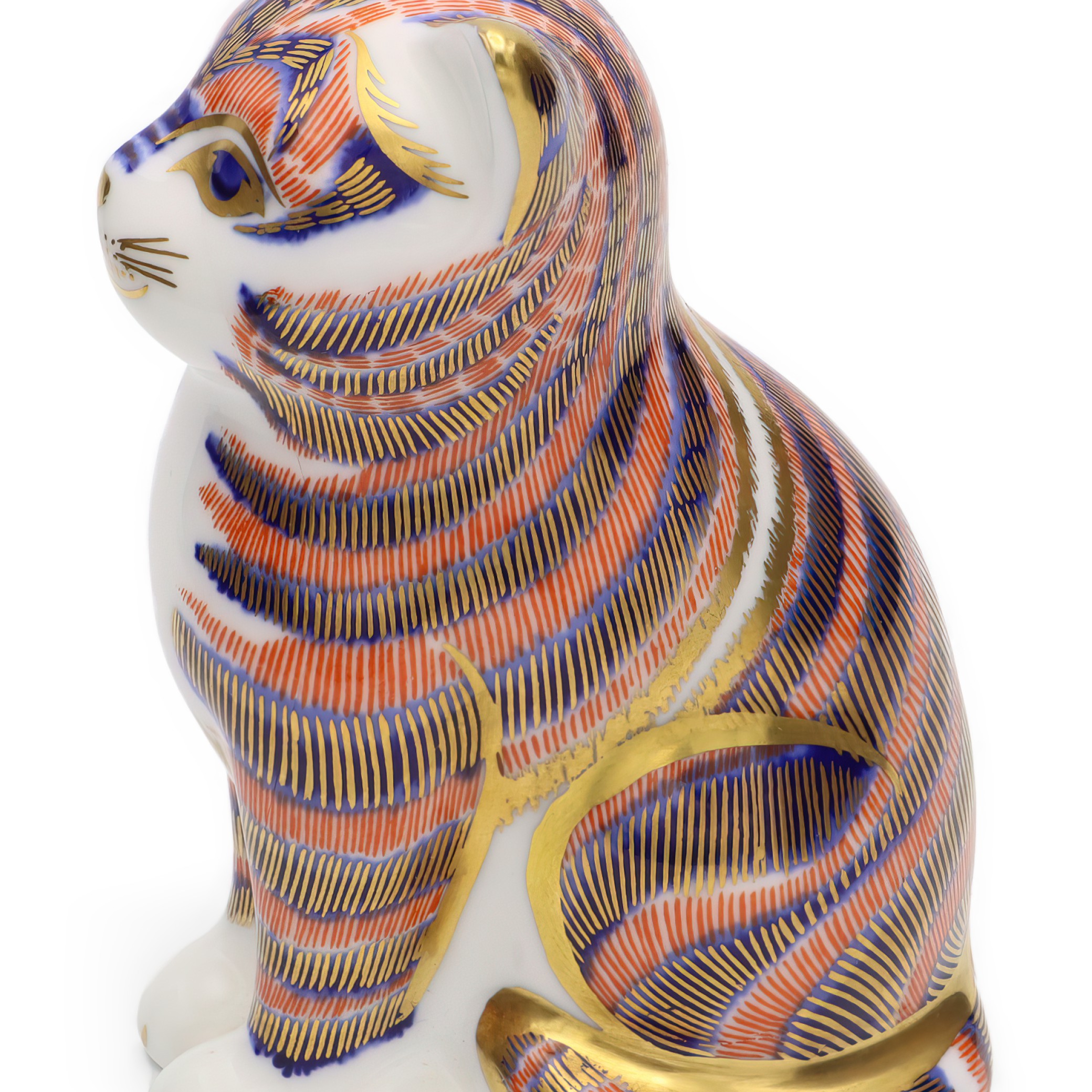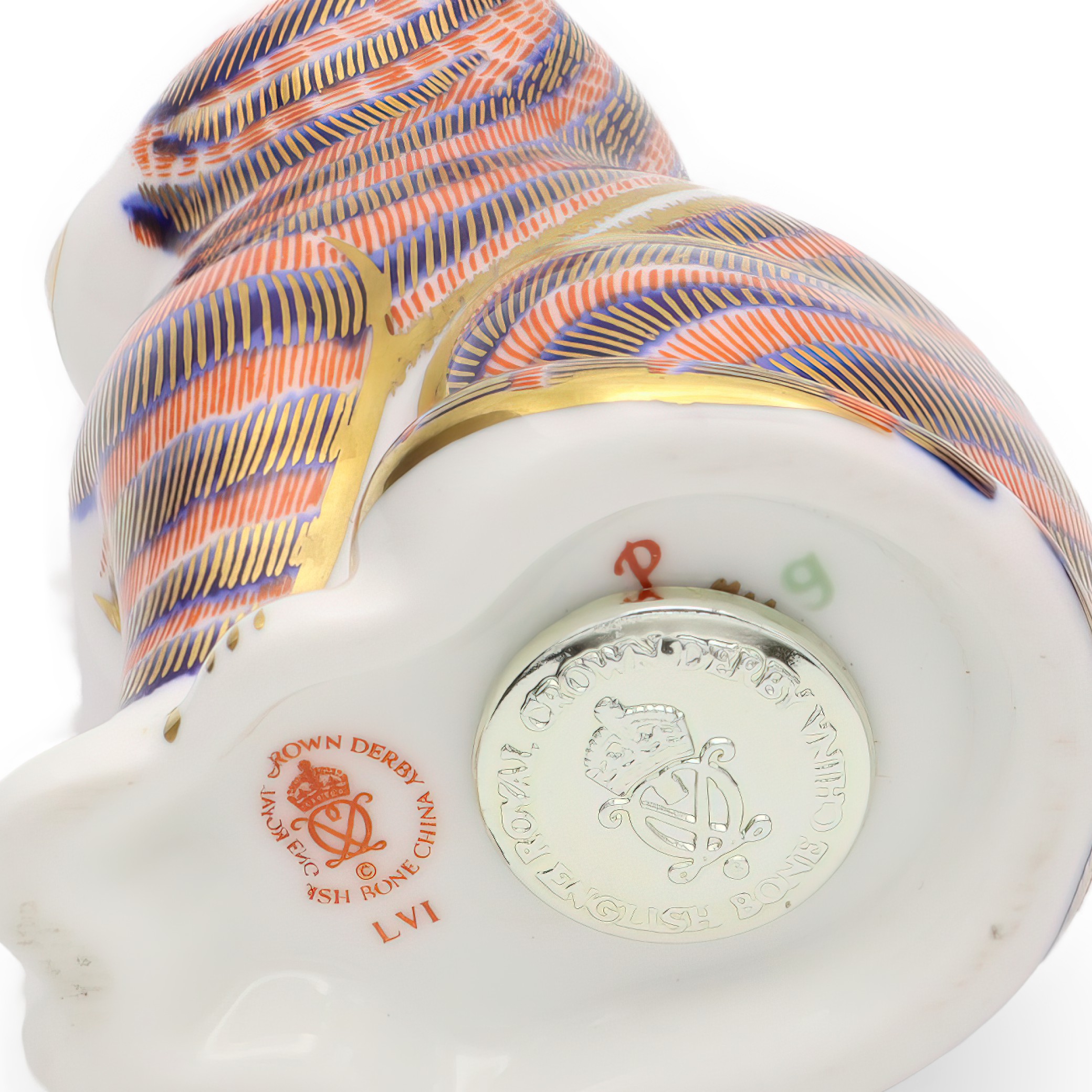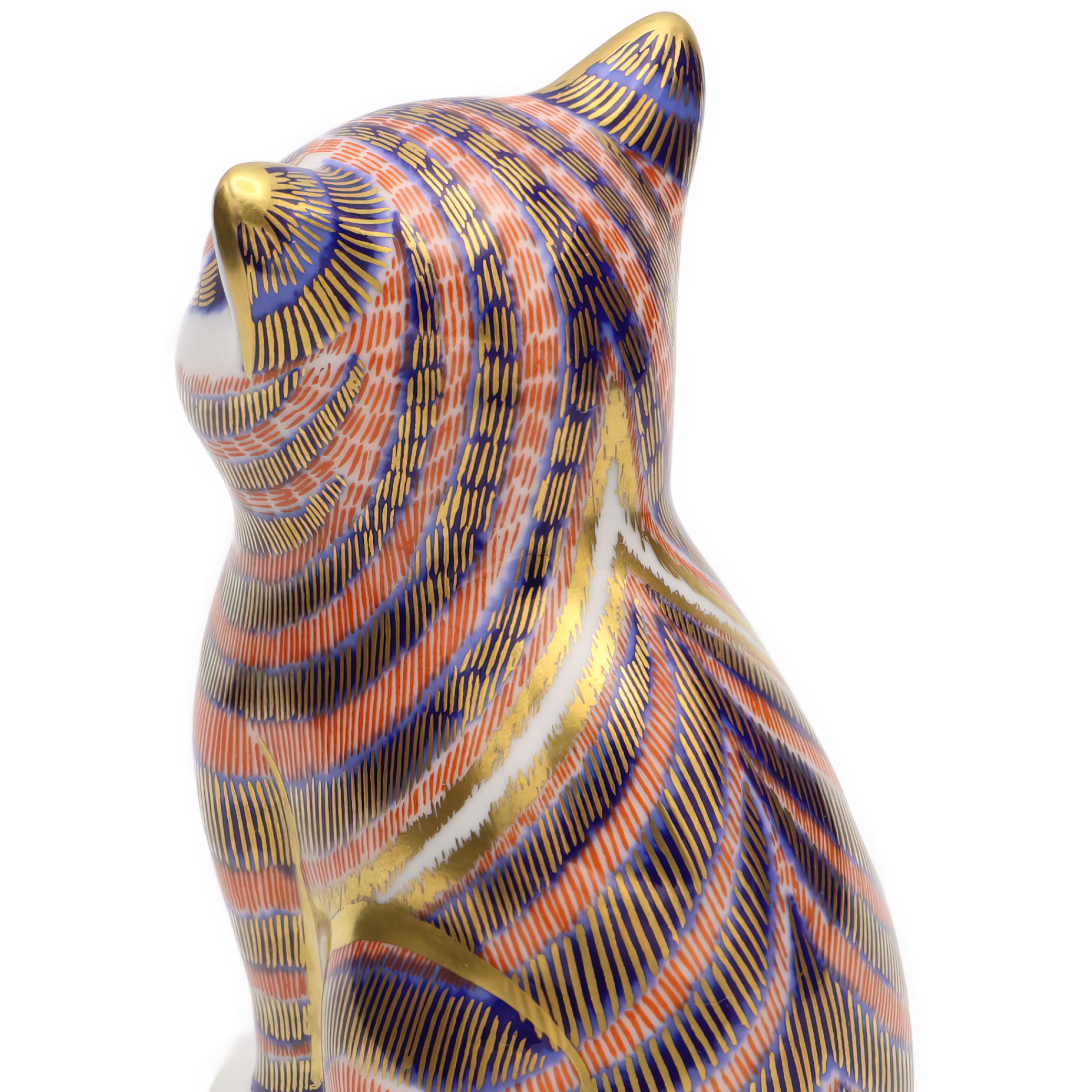 Royal Crown Derby is a renowned porcelain manufacturer with a storied history dating back to the 1700s. The company began its journey in Derby, England, and over the centuries, it has become synonymous with luxury porcelain. They gained the “Royal” prefix in the late 19th century, a testament to the quality and prestige of their work. Known for their detailed designs and vibrant colors, Royal Crown Derby pieces are cherished by collectors and enthusiasts worldwide. This Sitting Striped Cat is a part of their paperweight collection, which includes a wide variety of animal-inspired designs.