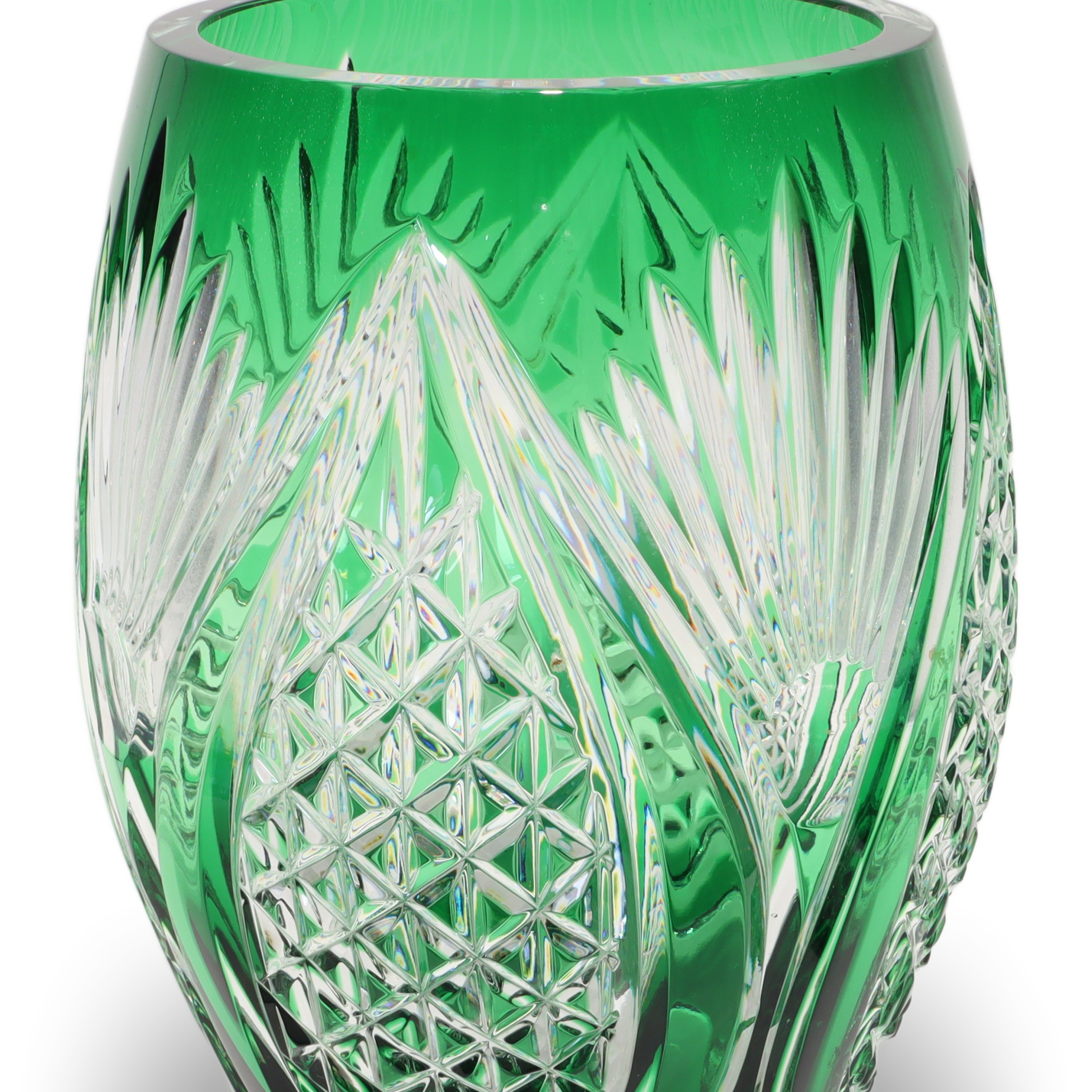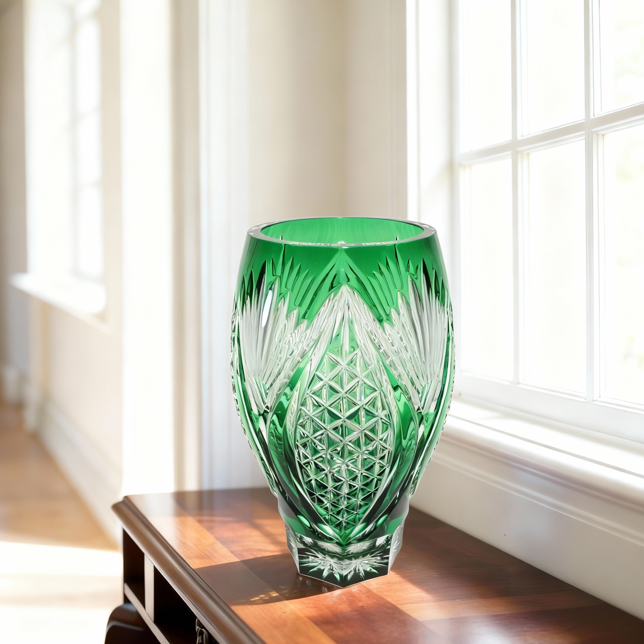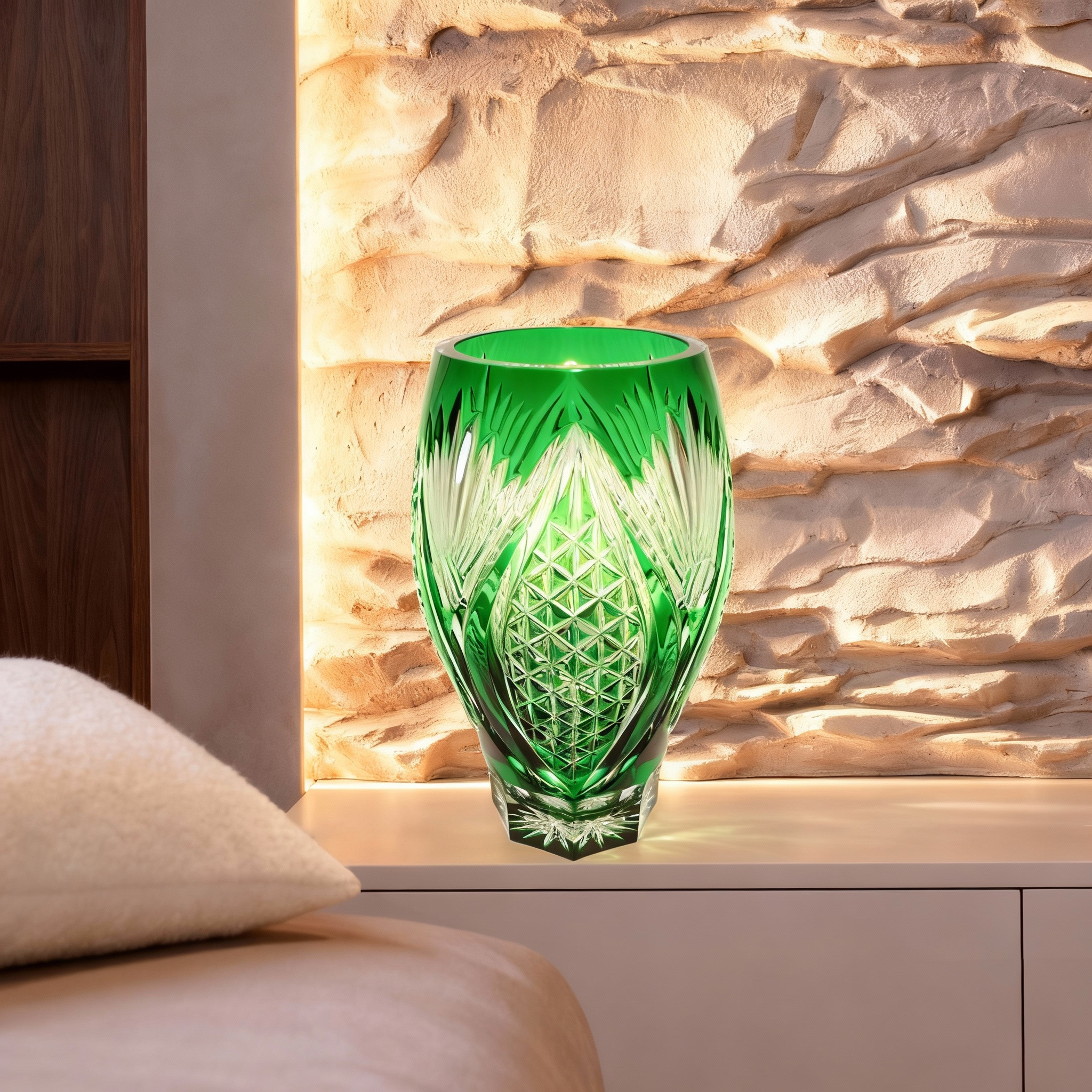 Crystal Glass Bohemia Large Green Vase - Czech Vintage Decor