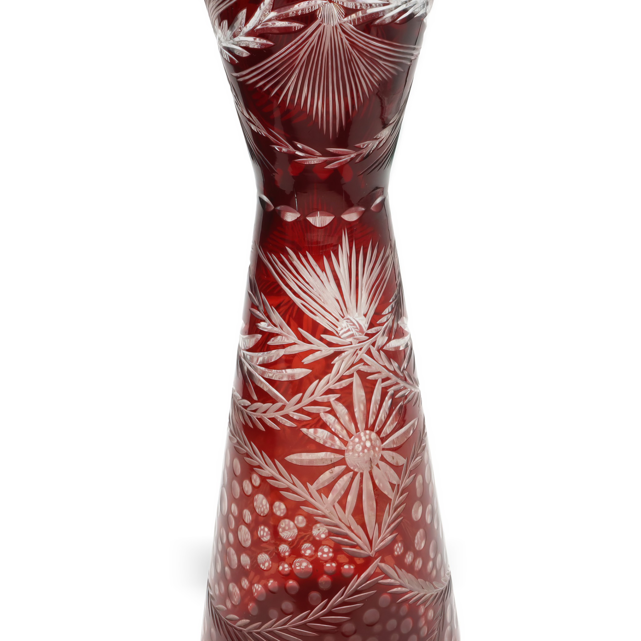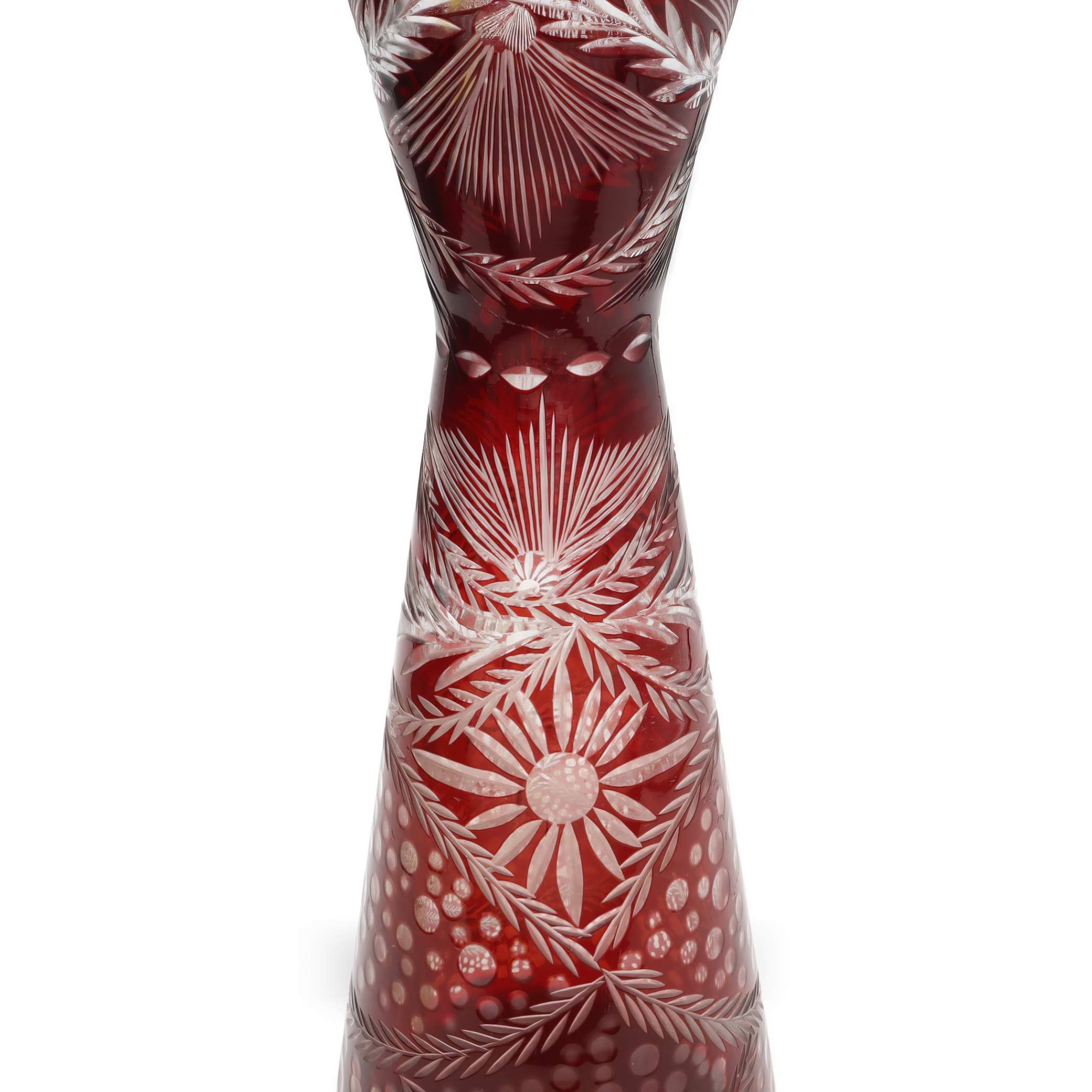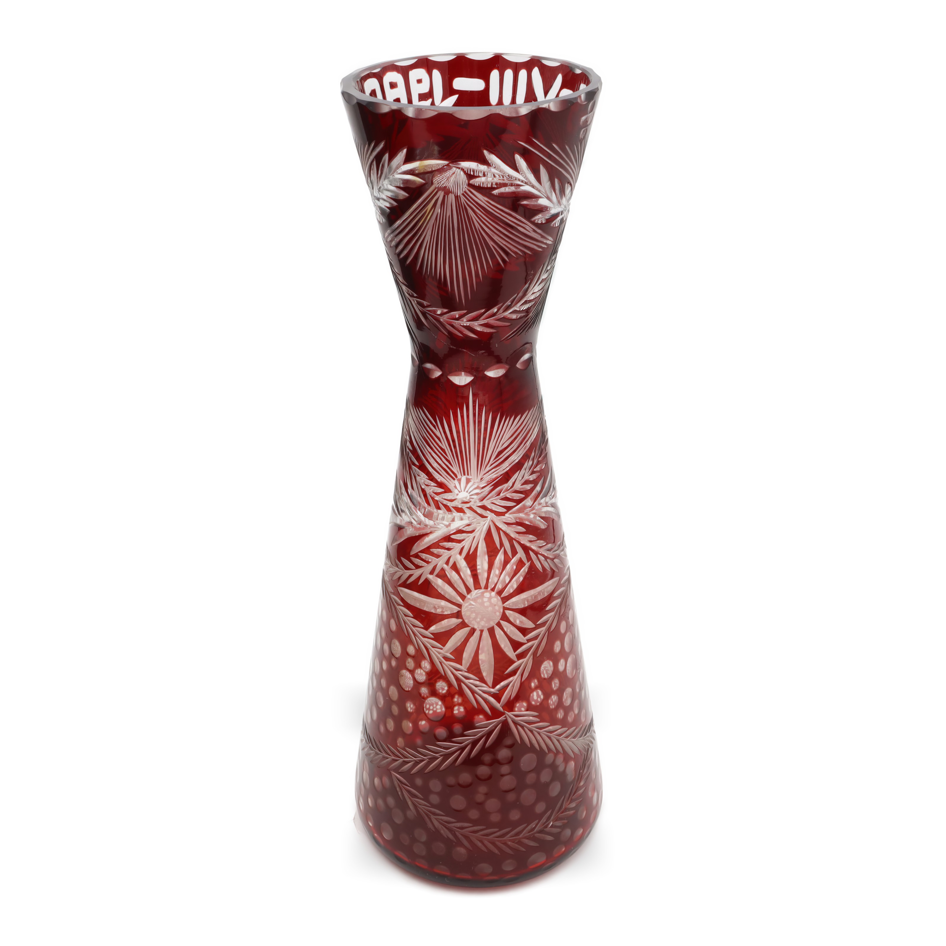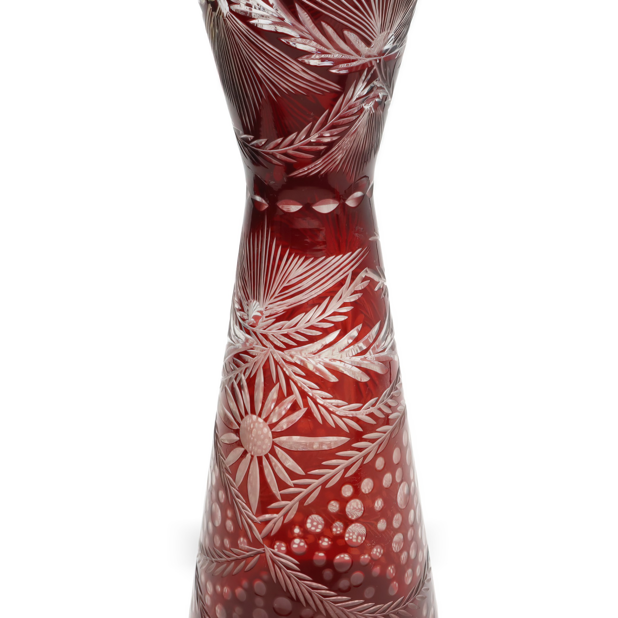 This is a Cut Crystal Slim Hourglass Vase made from stunning red Bohemia glass. Produced in 1980, it’s a beautiful decorative piece that stands 10 inches tall and has a…