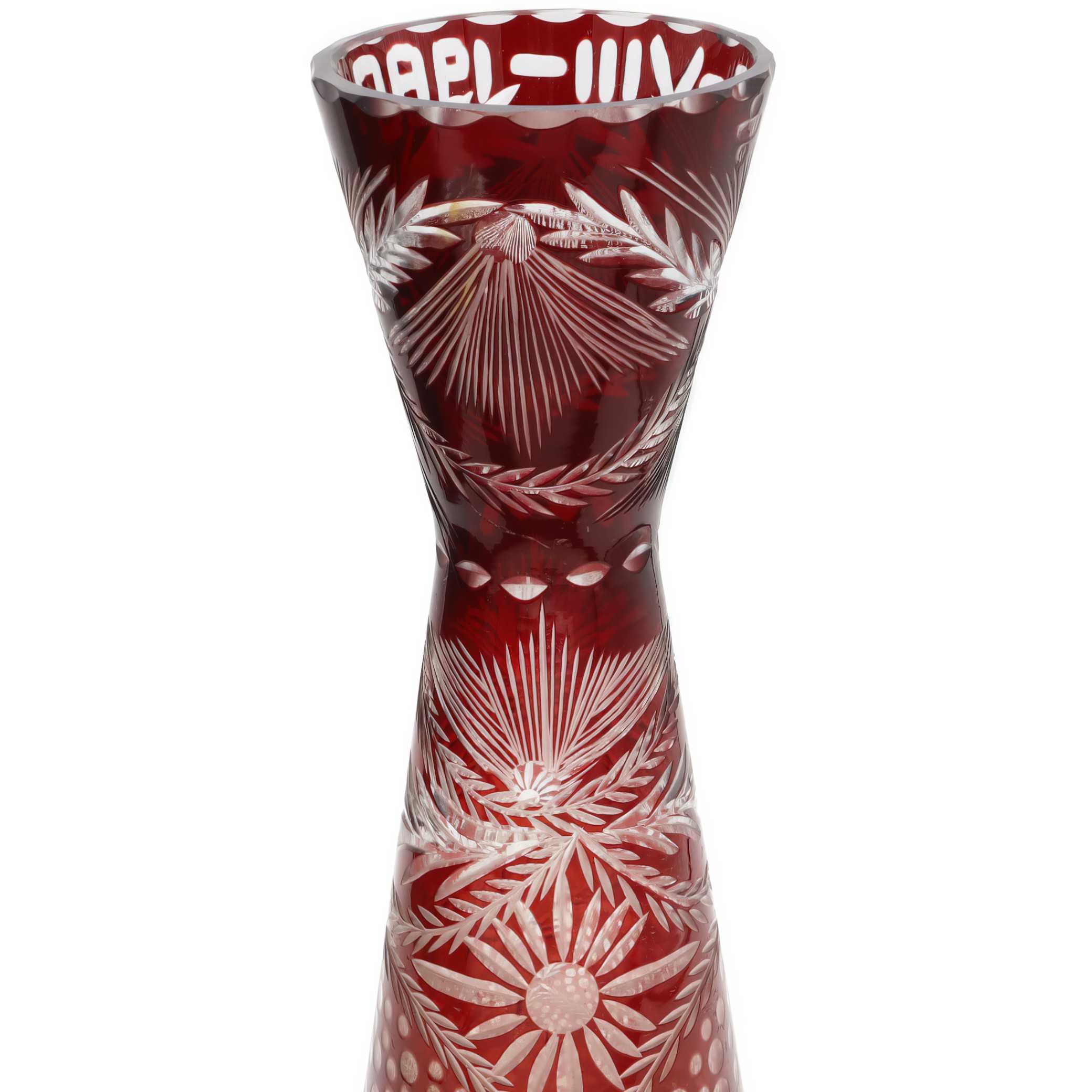 Bohemia glass, especially red, is renowned for its quality and craftsmanship. Originating from the Bohemia region (in what is now the Czech Republic), this type of glass has been historically prized for its beauty and durability. The tradition of Bohemian glassmaking dates back centuries, with artisans known for their skillful techniques in glass cutting and engraving. By 1980, the Bohemia glass industry had long established itself as a leader in the world of glassware, combining age-old techniques with contemporary designs.