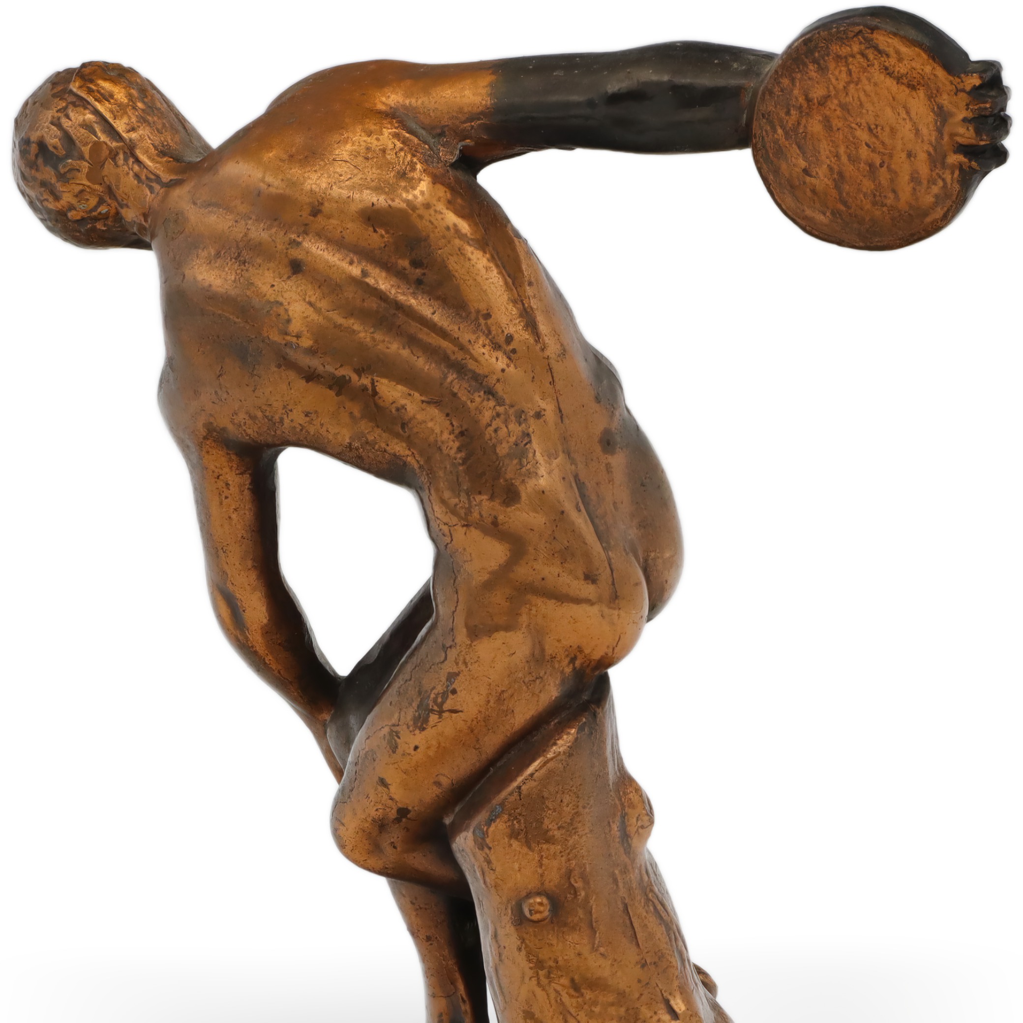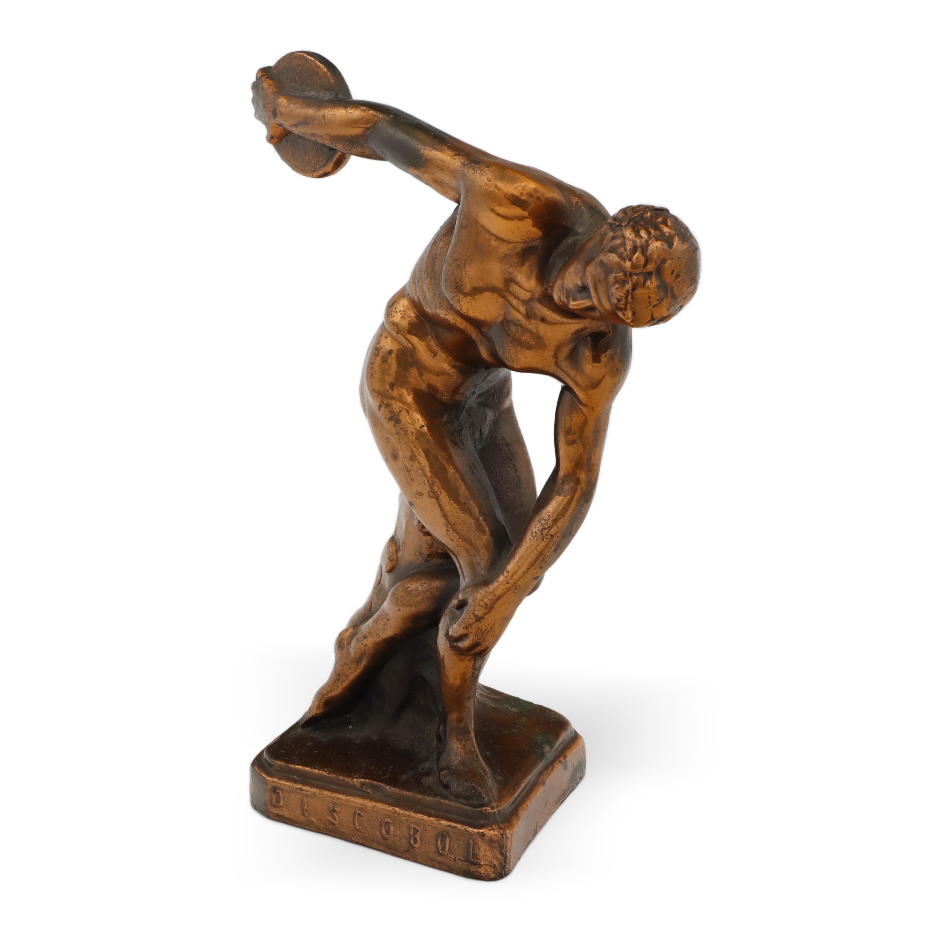 What’s particularly neat about this sculpture is how it channels the classical spirit of ancient Greece, but with a 1980s twist. During that time, replicas and reproductions of famous artworks were hugely popular as home decor, especially for people who wanted to infuse their living spaces with a touch of the past. So, finding one of these statues in such pristine condition today is not just lucky—it’s a real collector’s gem. You don’t see a lot of these floating around anymore, making it a pretty rare find for anyone interested in vintage art pieces or Olympic memorabilia. The details on the statue are impressive for a piece of its age: from the curling, stylized hair right down to the chiseling of the muscles, it’s clear the makers were aiming for a faithful tribute to the original Discobolus by Myron.