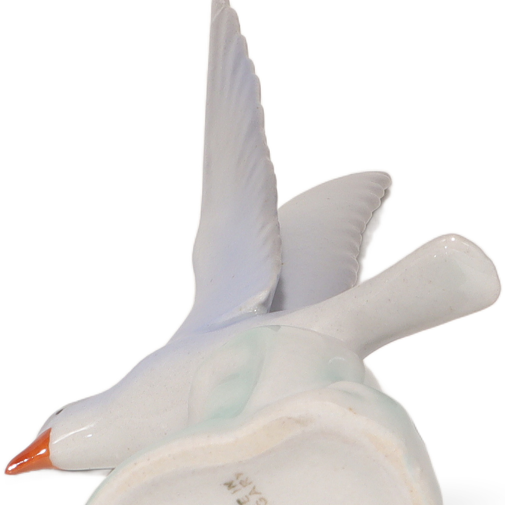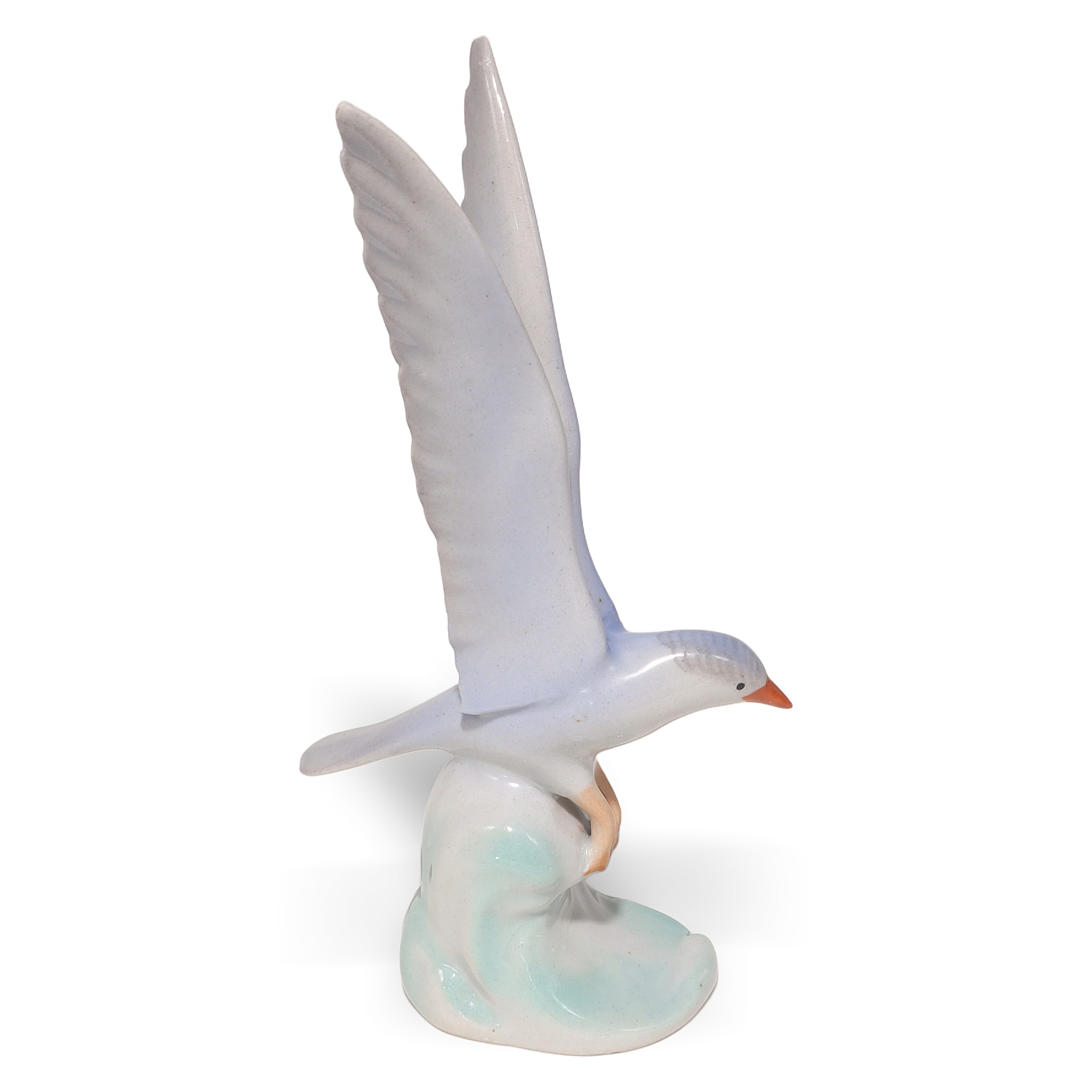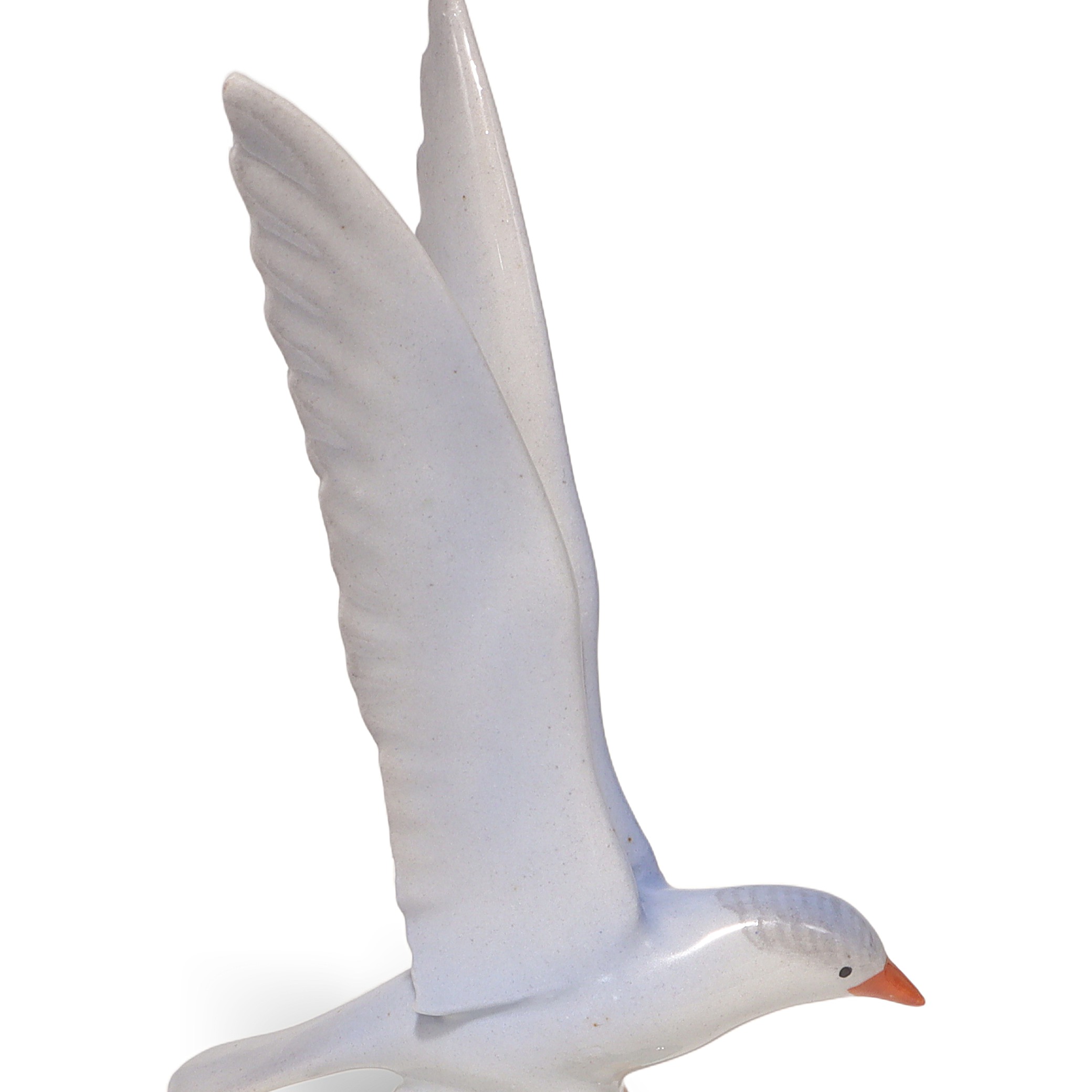This charming artifact is a vintage Drasche Seagull Figurine, a hand painted porcelain bird statue from Hungary that dates back to around 1980. The figurine stands about 6 inches tall, with a 2-inch width and a 3-inch length, making it a perfect shelf or mantelpiece addition. Its delicate coloring and fine details, especially on the wings and the gentle curve of the base, give the seagull a sense of movement and grace, almost as if it’s just about to take flight above the waves. Given its age—over 40 years old now—it’s quite the nostalgic piece that would remind many of coastal scenes and summer days. The condition is near mint, which is pretty rare for collectibles of this vintage, as it shows hardly any signs of wear.