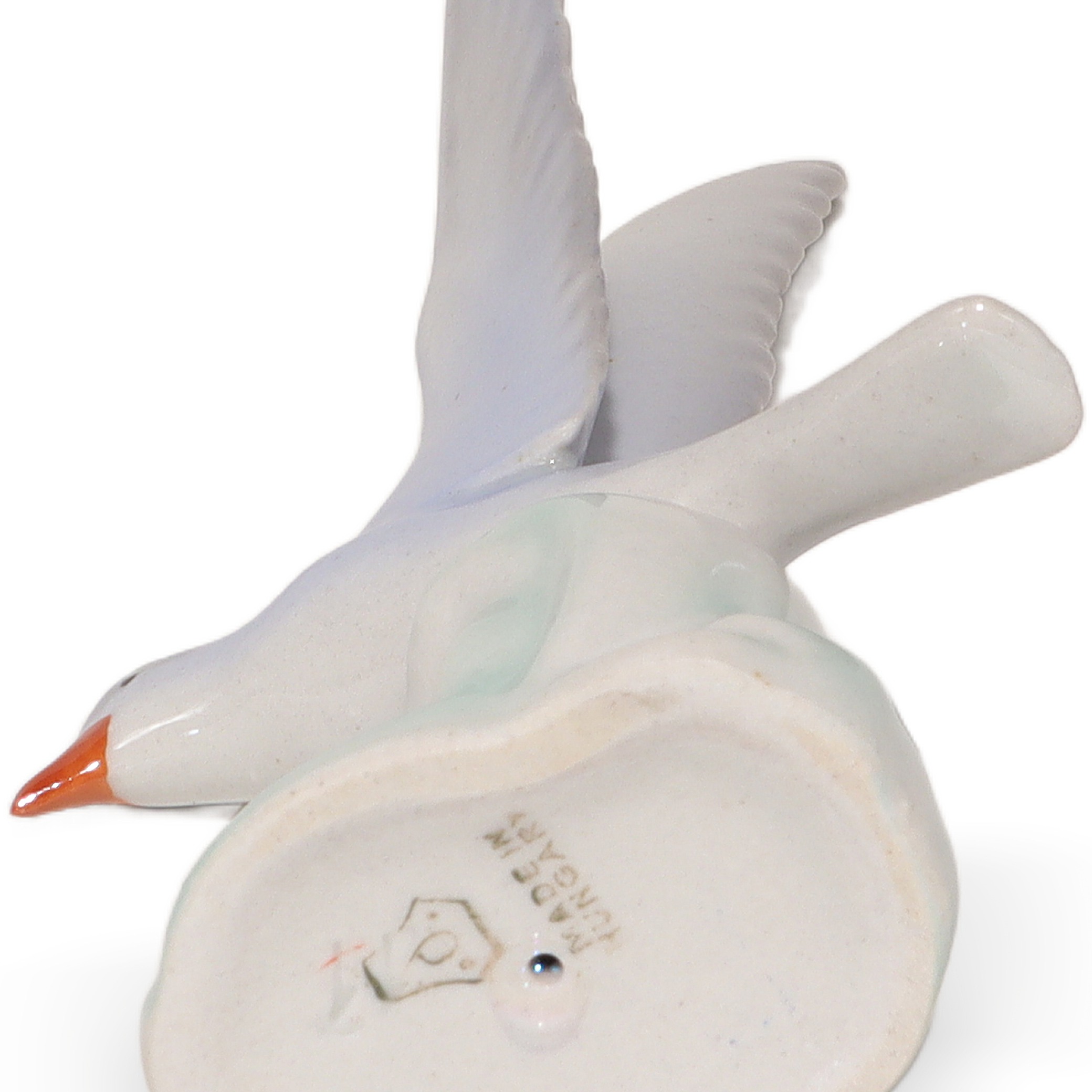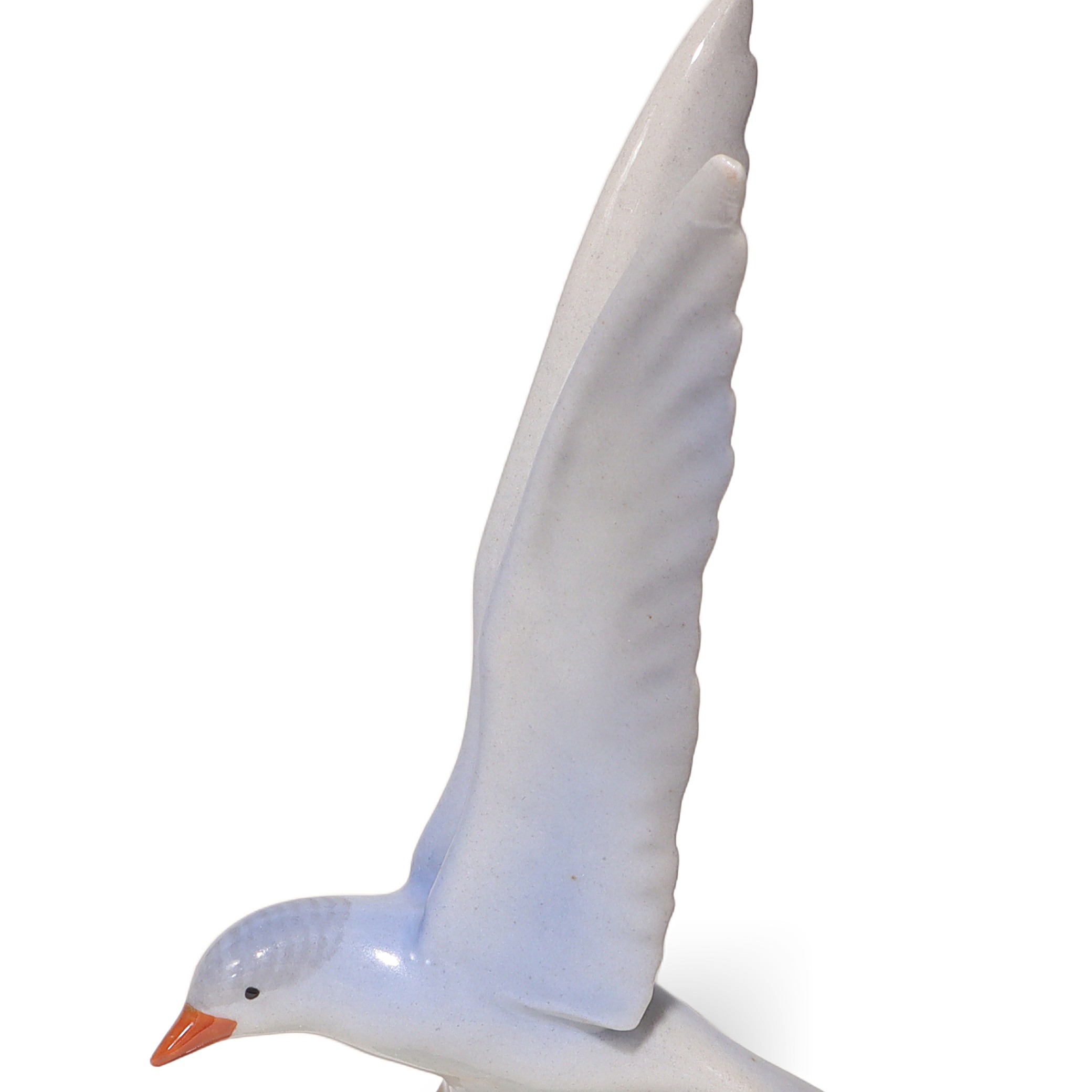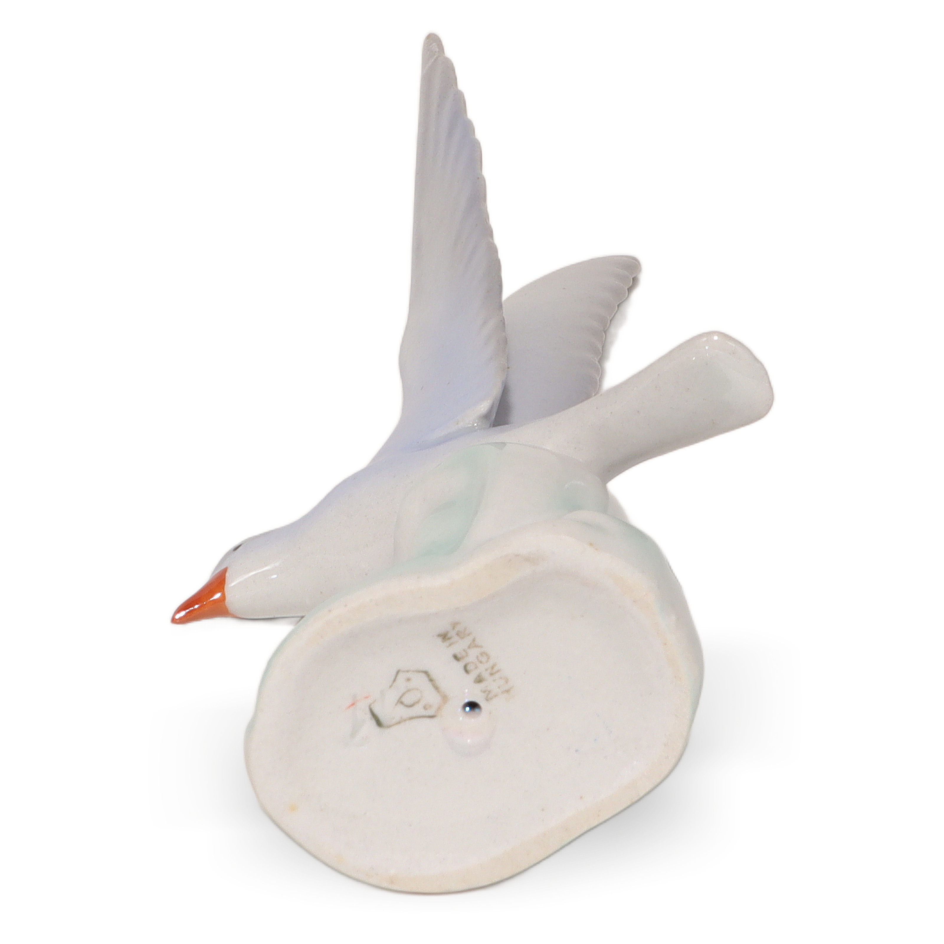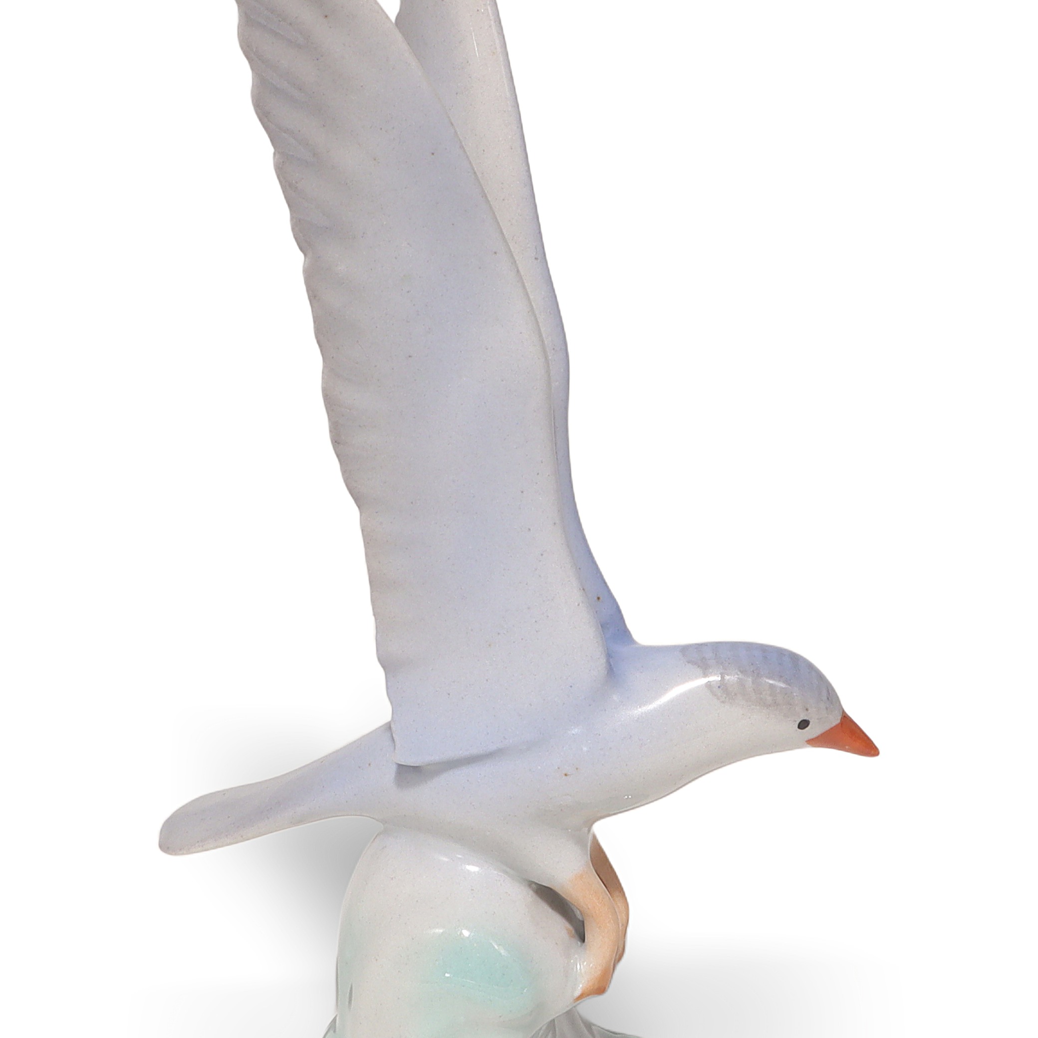 This charming artifact is a vintage Drasche Seagull Figurine, a hand painted porcelain bird statue from Hungary that dates back to around 1980. The figurine stands about 6 inches tall, with a 2-inch width and a 3-inch length, making it a perfect shelf or mantelpiece addition. Its delicate coloring and fine details, especially on the wings and the gentle curve of the base, give the seagull a sense of movement and grace, almost as if it’s just about to take flight above the waves. Given its age—over 40 years old now—it’s quite the nostalgic piece that would remind many of coastal scenes and summer days. The condition is near mint, which is pretty rare for collectibles of this vintage, as it shows hardly any signs of wear.