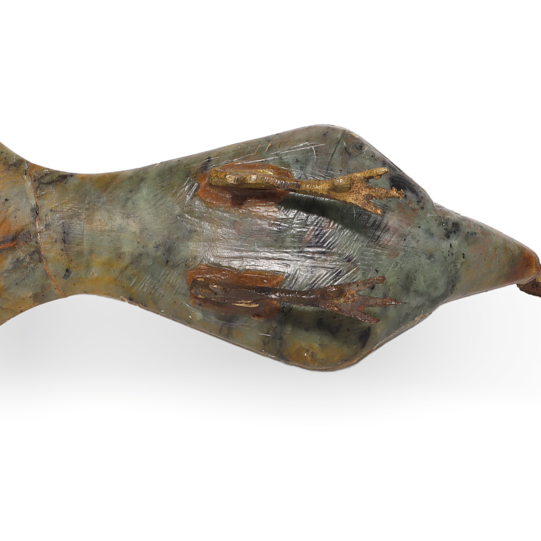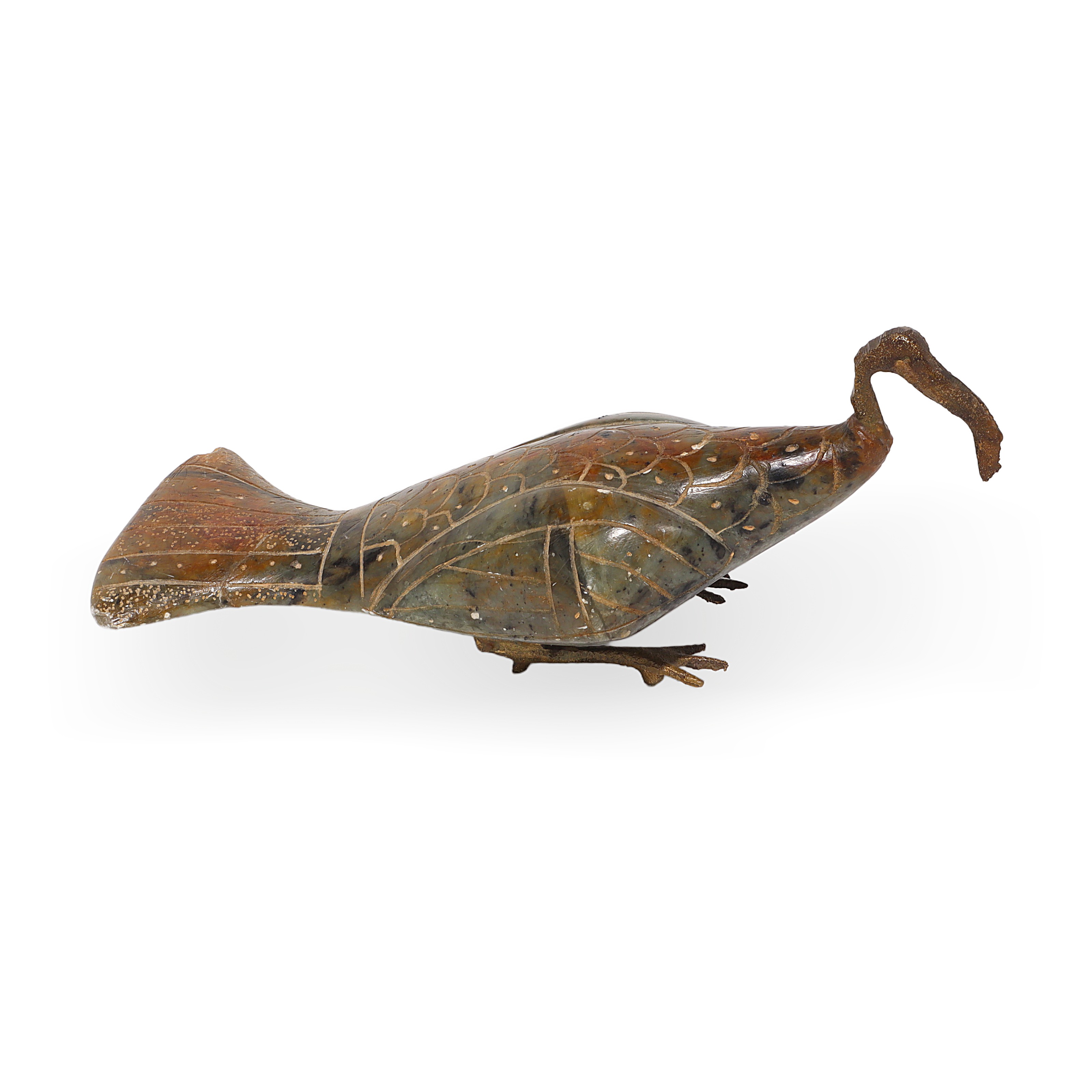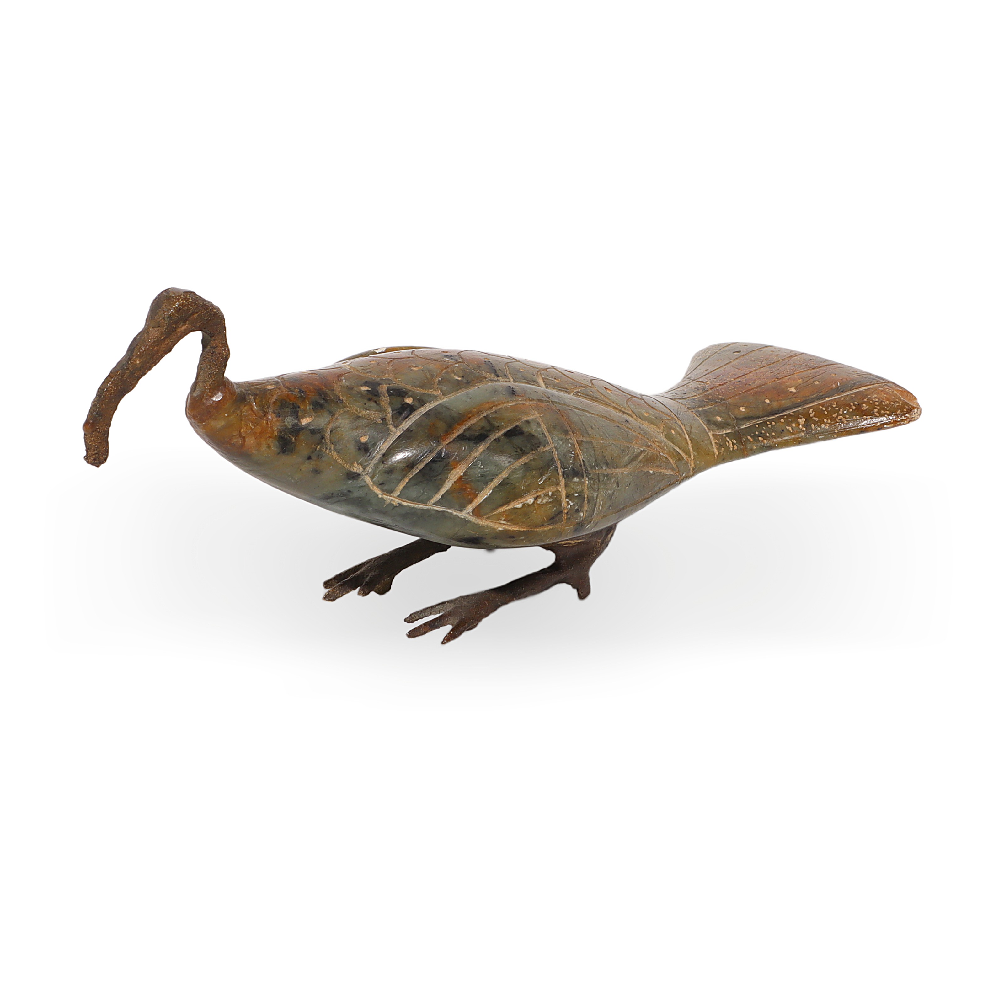 This item is a charming Egyptian hand-carved Sacred Ibis figurine, crafted around 1970. Made from smooth soapstone with fine bronze legs and a stylized neck,…