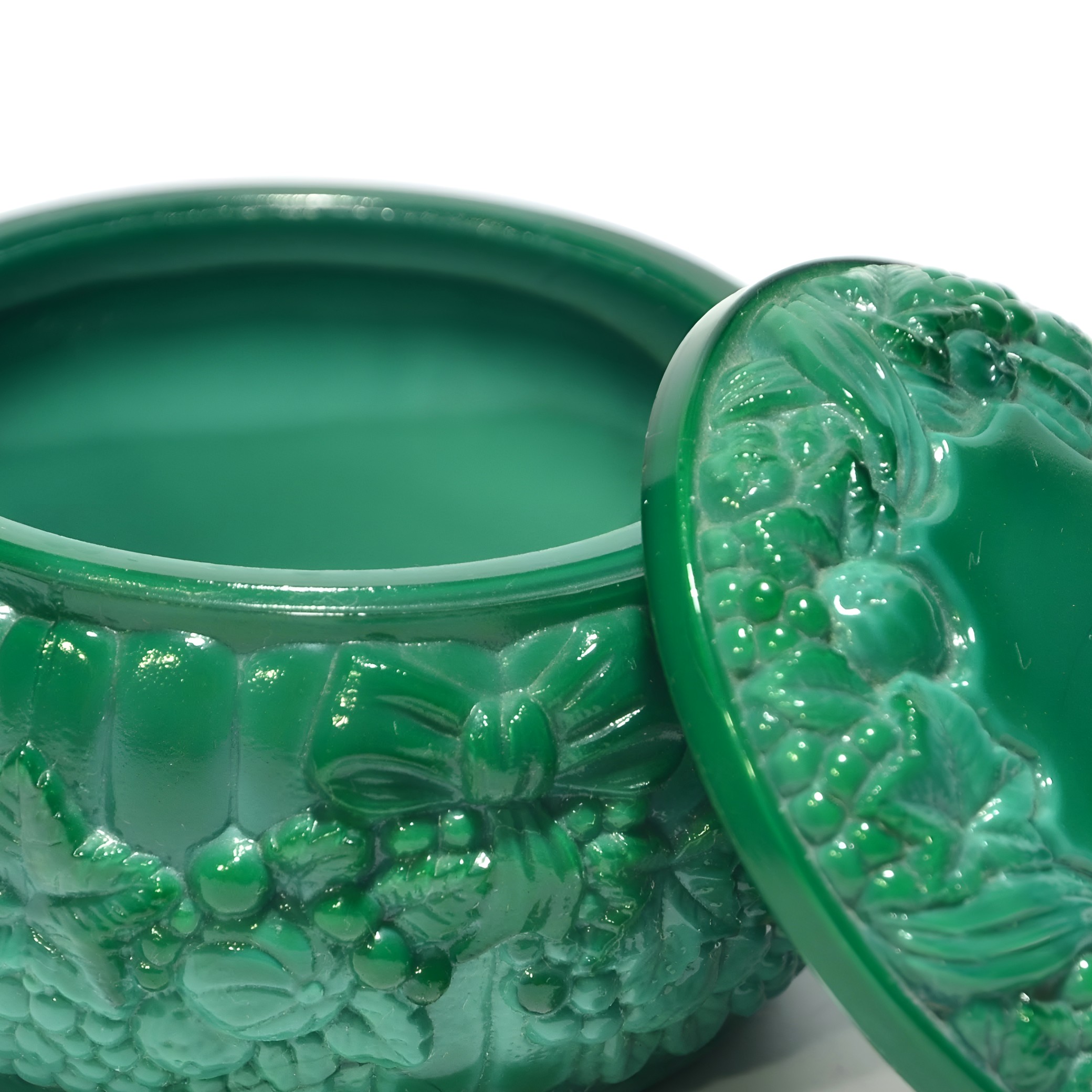 The era of the 1970s was a fascinating time for decor and collectibles. Items like this trinket box were often crafted with meticulous attention to detail, reflecting the broader trends and design sensibilities of the time. Green glassware was particularly popular, and manufacturers took pride in producing pieces that were both functional and aesthetically pleasing. This trinket box is a prime example of that tradition. Owning such a piece today not only gives you a slice of history but also a unique piece that is becoming increasingly rare as the years go by. While many people are drawn to the sleek, minimalist designs of today, there is something incredibly special about the intricacy and vibrancy of a vintage item like this one. Over 50 years have passed since it was crafted, yet it continues to capture the imagination and appreciation of collectors and everyday folks alike.