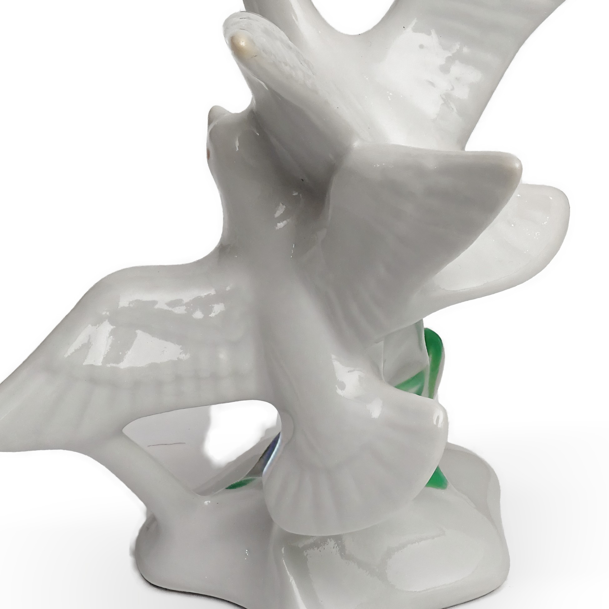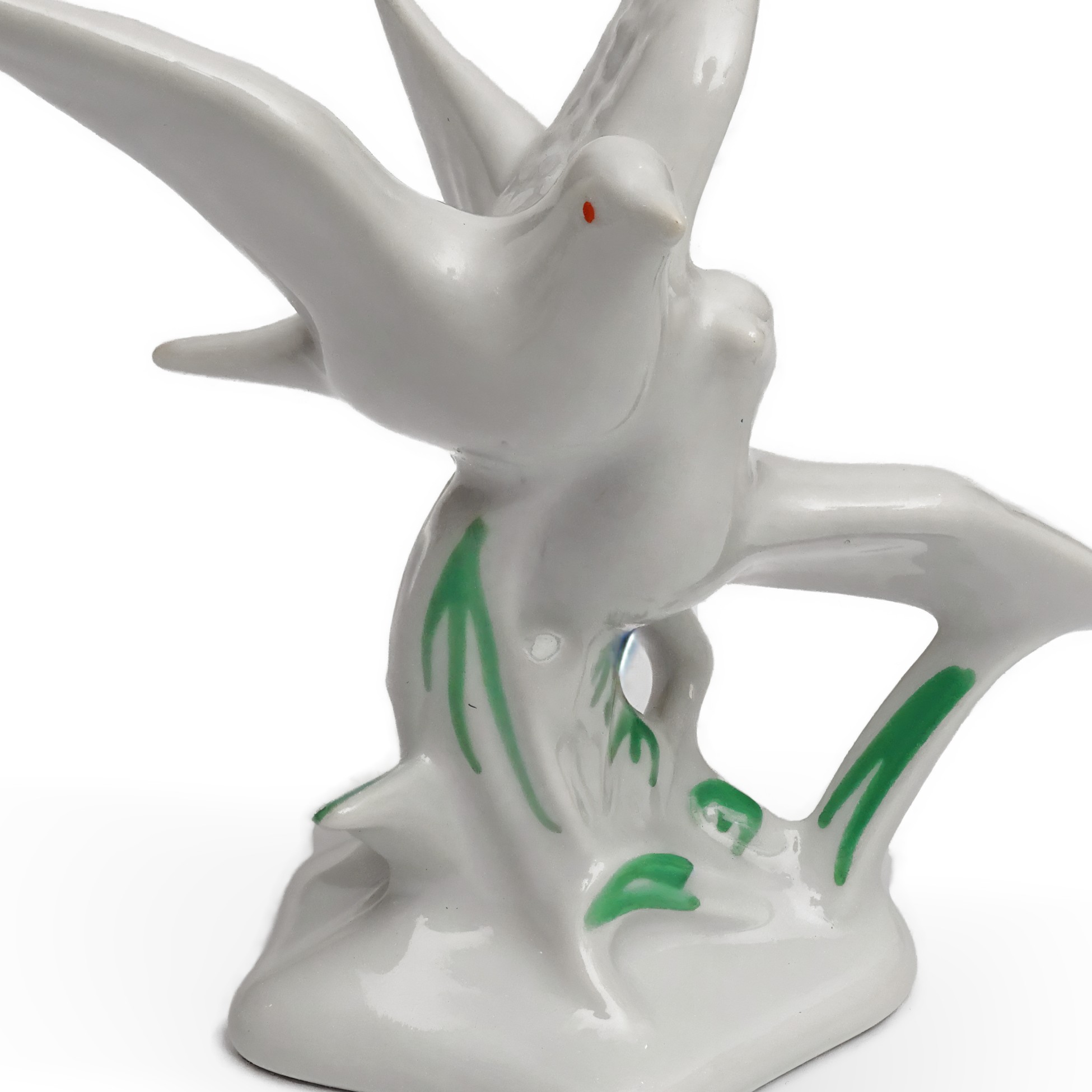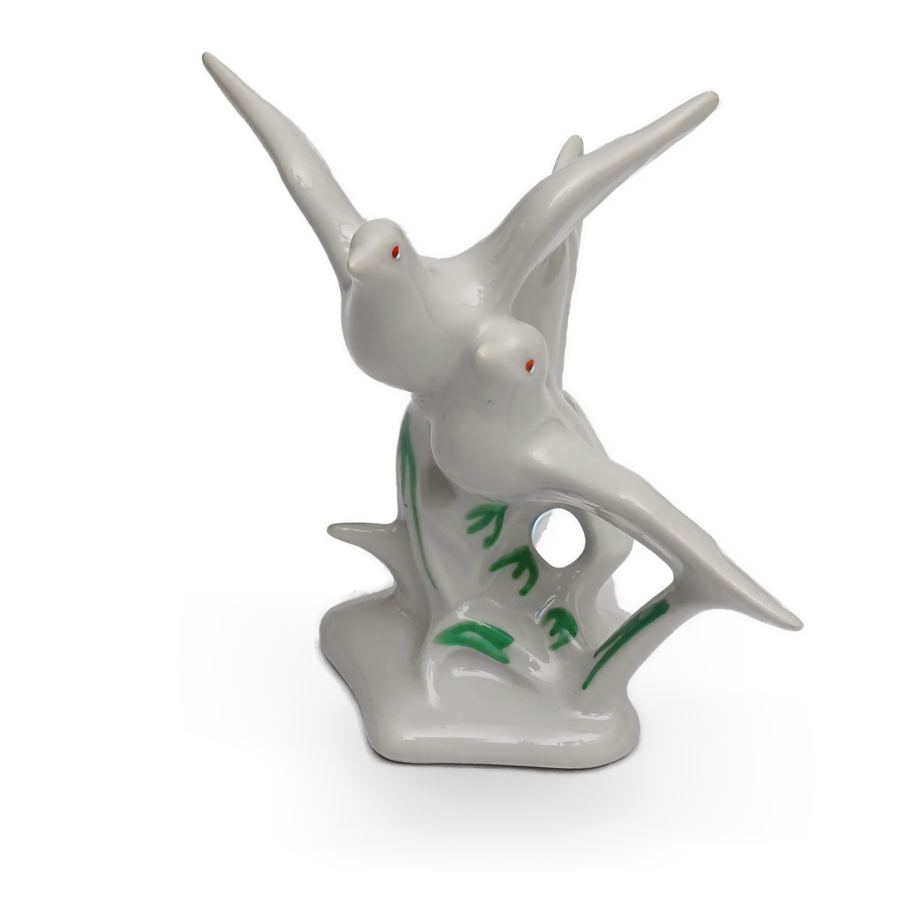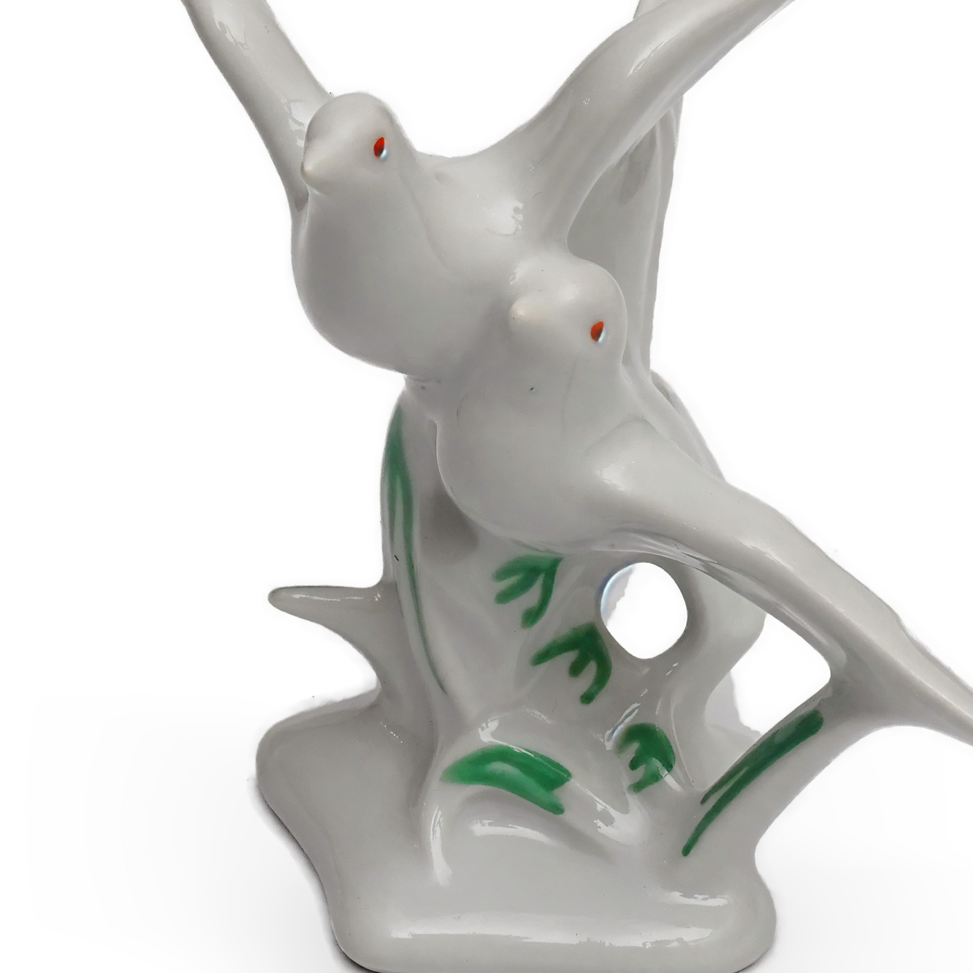 Doves Figurine Porcelain Hand Painted Bird - Art Deco Statues