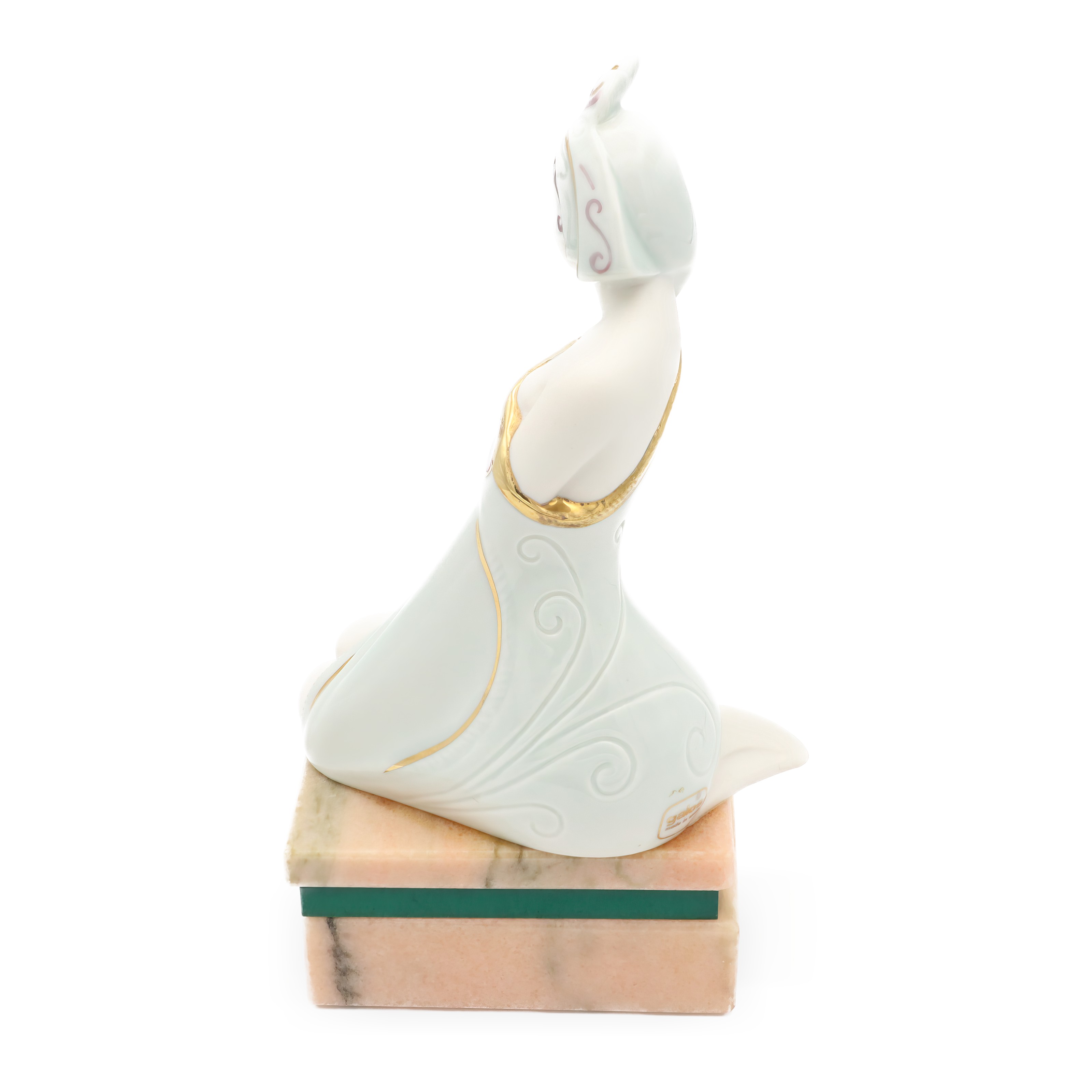 Galos figurines are known for their exquisite craftsmanship and attention to detail, which is evident in this particular piece. Originally crafted in Spain, these pieces stand out for their high-quality porcelain and vibrant colors. The brand itself specializes in creating statues that evoke the glamour and spirit of the Art Deco period, making each piece a piece of art history. Art Deco, the design style that flourished in the 1920s and ’30s, is characterized by its rich colors, bold geometry, and decadent detail work. By the time this figurine was produced in 1980, Art Deco was enjoying a resurgence in popularity, bringing a sense of nostalgia and a nod to the past.