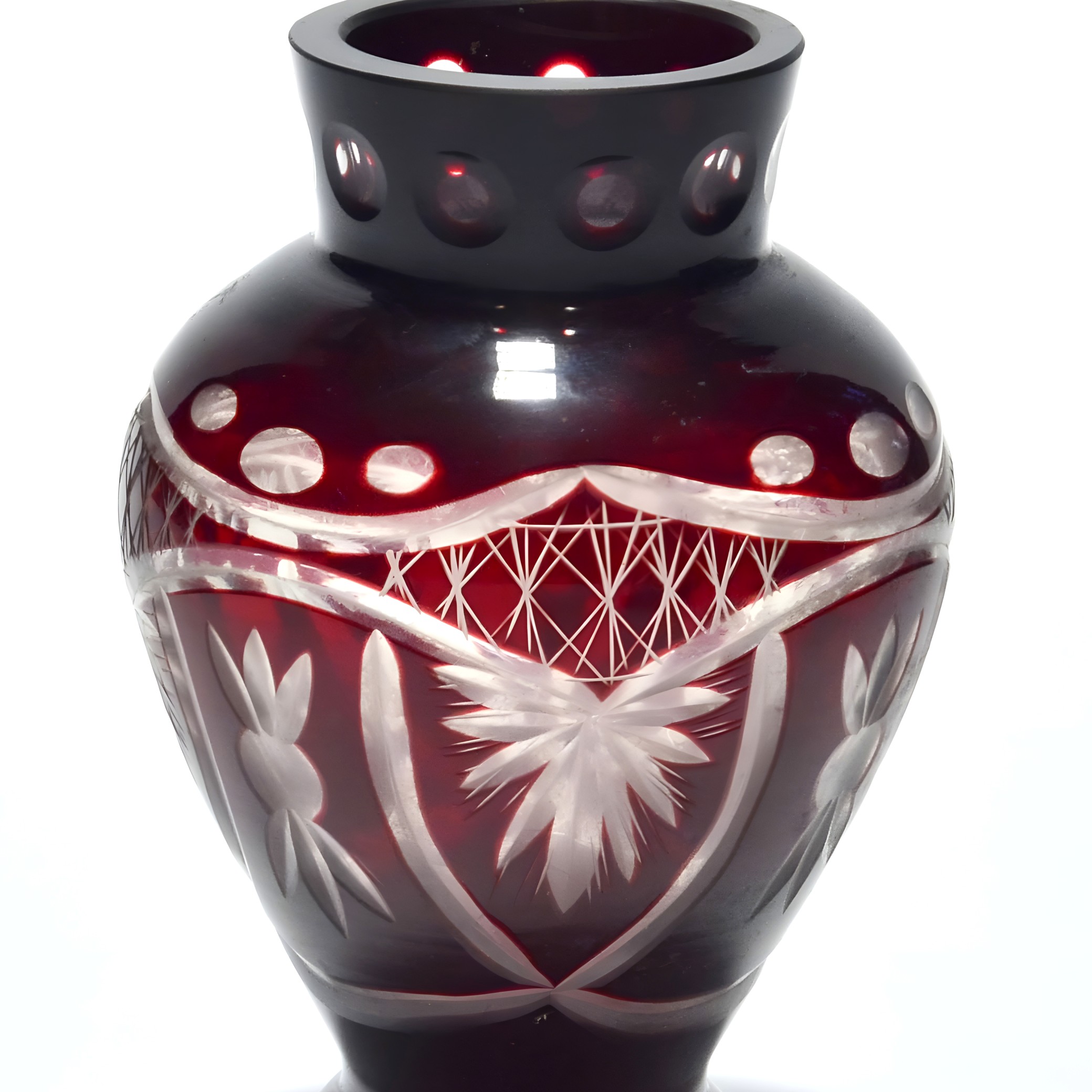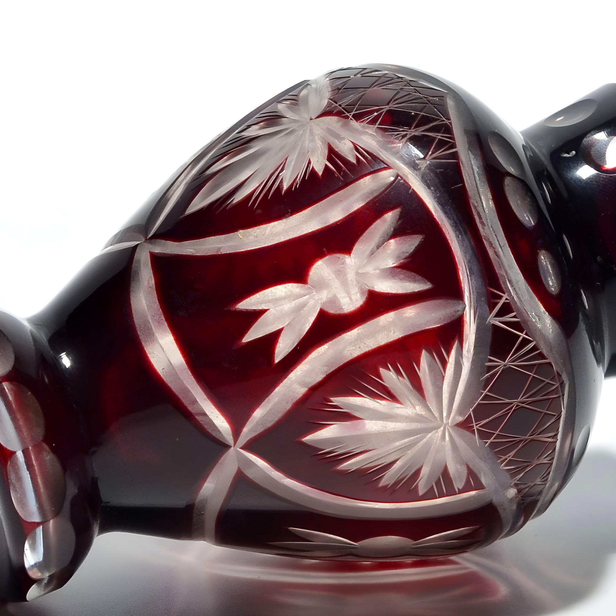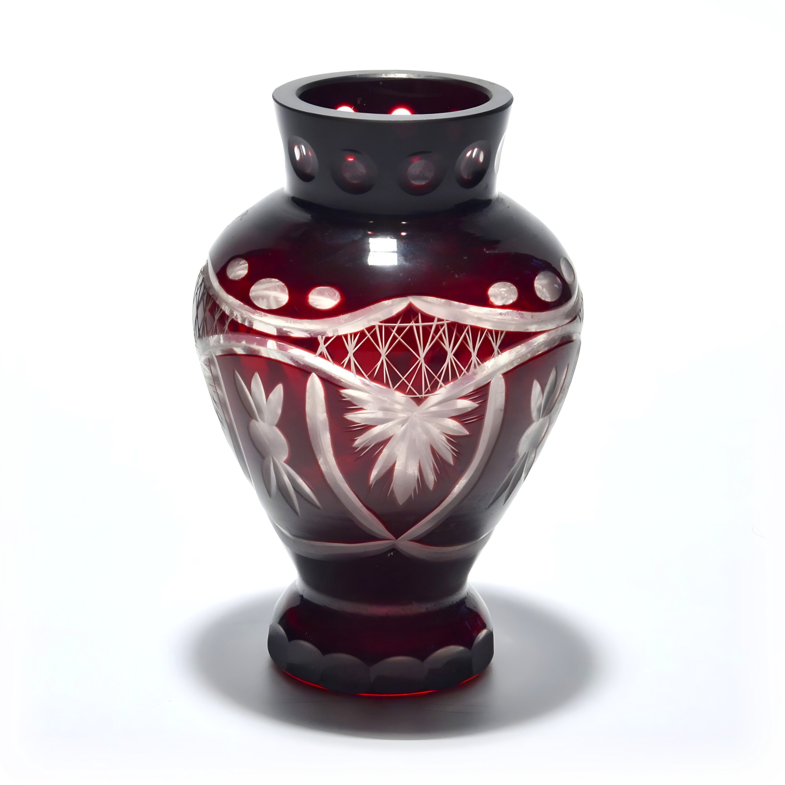Hand-Cut Ruby Red Bohemian Crystal Vase - Geometric Design