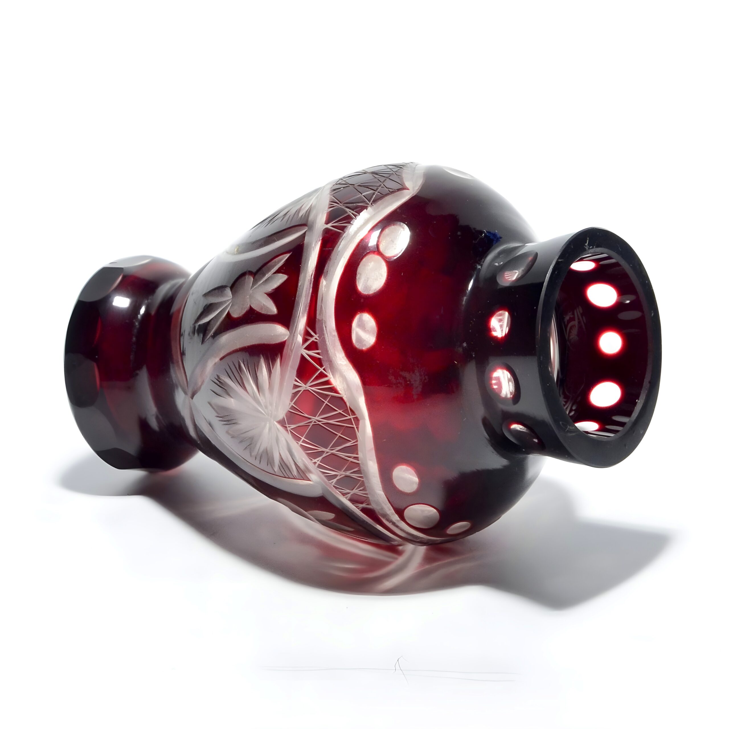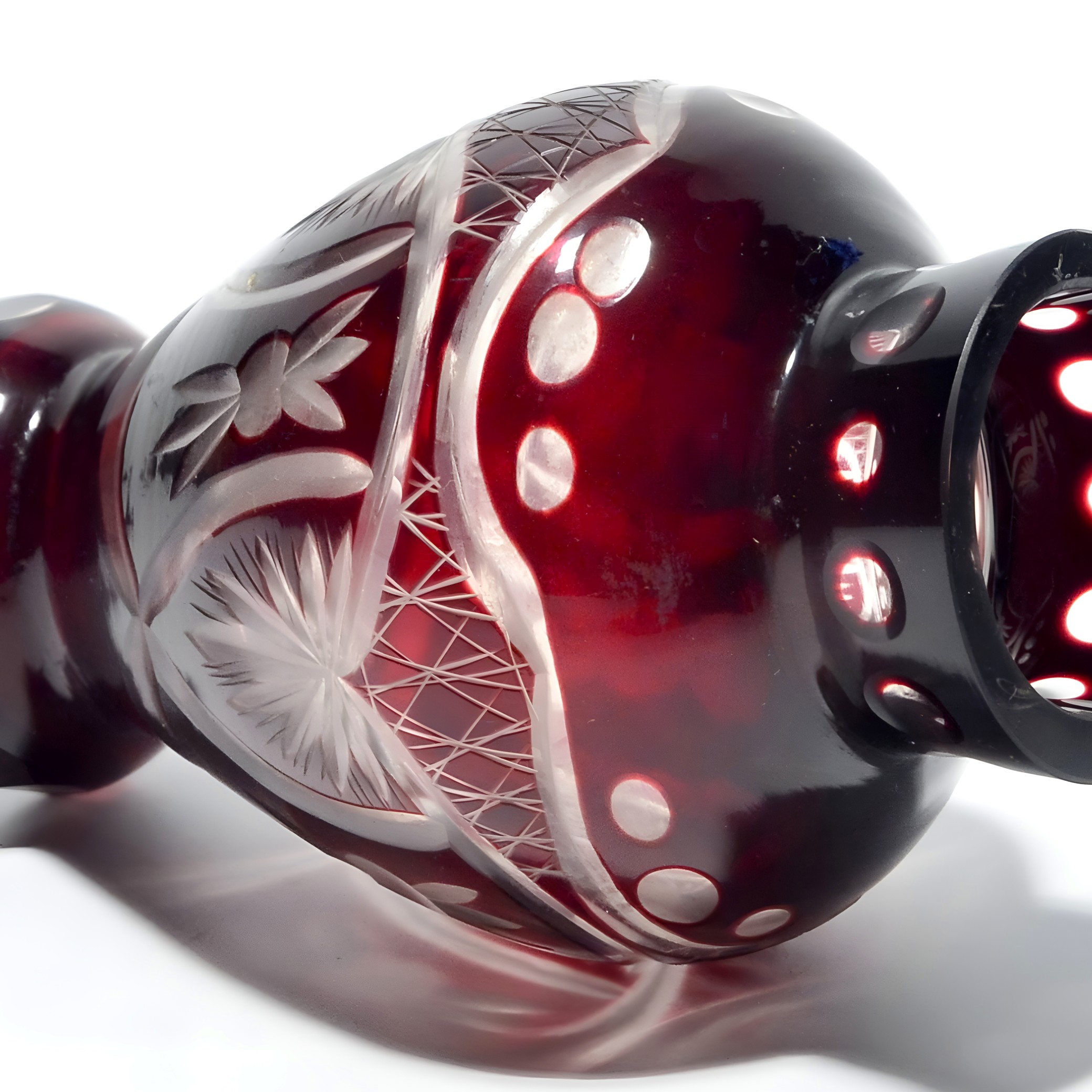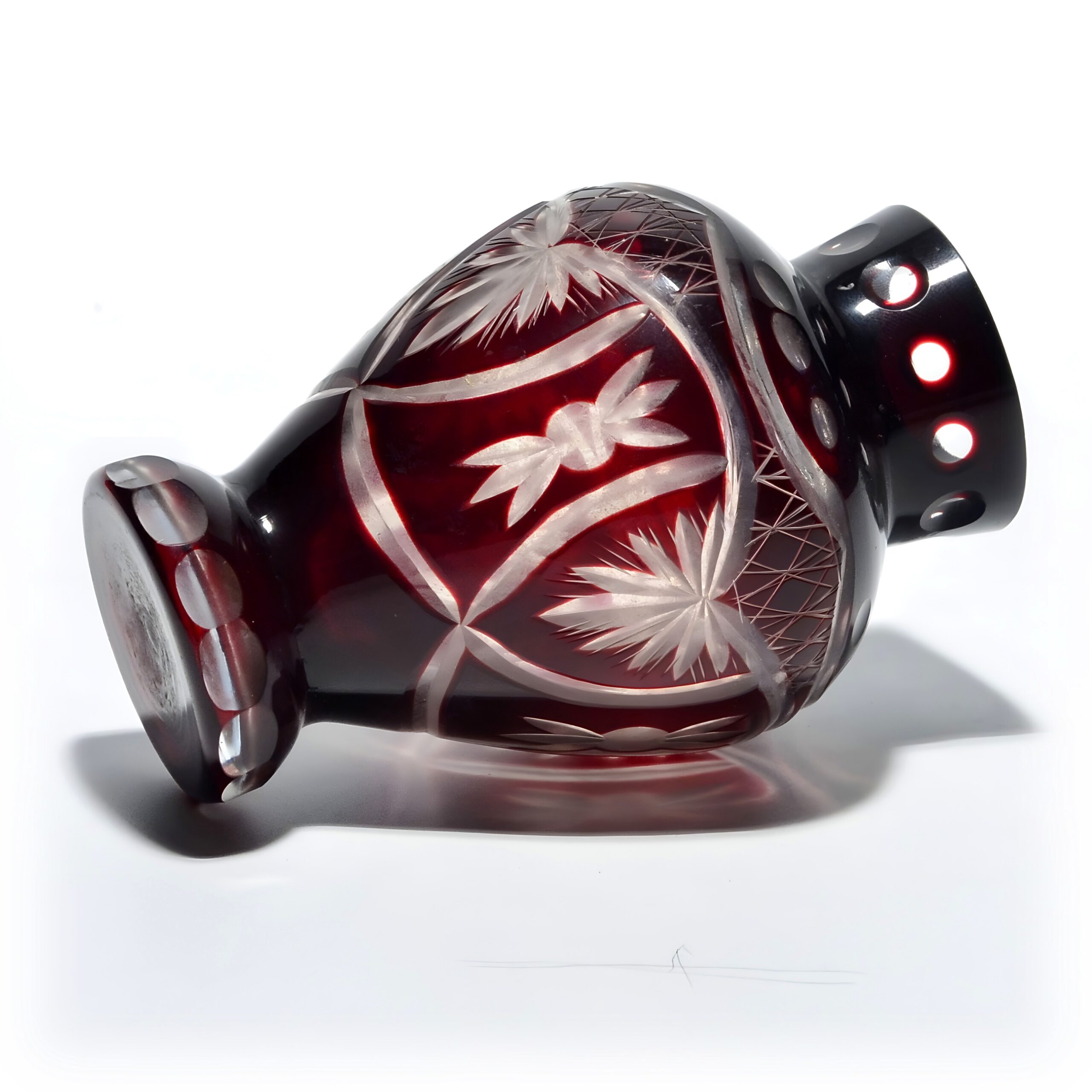 Hand-Cut Ruby Red Bohemian Crystal Vase - Geometric Design