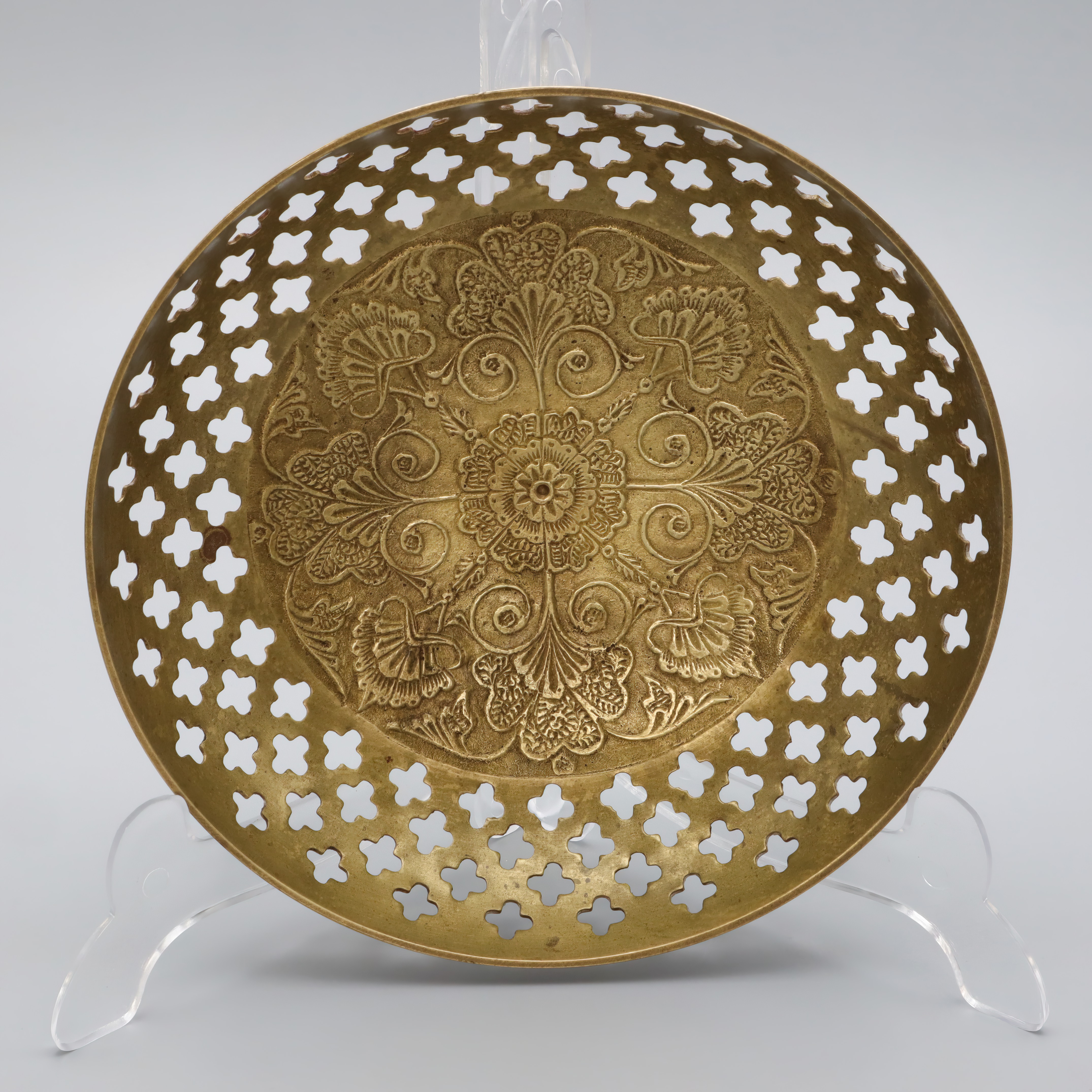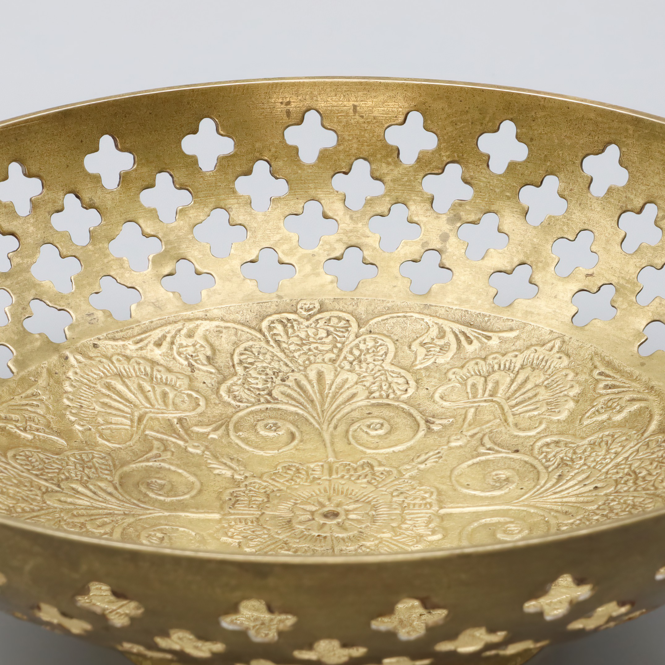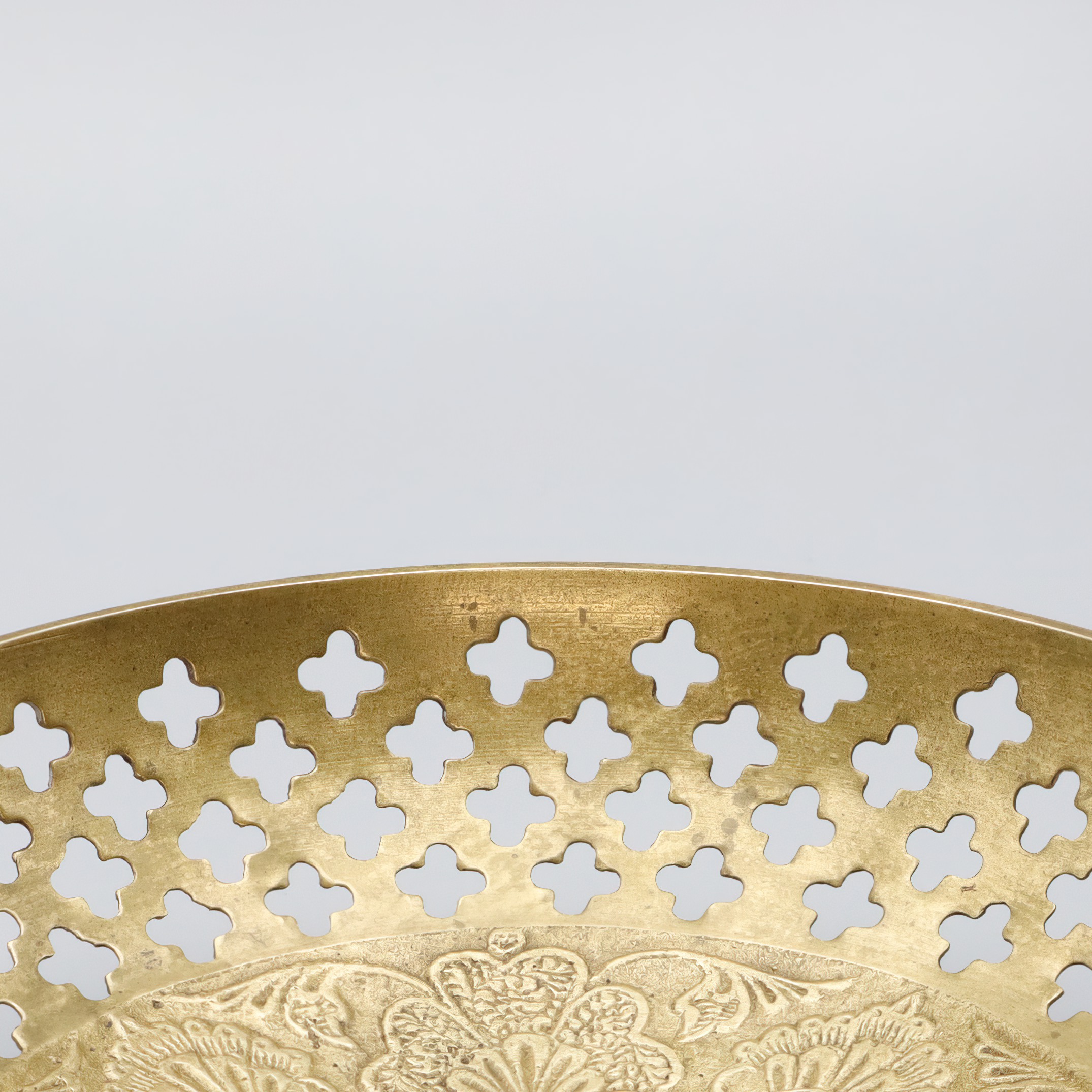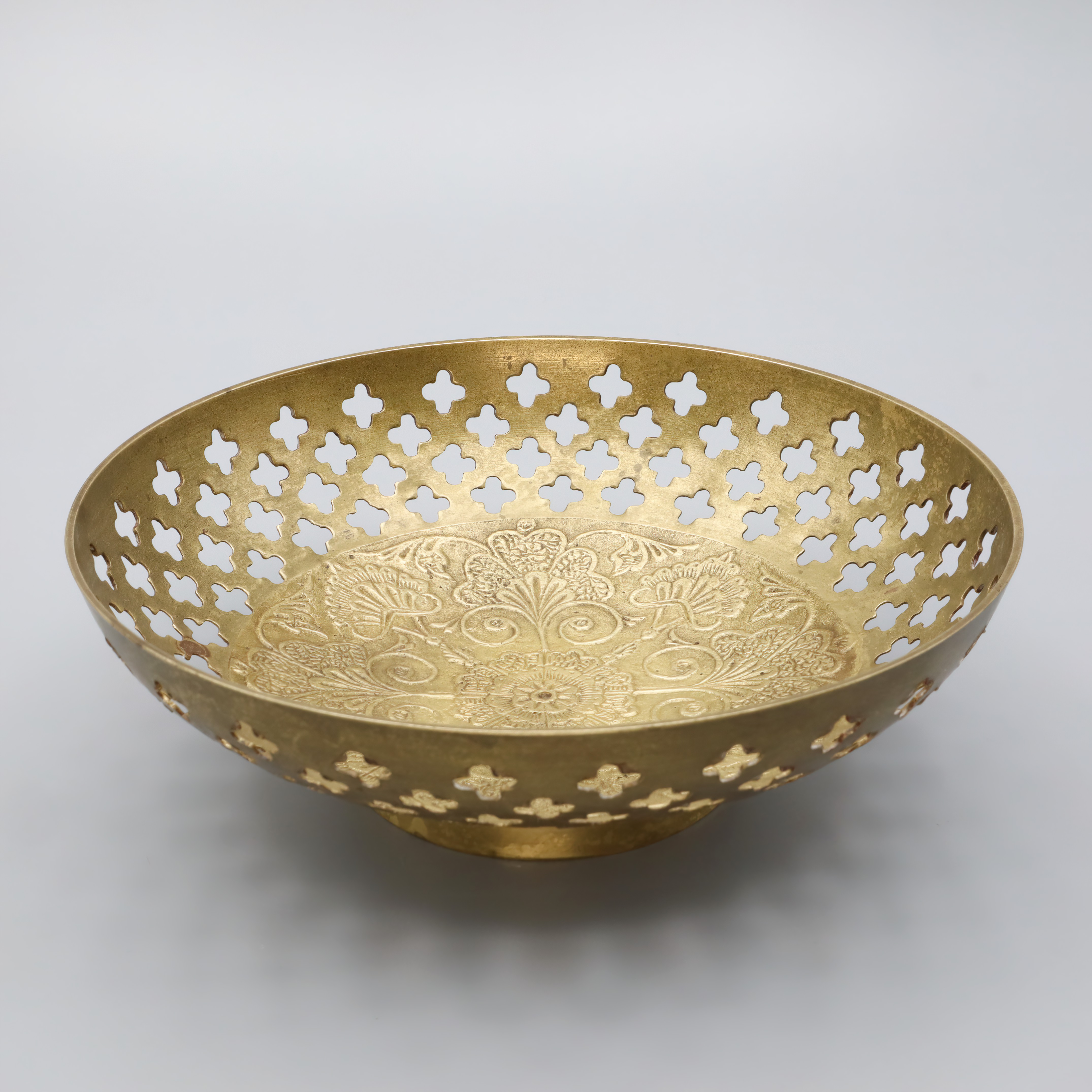The basket belongs to a line of vintage kitchenware that reflects an era when craftsmanship was paramount. In the 1960s, items like this were cherished for their durability and aesthetic appeal. The Mediterranean influence is evident in the elegant patterns etched into the bronze, which were likely inspired by classic Spanish designs. This type of tableware was not mass-produced, making each piece unique and, over time, increasingly difficult to come by. Collectors and enthusiasts of vintage decor appreciate these characteristics, and such items often become treasured heirlooms passed down through generations. As interest in nostalgic and artisan-crafted home goods continues to rise, the value and charm of such vintage pieces are only likely to increase.