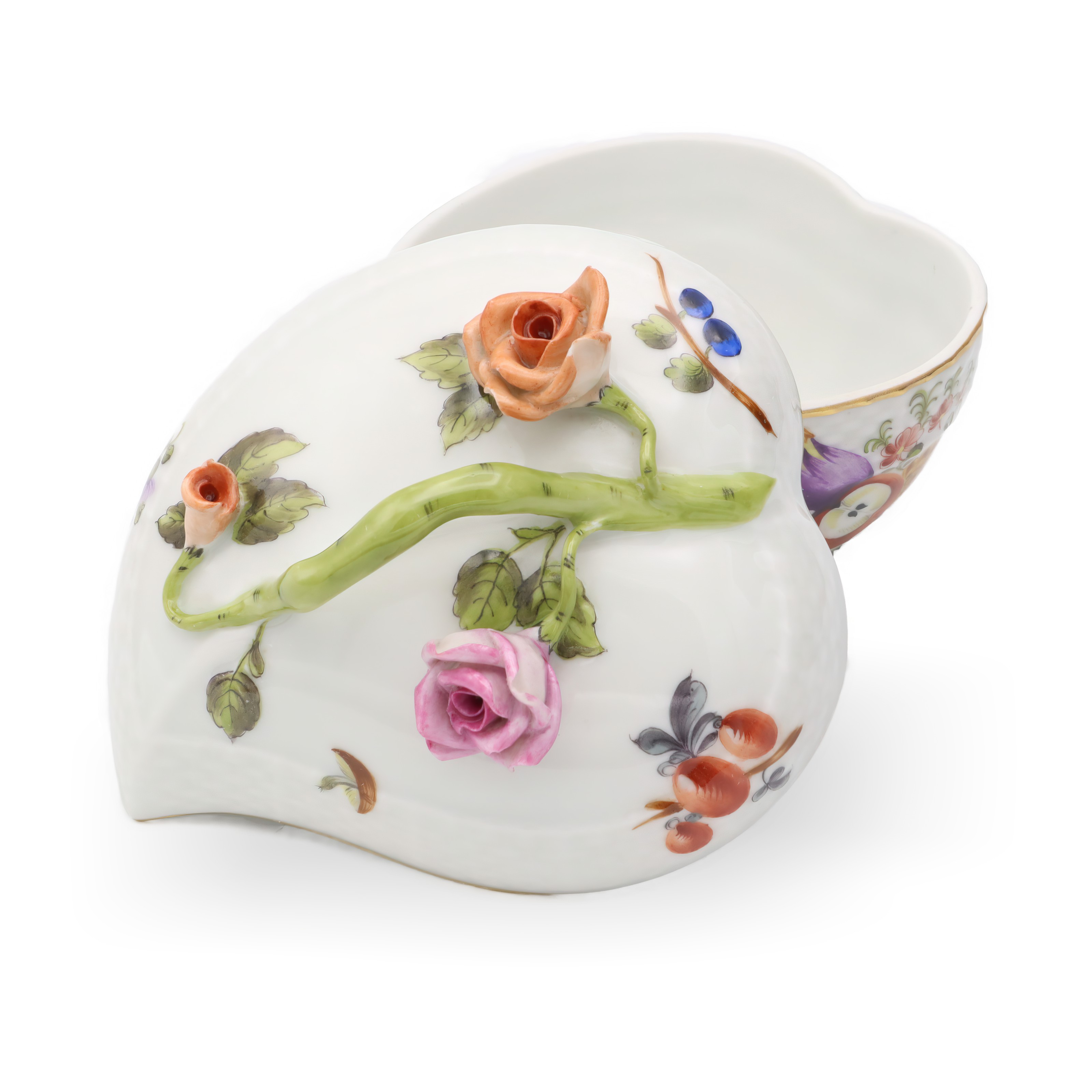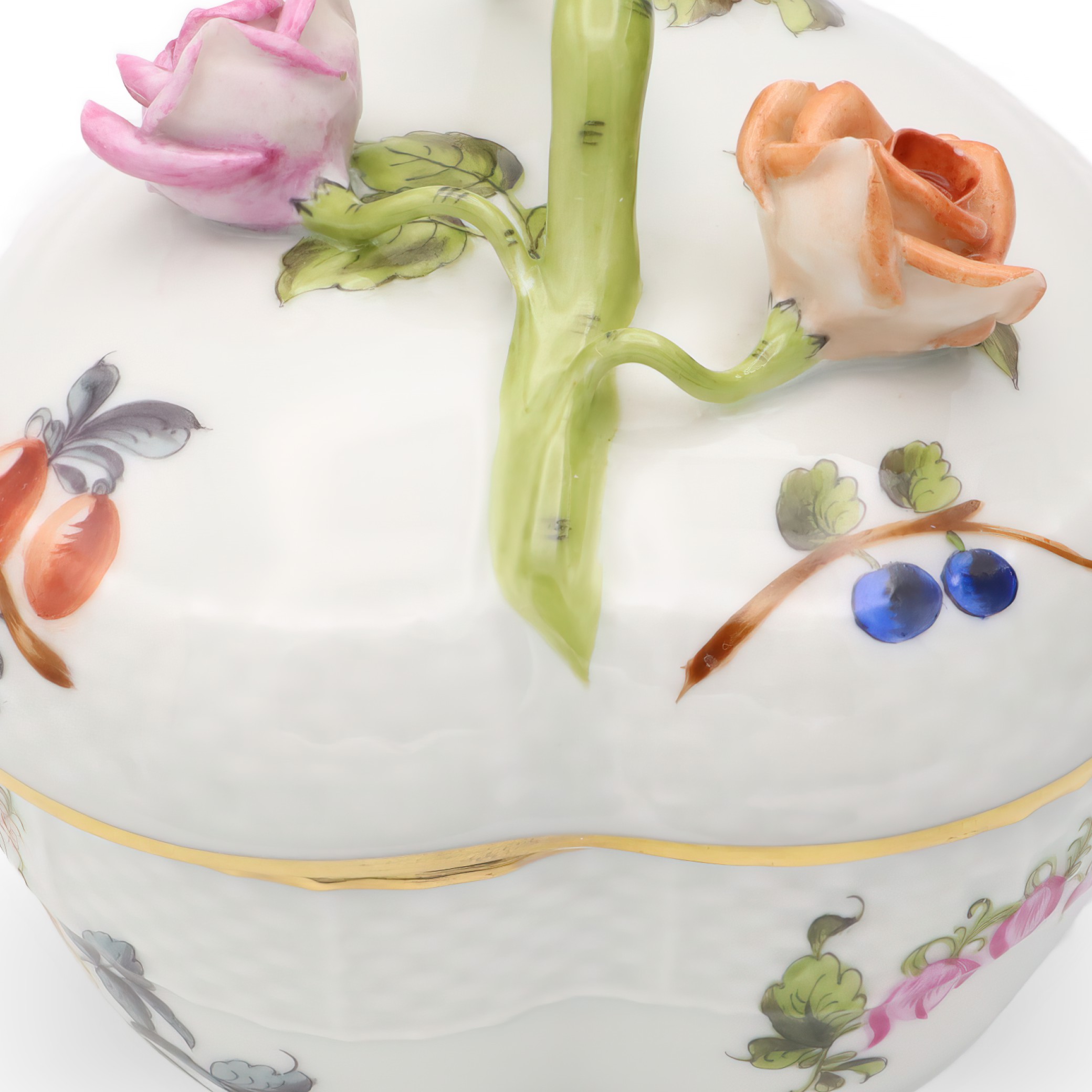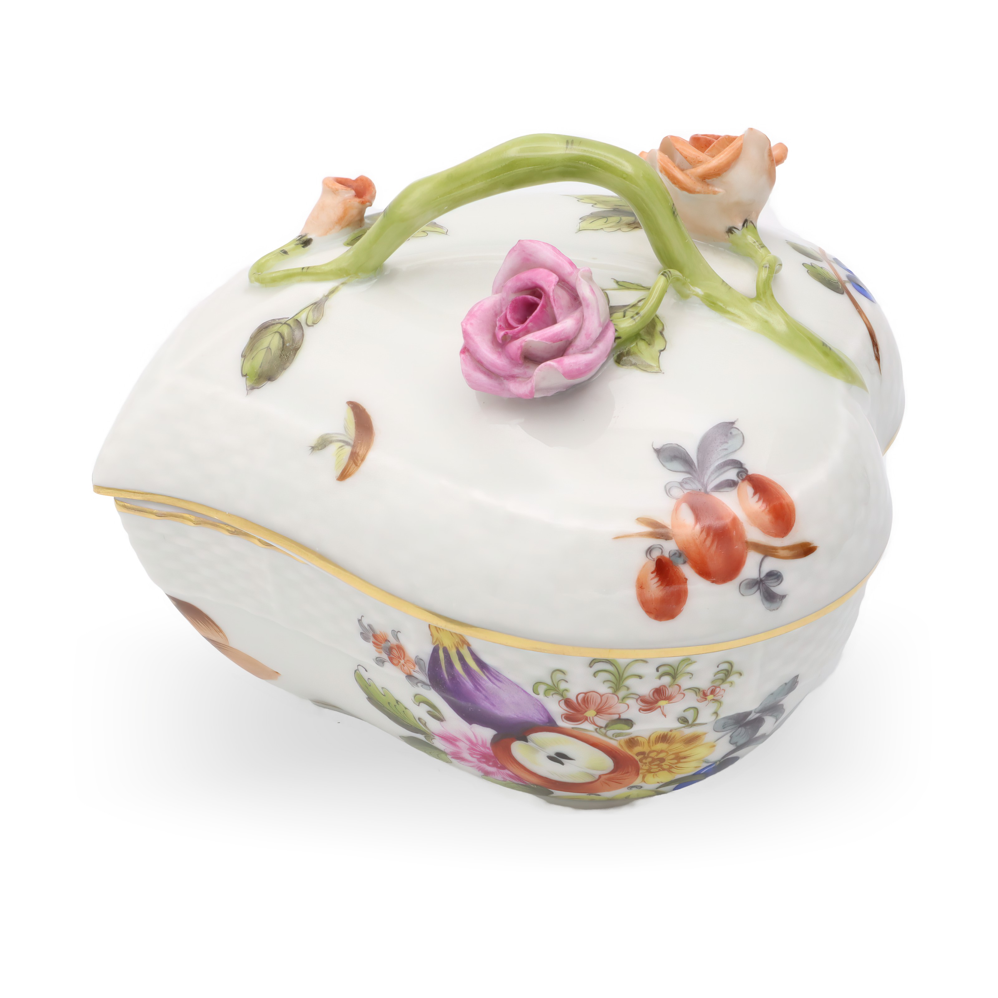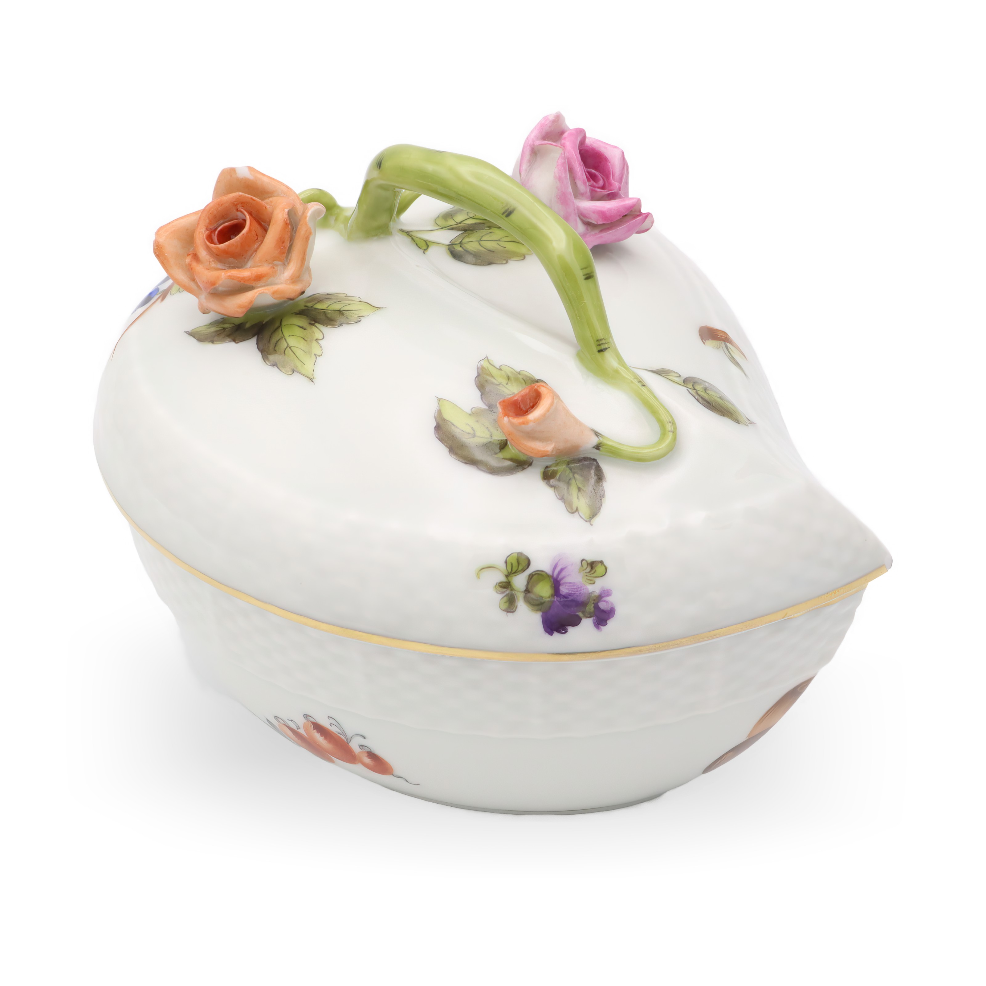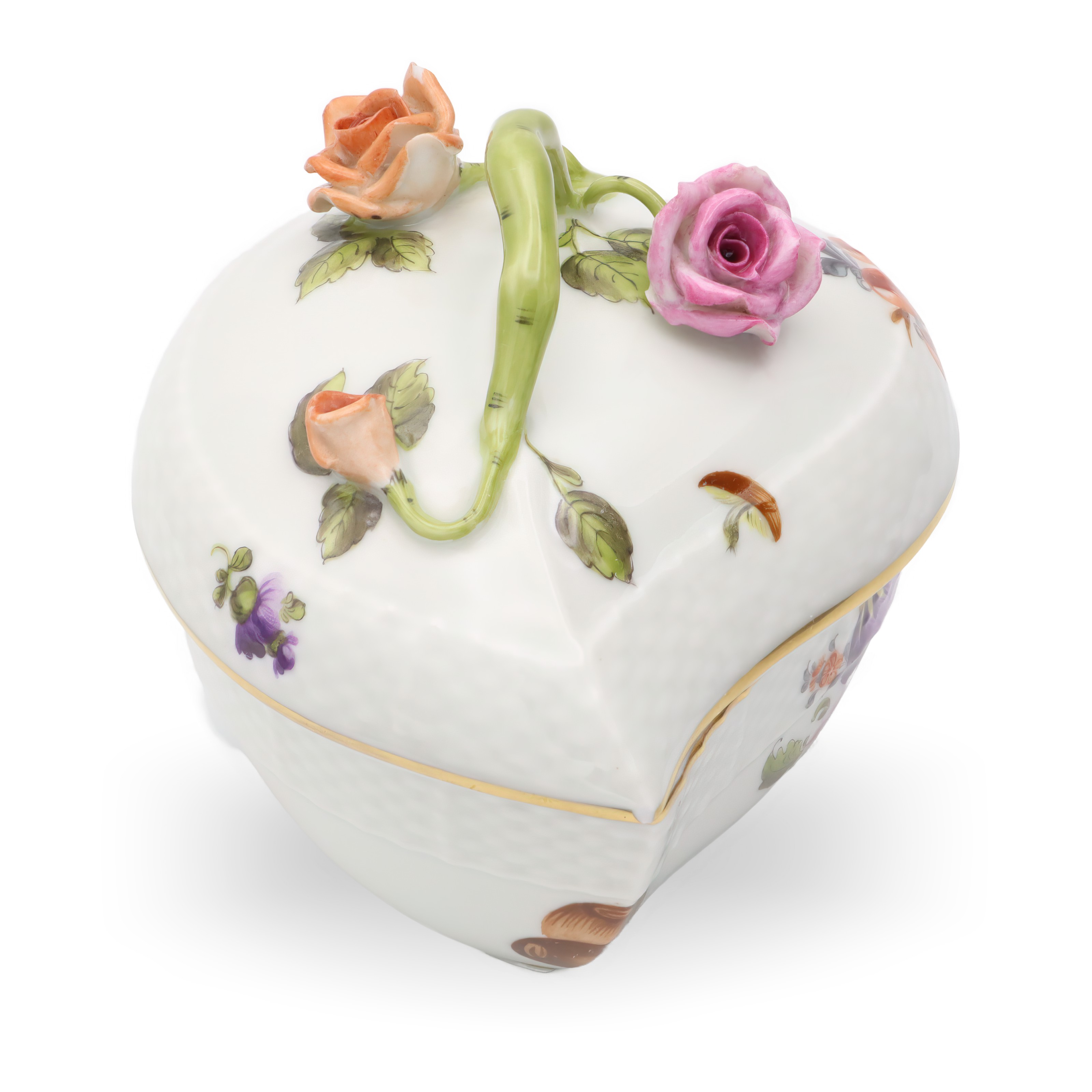 Herend is a Hungarian brand famed for its high-quality, hand-painted porcelain wares. The brand began its journey in 1826 and quickly became known for its exceptional artistry and attention to detail. Herend pieces often feature intricate floral designs, animal figurines, and vibrant colors, making them highly collectible and cherished worldwide. The Heart Shaped Bonbonniere exemplifies Herend’s traditional approach to porcelain making, with each piece being unique due to the hand-painting process.