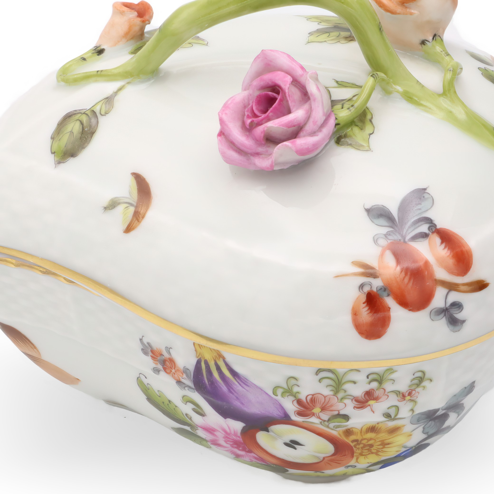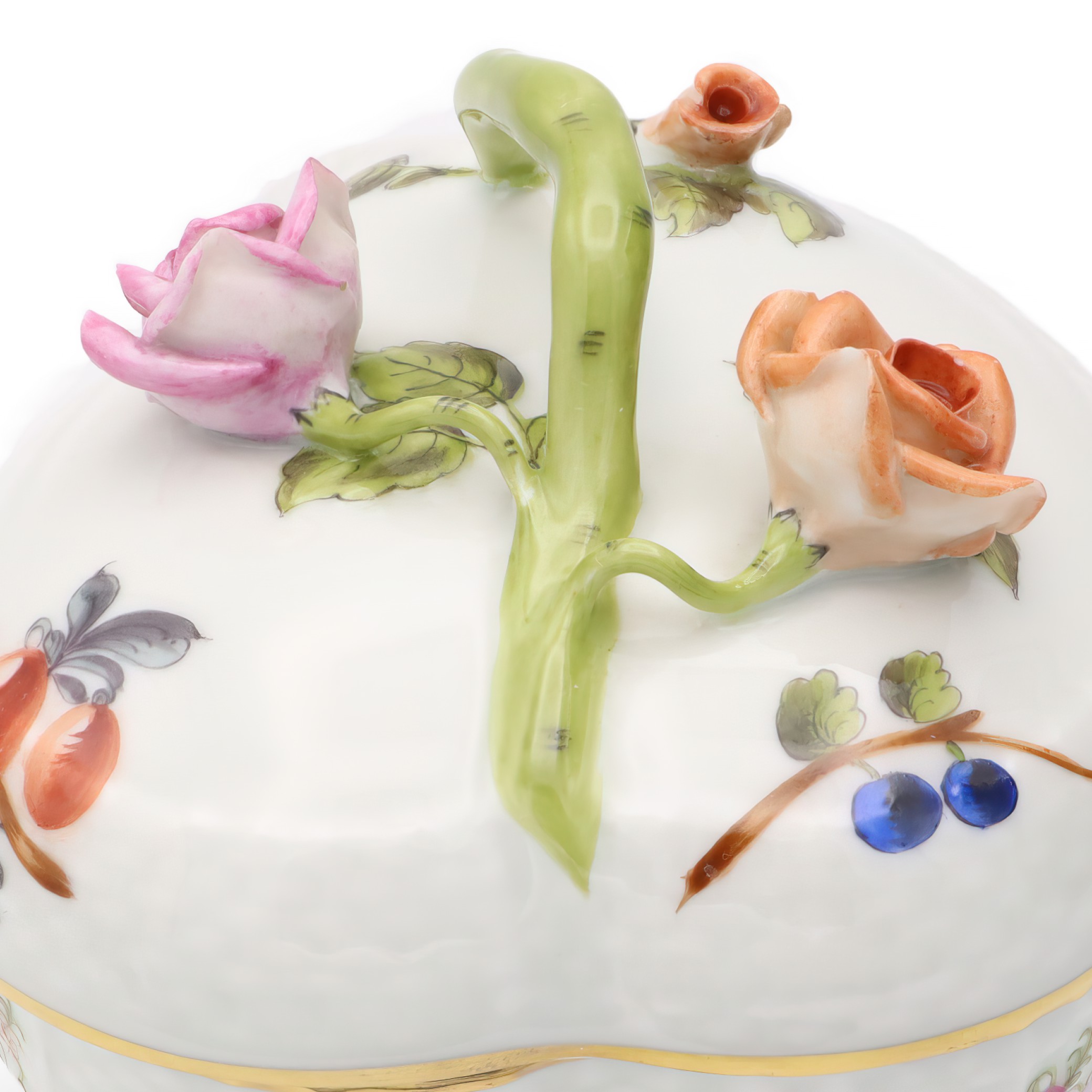 Many people find Herend items to be a touch of luxury in everyday life, blending functionality with aesthetic appeal. The brand gained significant popularity in the 19th century, even catching the eye of European royalty and aristocracy who desired unique tablewares. Today, Herend pieces like this bonbonniere are considered vintage treasures, often passed down through generations or found in antique shops and auctions. Their rarity and age add to their value and appeal, acting as symbols of a bygone era where detailed craftsmanship was highly respected and celebrated.