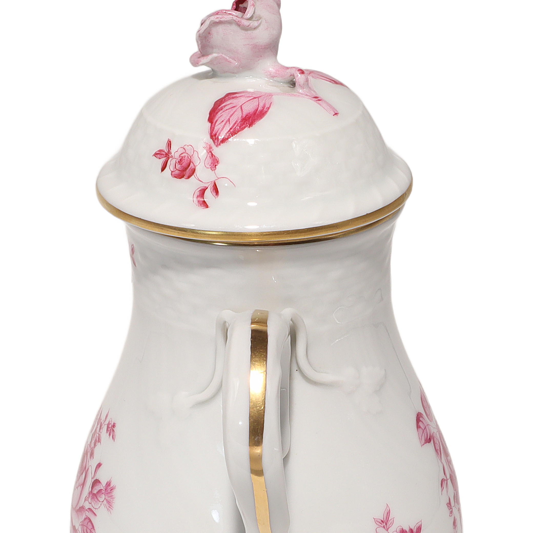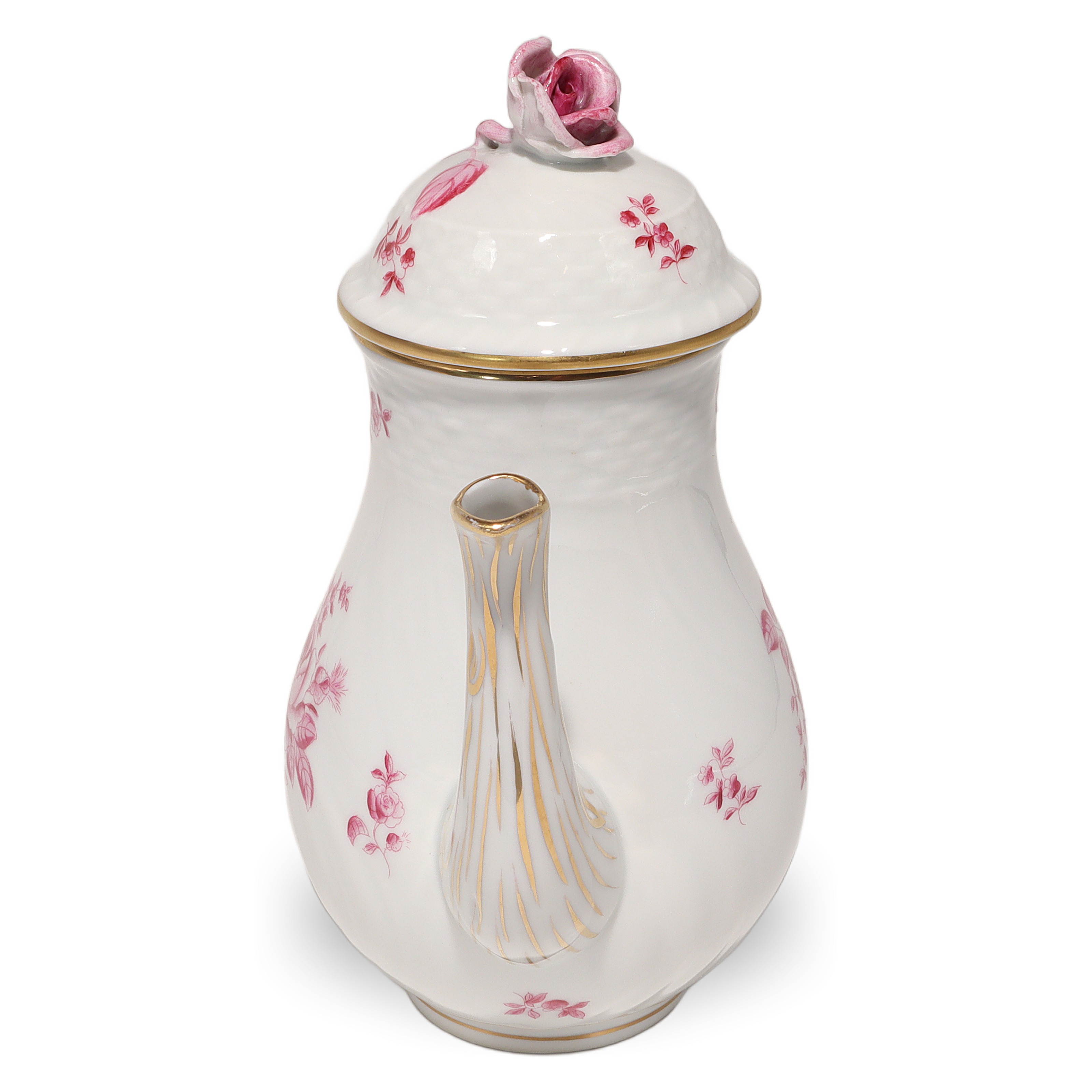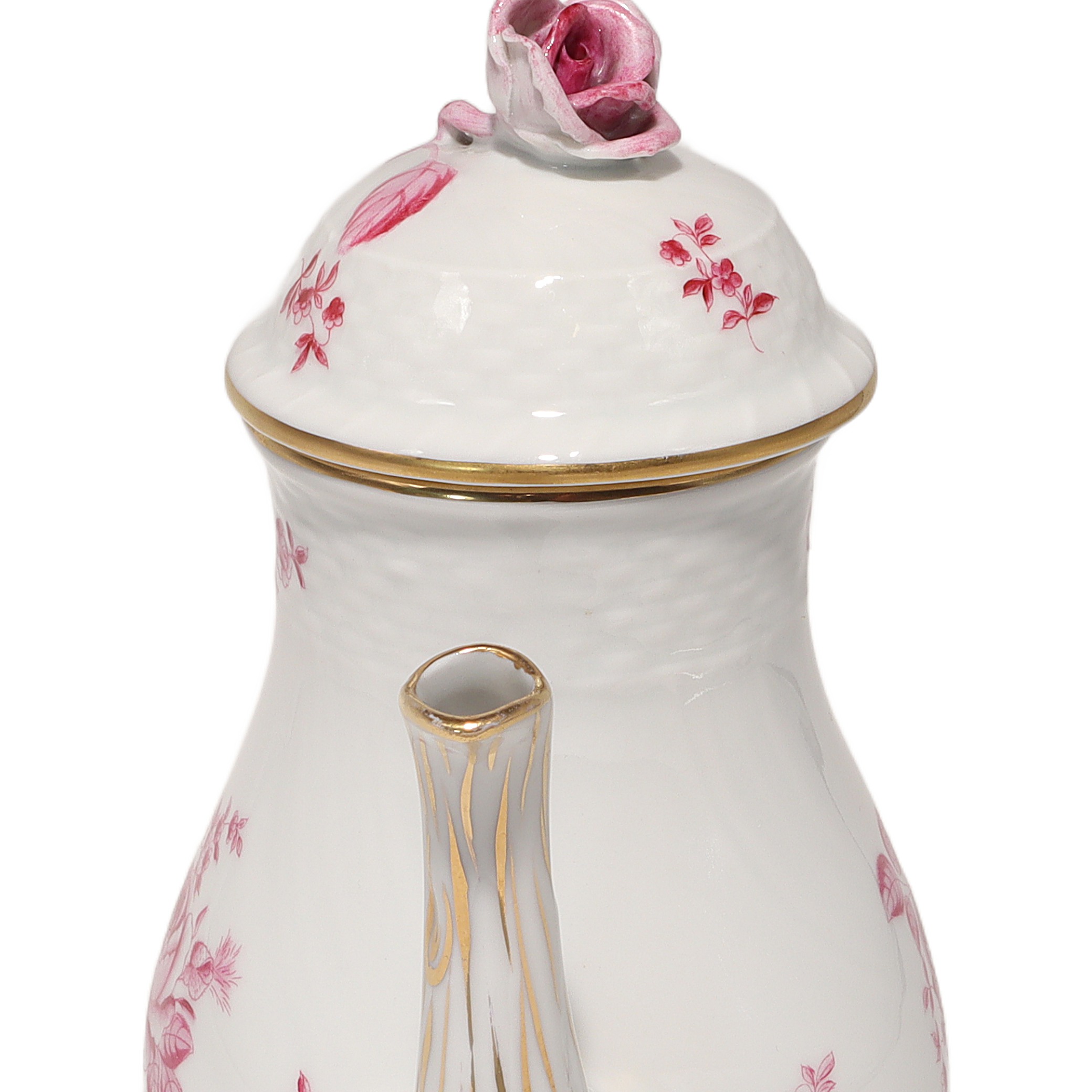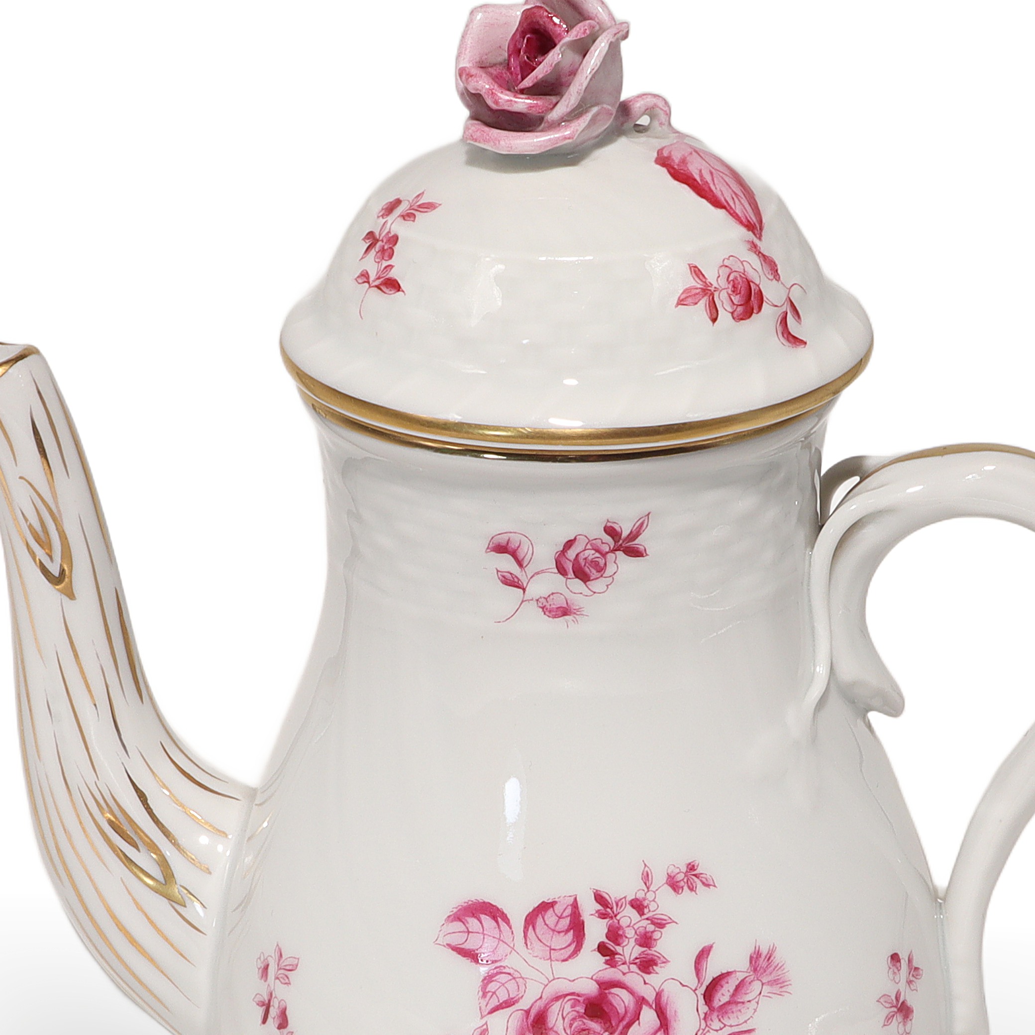 This beautiful piece is a Herend Antique Raspberry Rose Teapot, a real collector’s item…