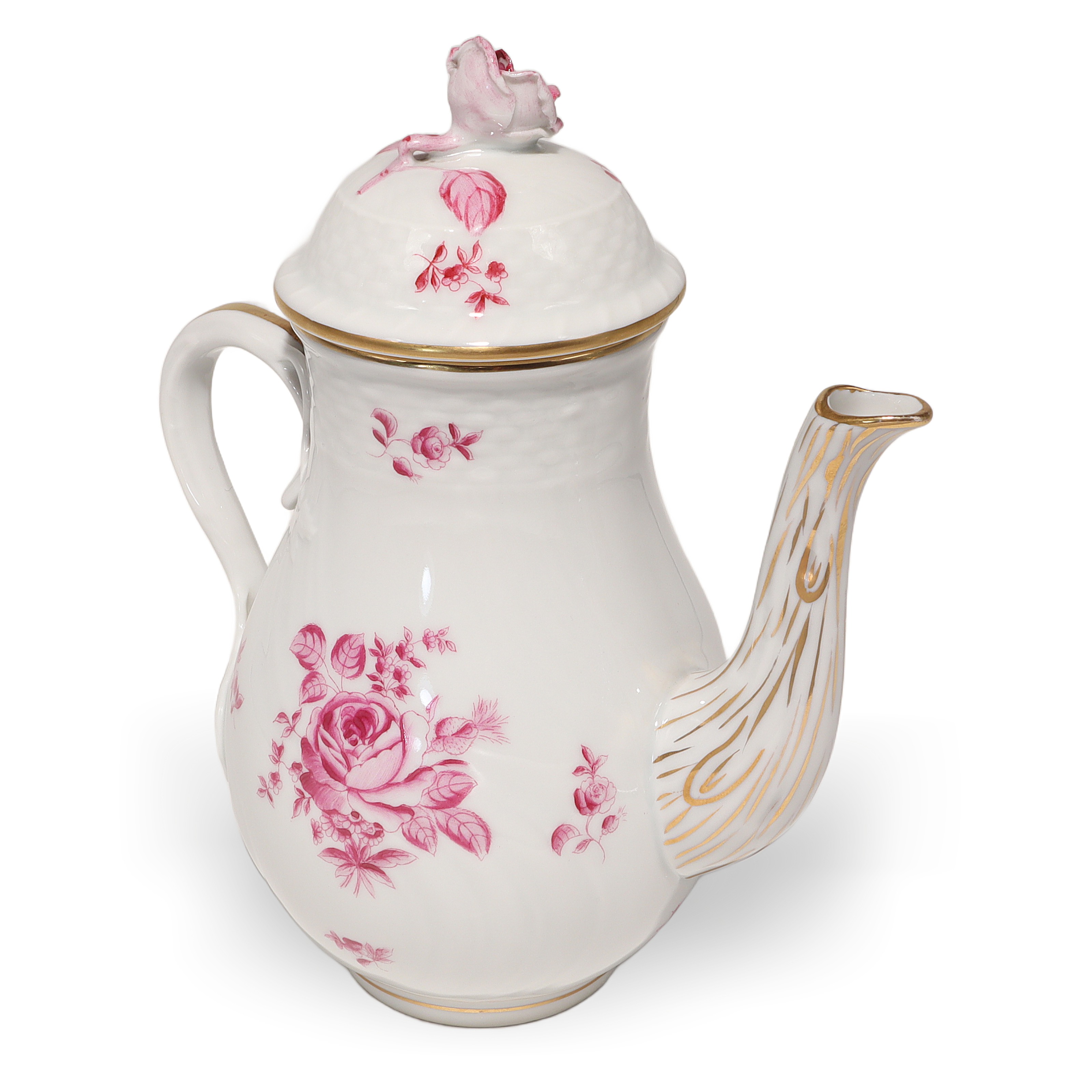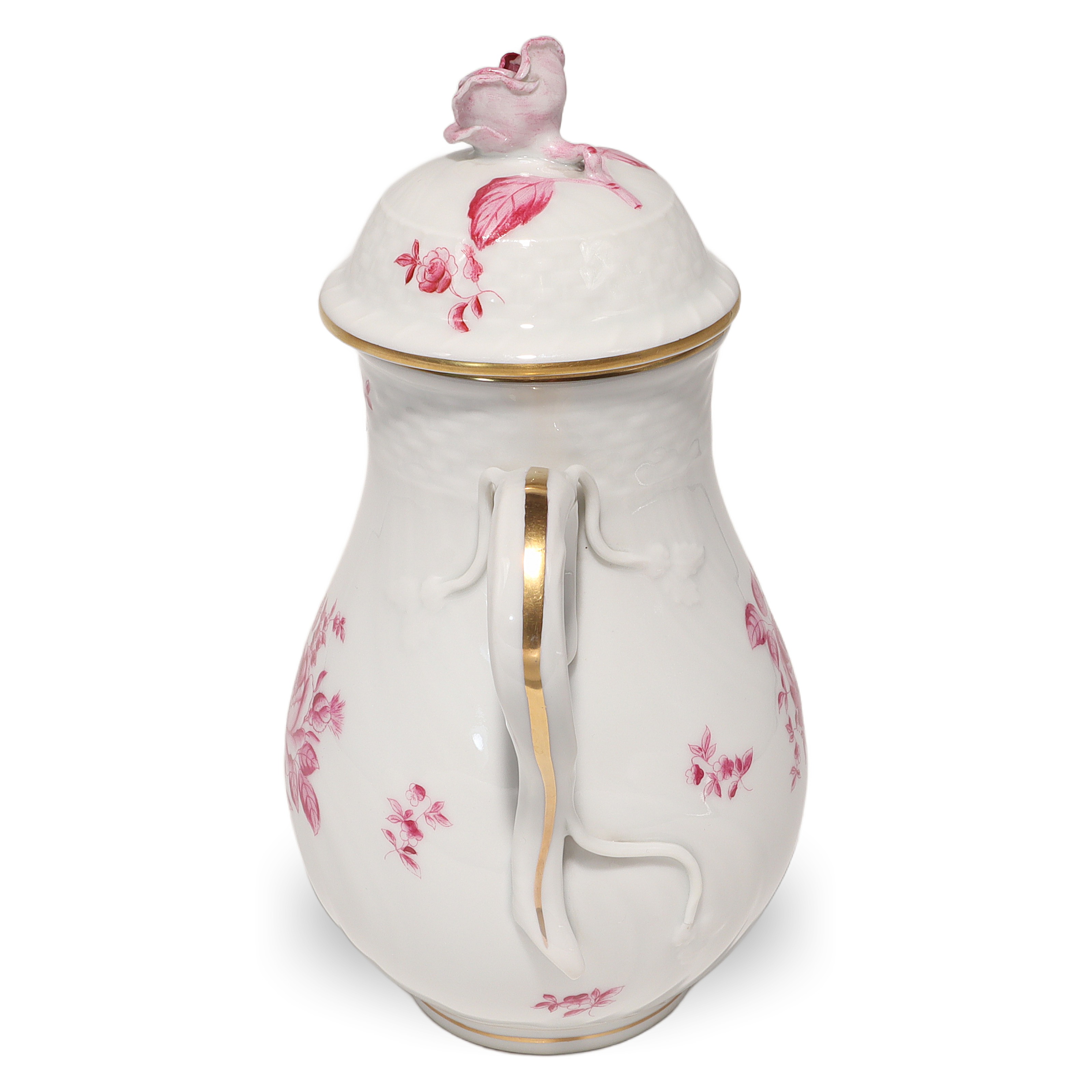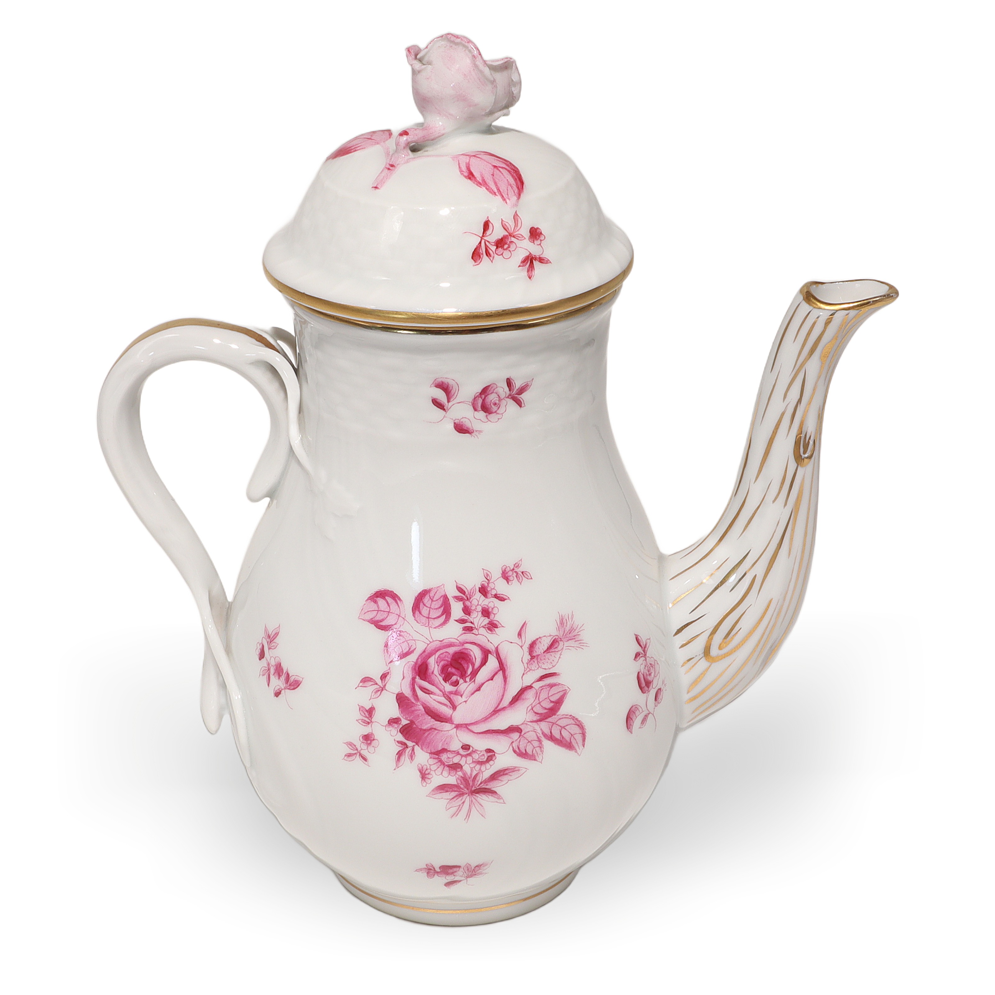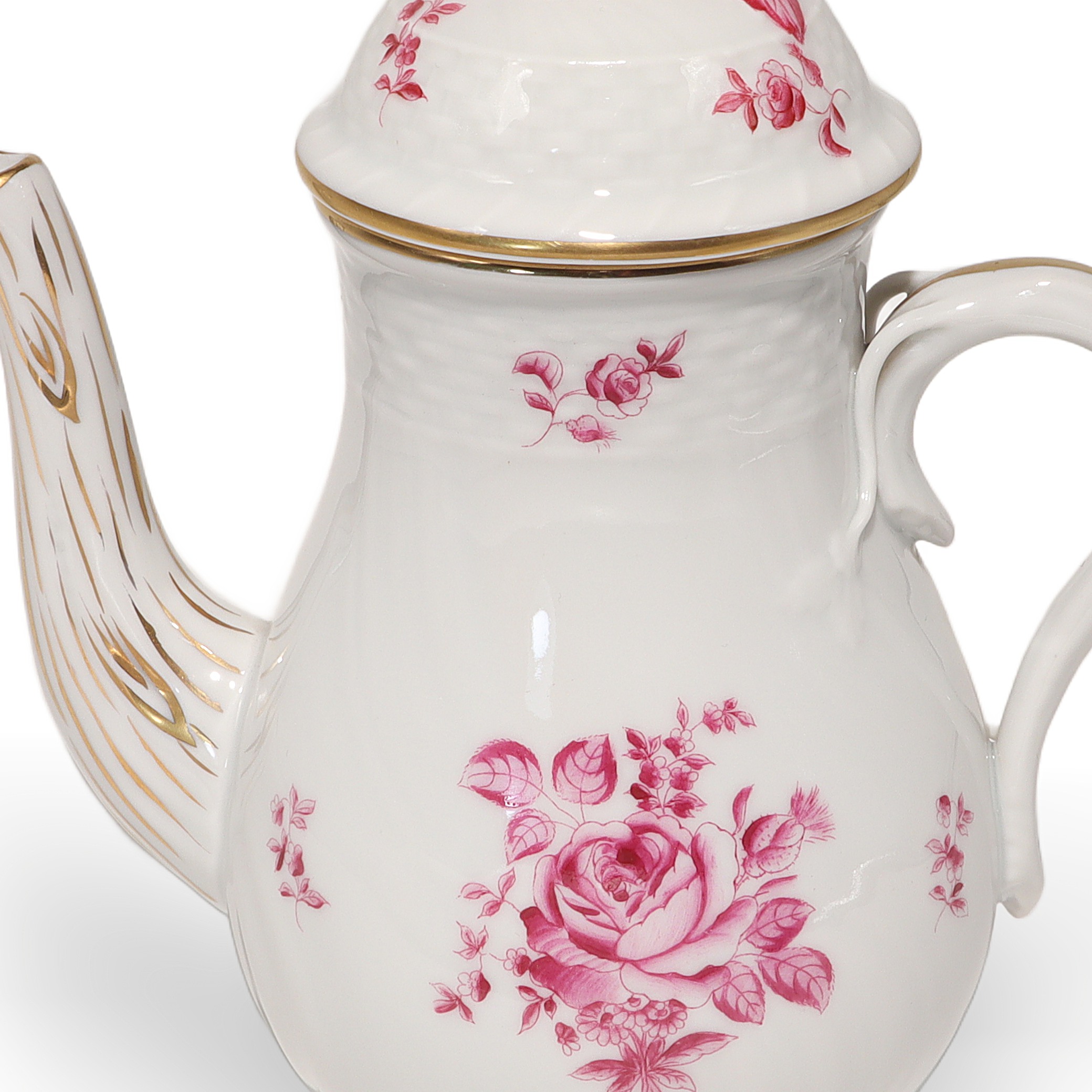 This beautiful piece is a Herend Antique Raspberry Rose Teapot, a real collector’s item…