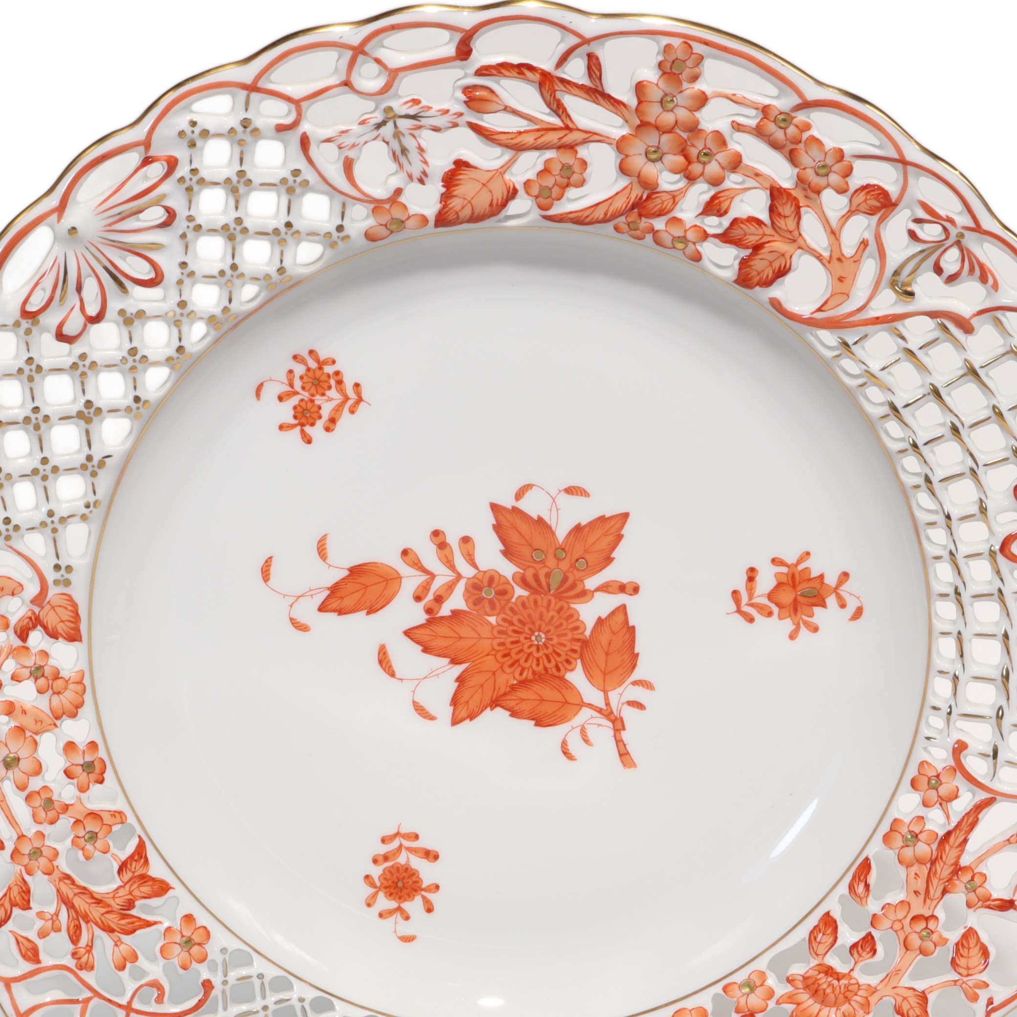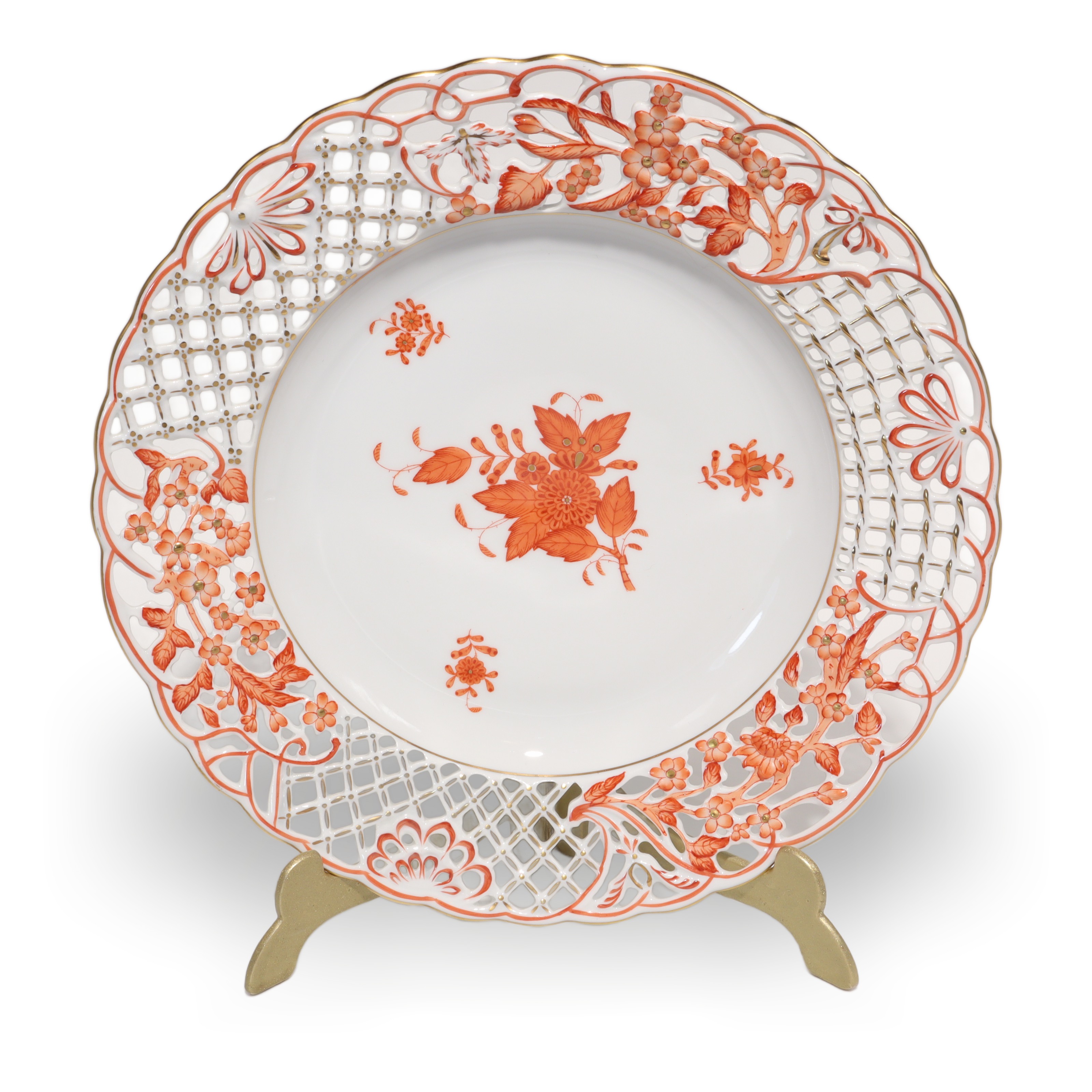 Herend Apponyi Rust Openwork Dinner Plate - Handpainted Antique Porcelain