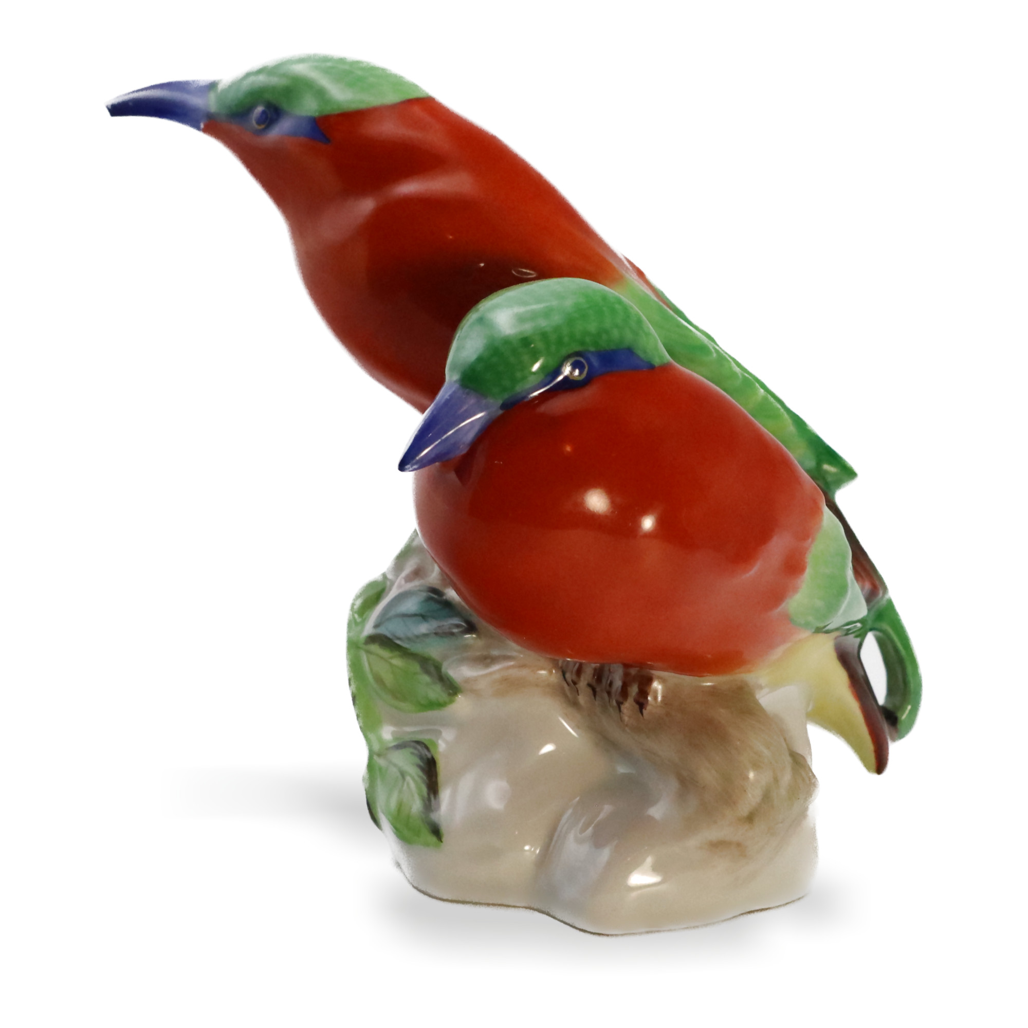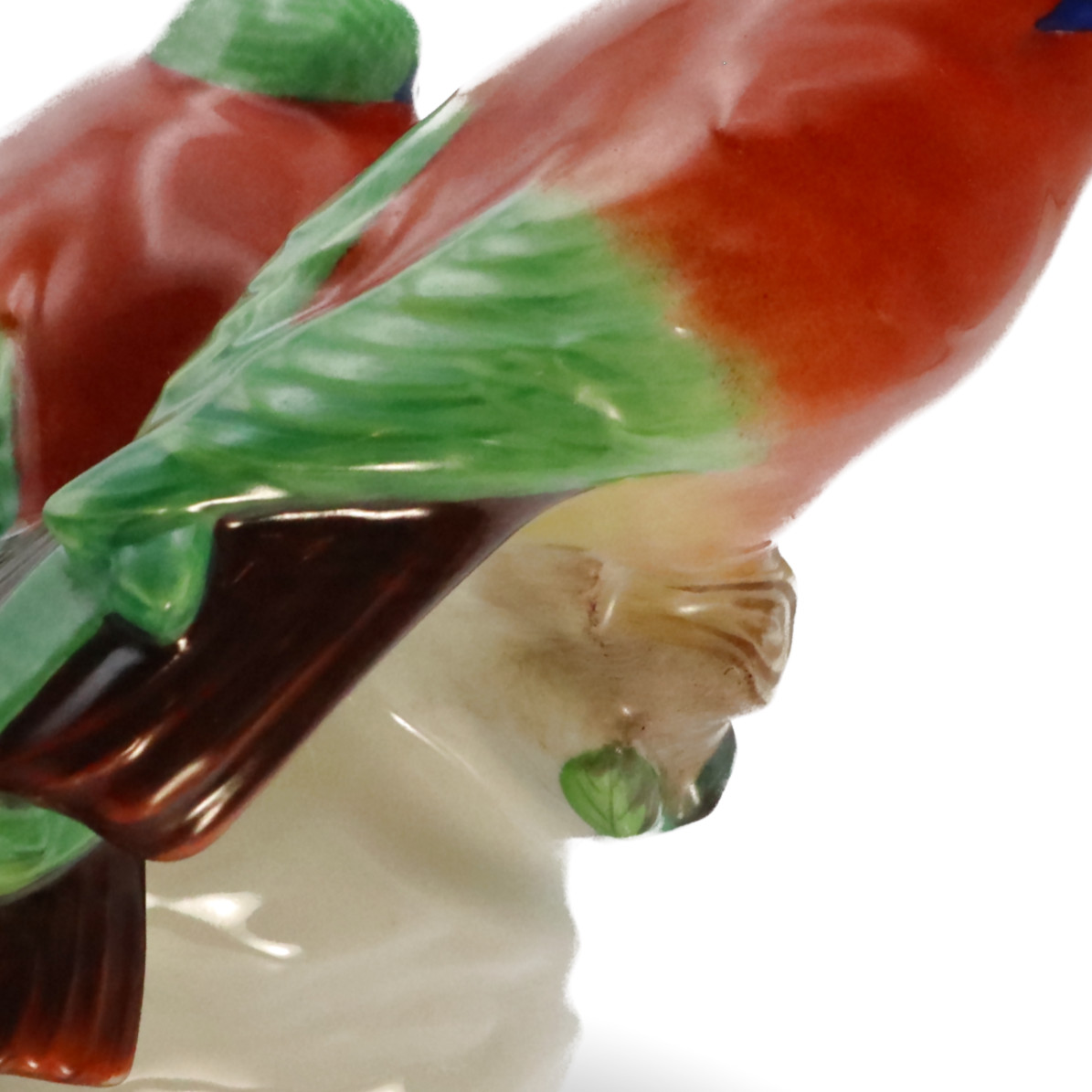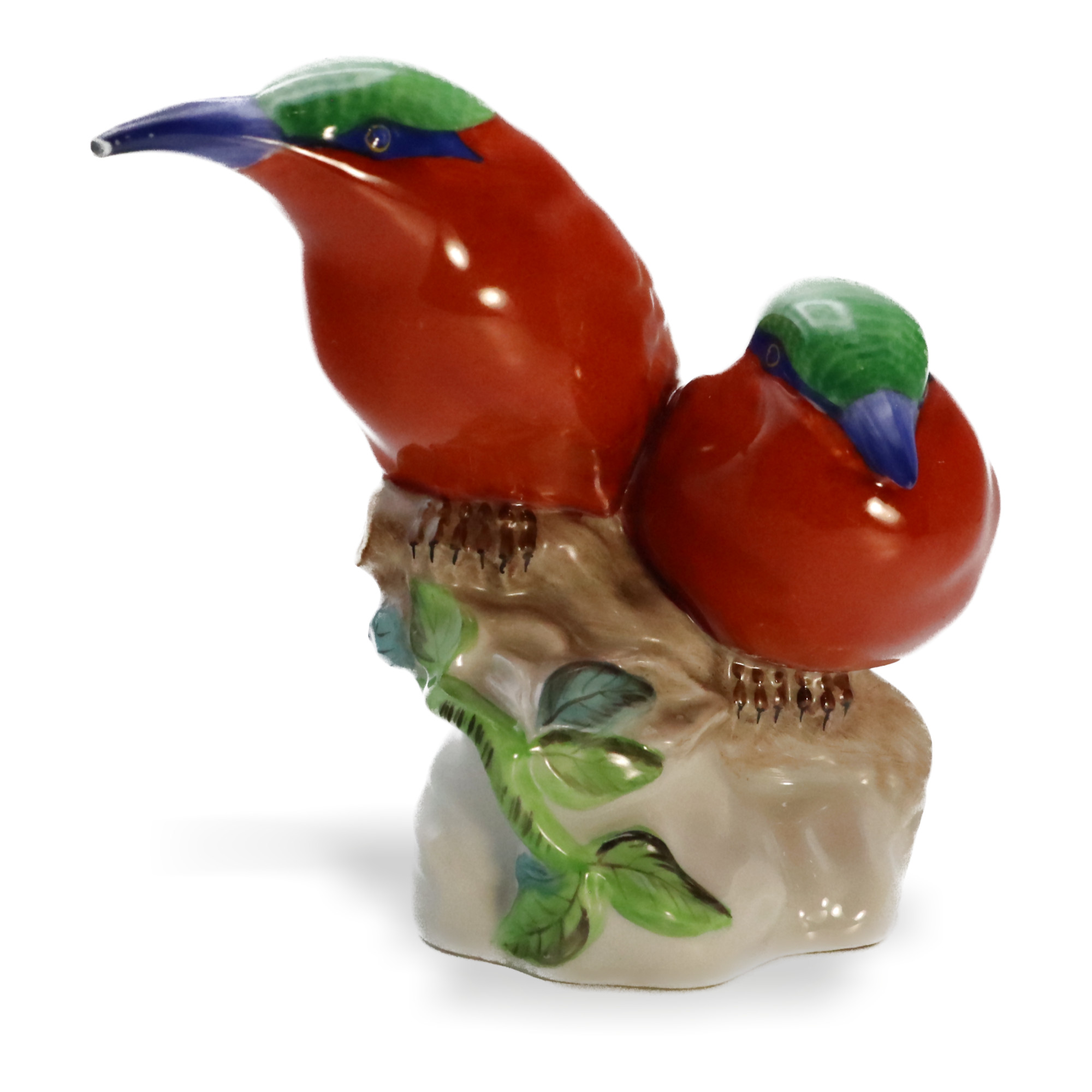 The Kingfisher figurines are a testament to Herend’s dedication to craftsmanship and artistic expression. The vibrant colors used in these pieces are applied with brushes of the finest sable hair, ensuring precision and depth in every stroke. The meticulous attention to detail is evident in the lifelike feathers, the expressive eyes, and the intricate leaves that form the base of the figurines. Each kingfisher is not just a decorative item, but a piece of art that tells a story and brings a touch of nature’s beauty into your space.