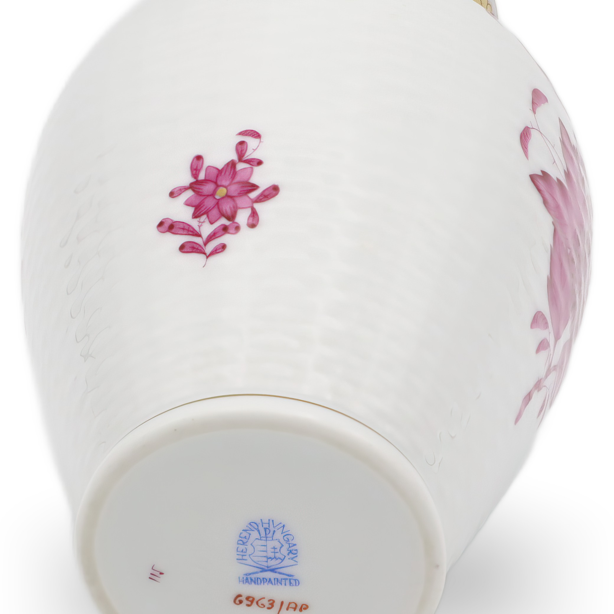 Herend is the name behind this vase, and it’s a brand that’s steeped in tradition. Founded in 1826 in Hungary, the Herend Porcelain Manufactory has built an international reputation for hand-painted, high-quality porcelain that has graced the tables of royalty and aristocracy for generations. The Chinese Bouquet pattern, sometimes referred to in Europe as “Apponyi,” was first introduced in the 1930s. Its roots are inspired by earlier far-eastern designs, which were all the rage among Europe’s elite, and the Herend artisans reinterpreted them with their own twist—like the vibrant raspberry purpur you see on this vase. Each Herend piece continues to be hand-painted, so no two vases are ever exactly alike.