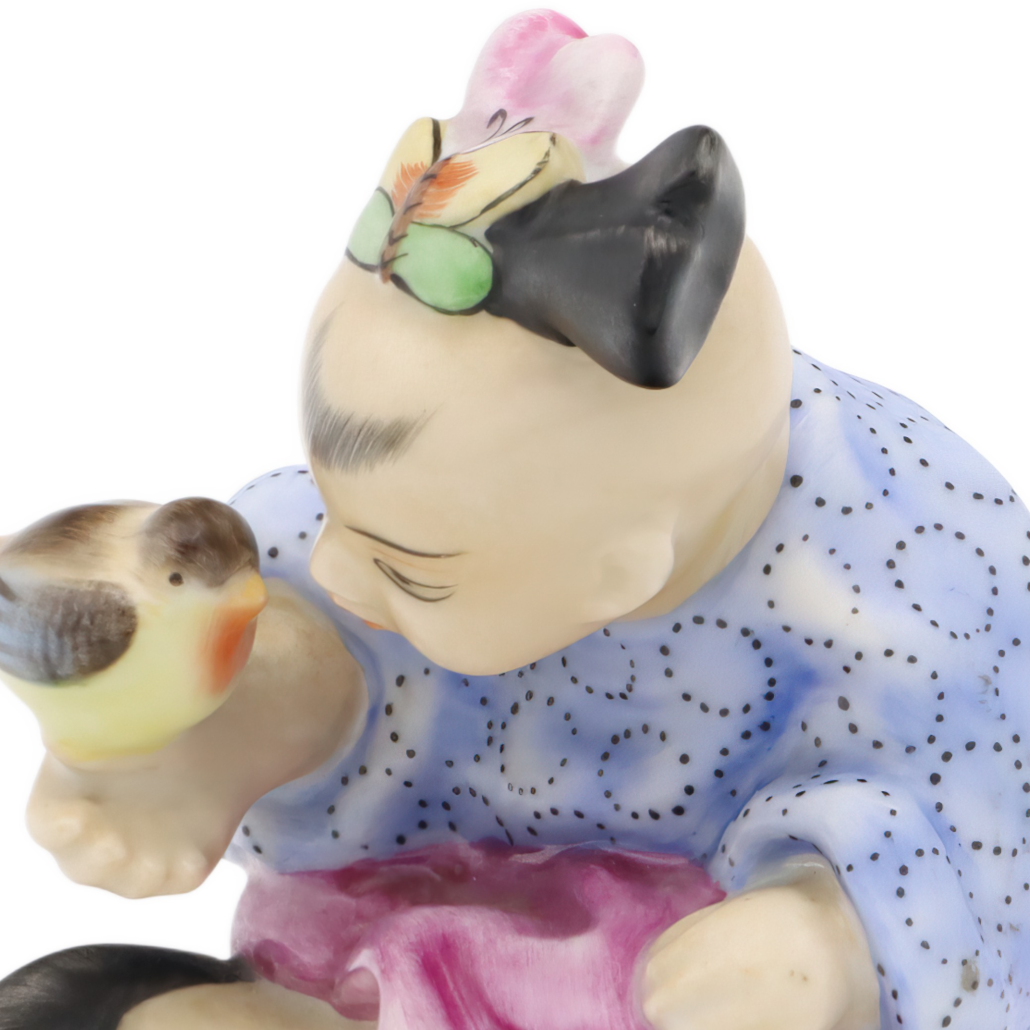 Herend is a name that carries a lot of weight in the world of porcelain. The Herend Porcelain Manufactory, founded in 1826 in Hungary, has been producing luxury hand-painted porcelain for nearly two centuries. These designs are especially beloved for their attention to detail and vibrant, long-lasting colors. Herend pieces are still made today using traditional techniques—each one is shaped and painted entirely by hand by skilled artisans. Some Herend figurines even feature elaborate gold accents or delicate flowers modeled from porcelain. Over the decades, Herend has made a range of collectible lines, often inspired by European and Asian motifs, which adds to their worldwide appeal. The Chinese Girl With Bird figurine is one such standout item, reflecting an “oriental” influence popular in mid-century decorative arts.