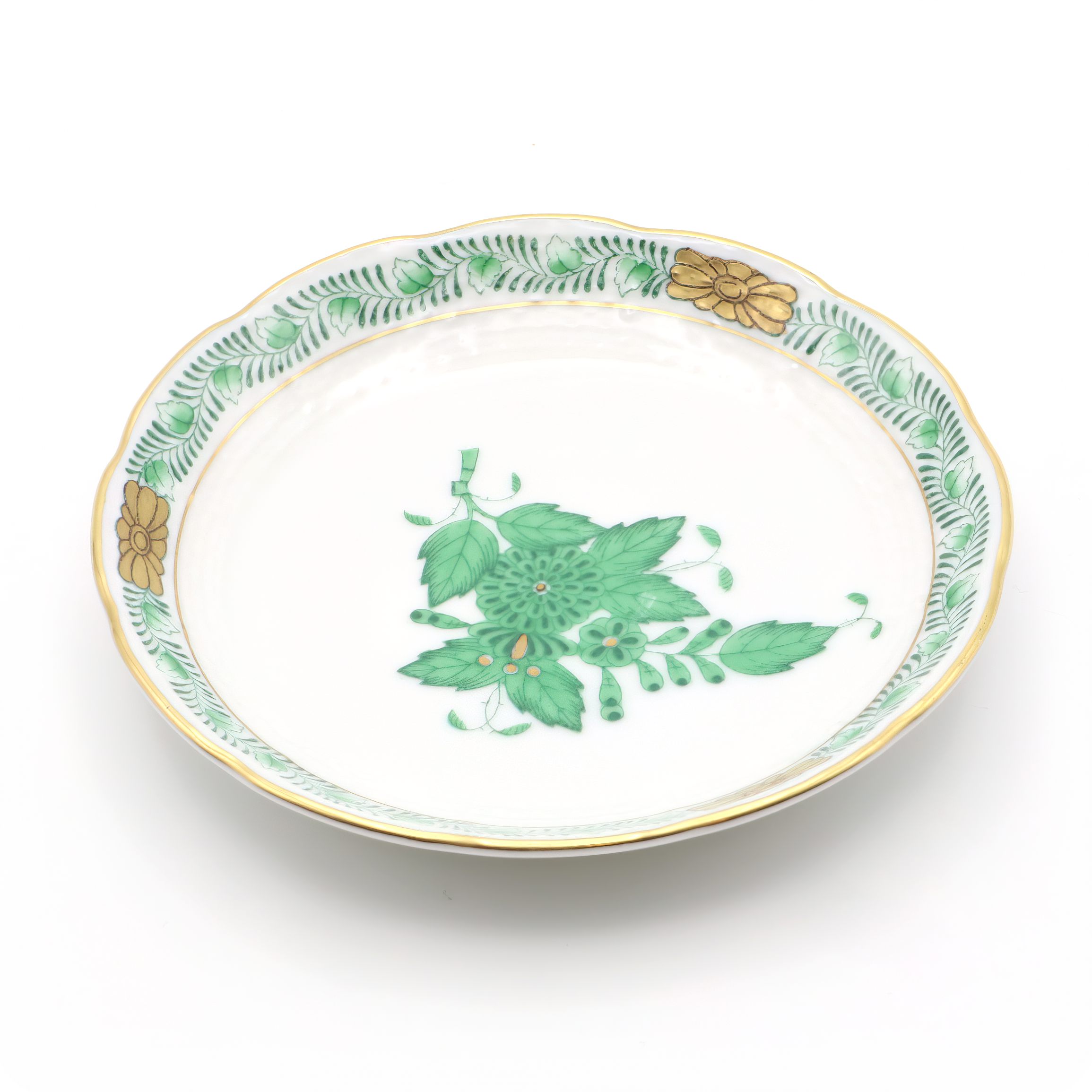 This beautiful vintage piece is a Herend Green Trinket Tray, made around the year 1960. It’s designed in the classic Chinese Bouquet…
