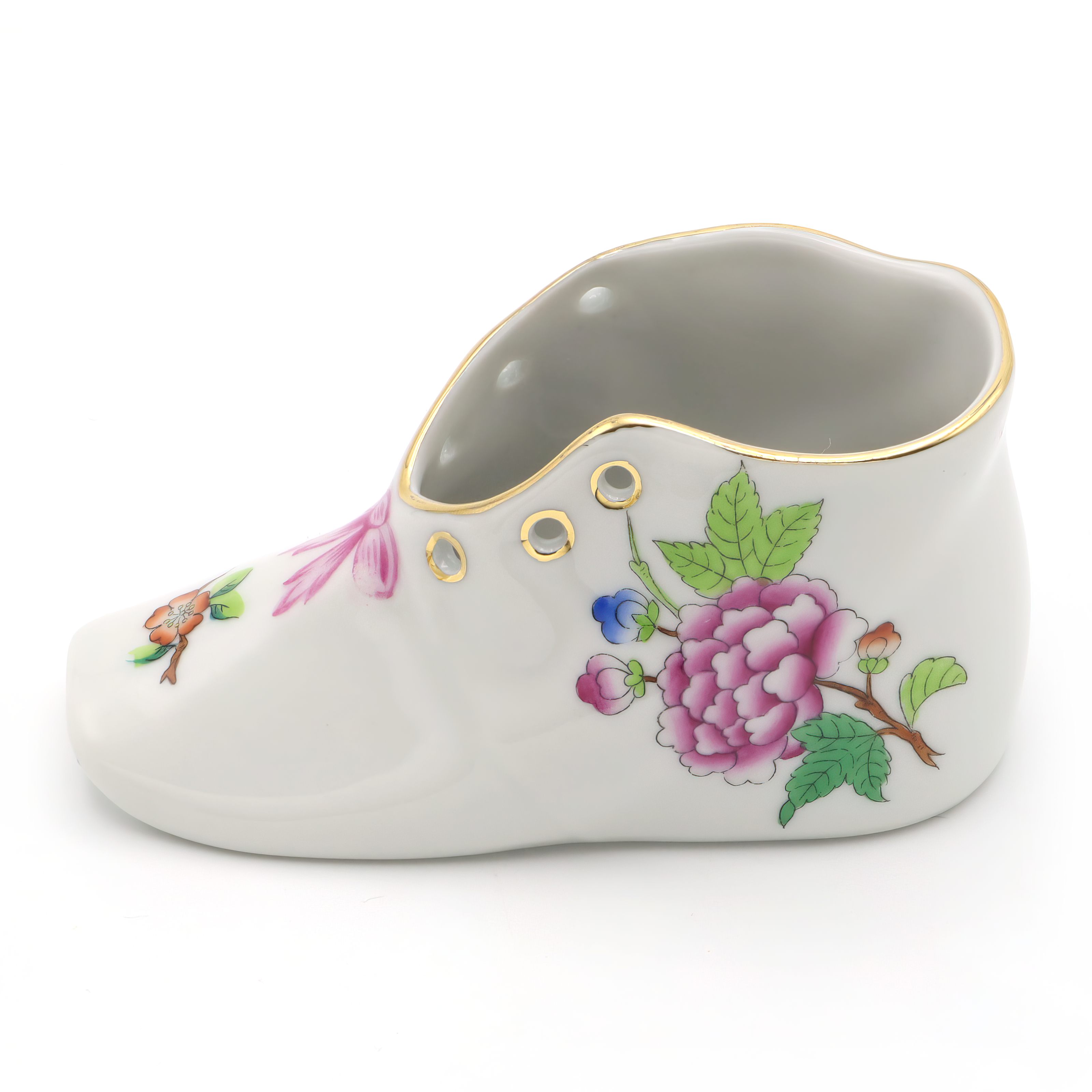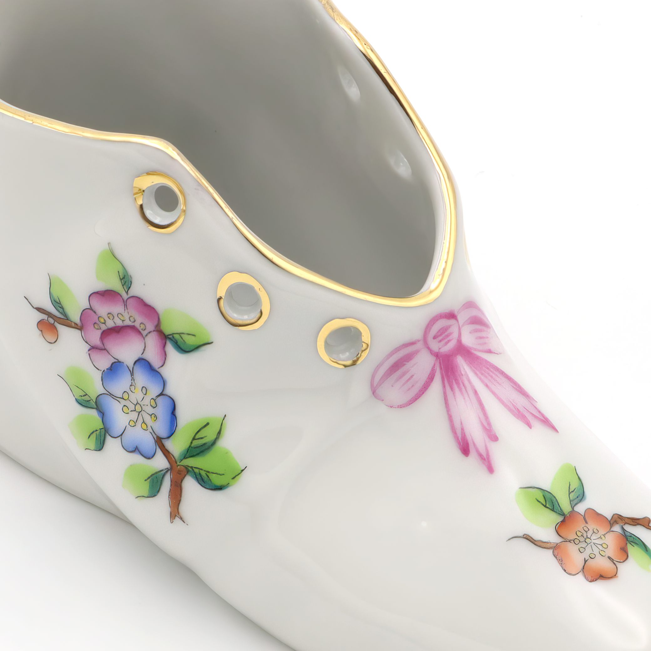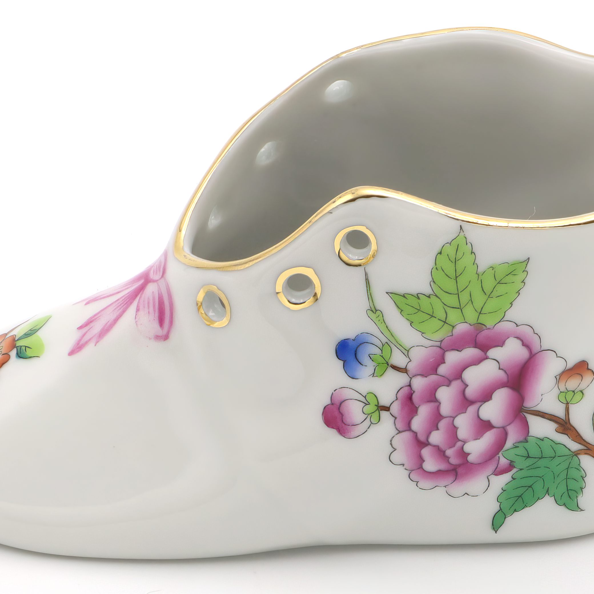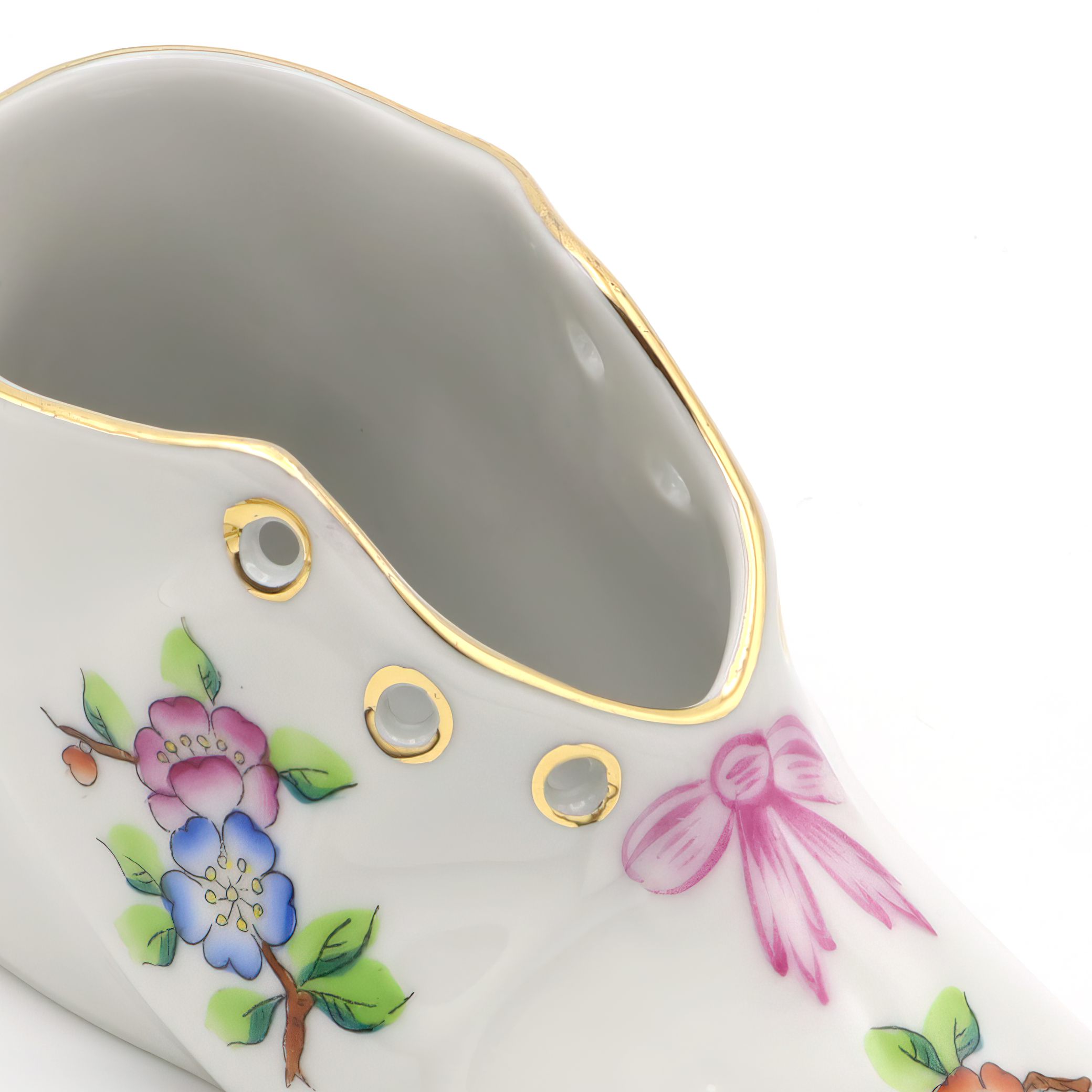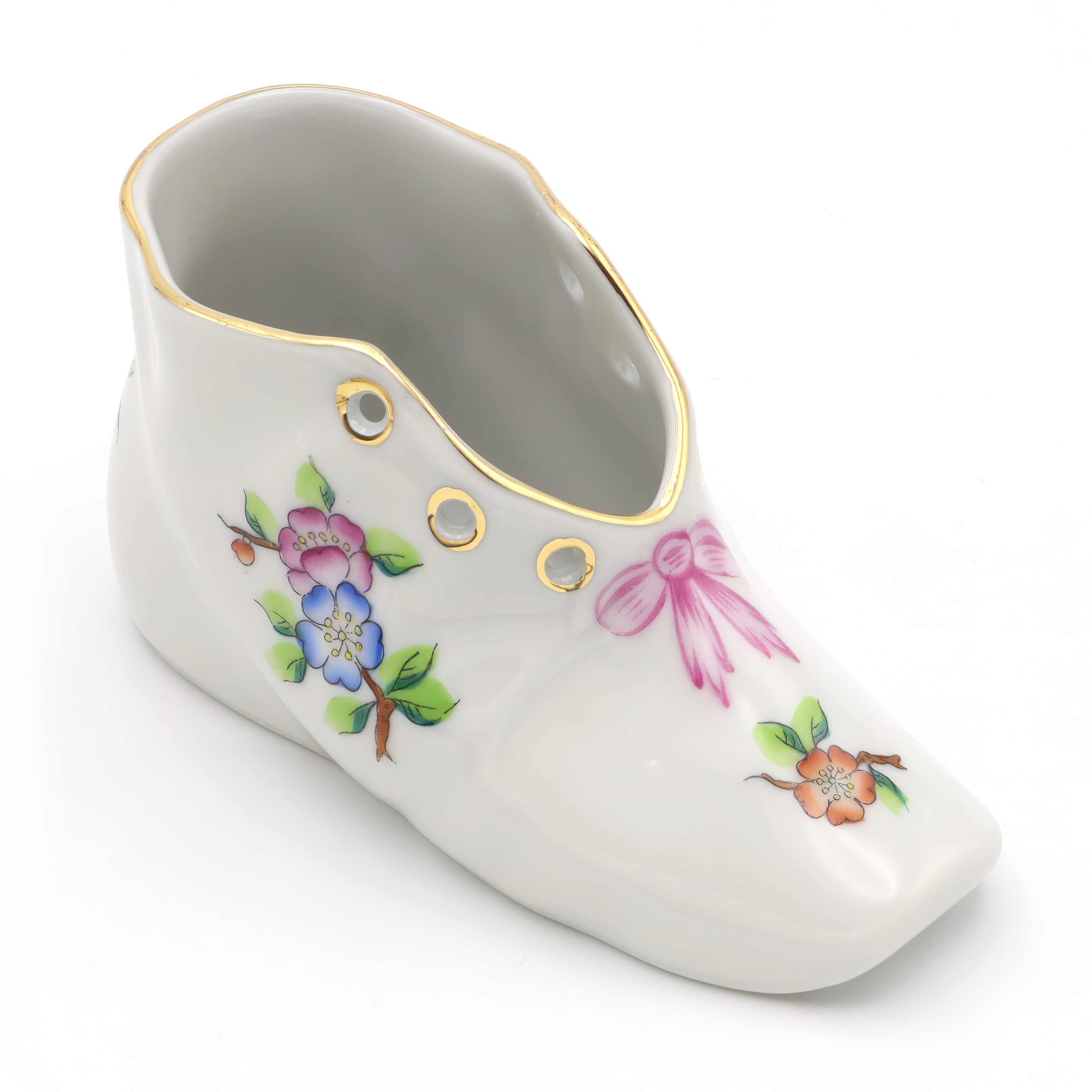 Herend Porcelain Baby Shoe With Floral Pattern - Vintage Collectible