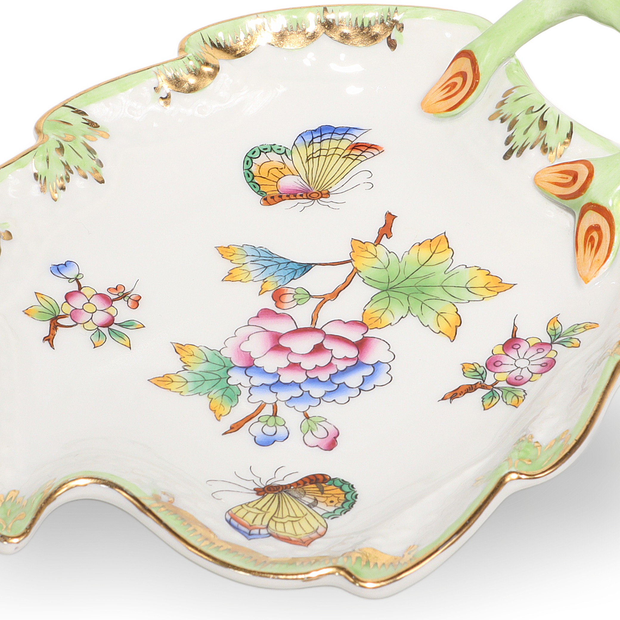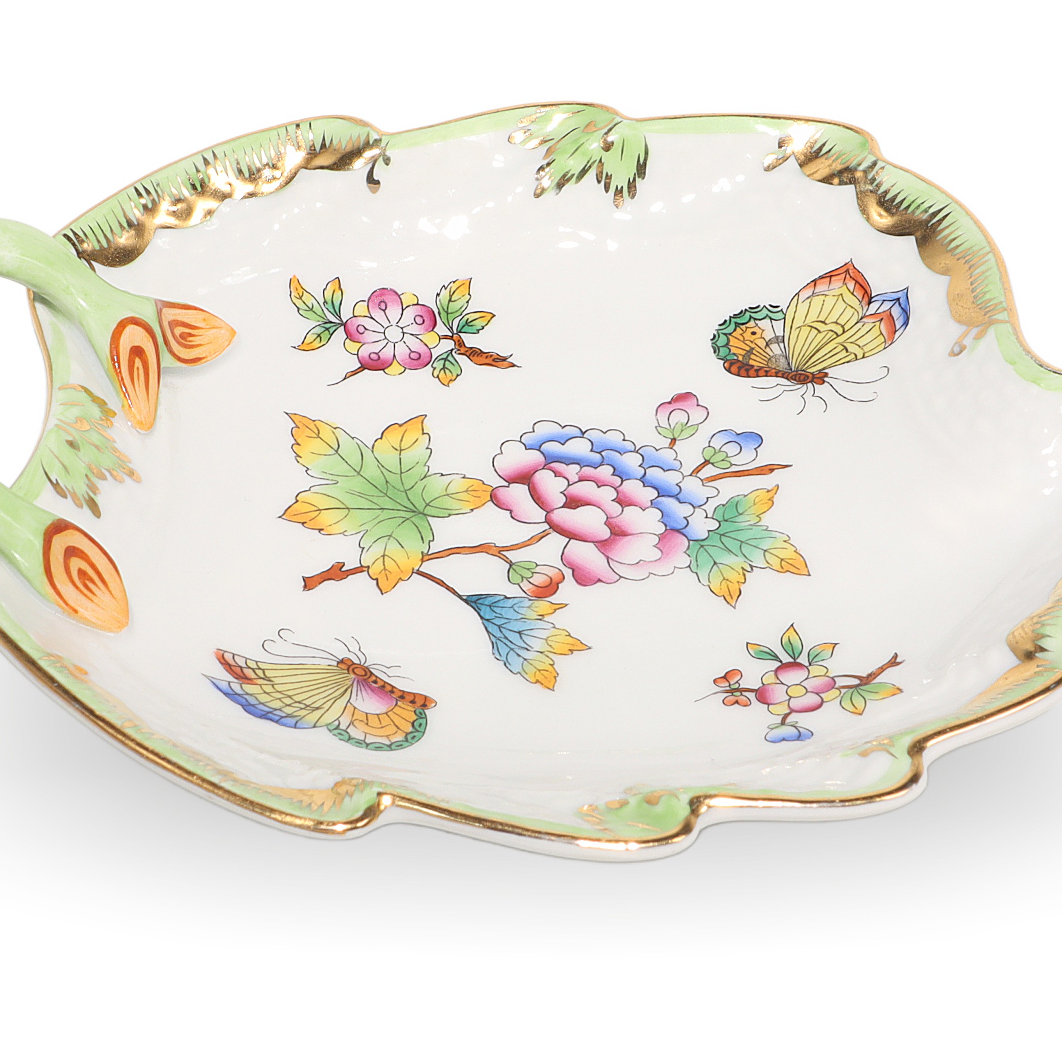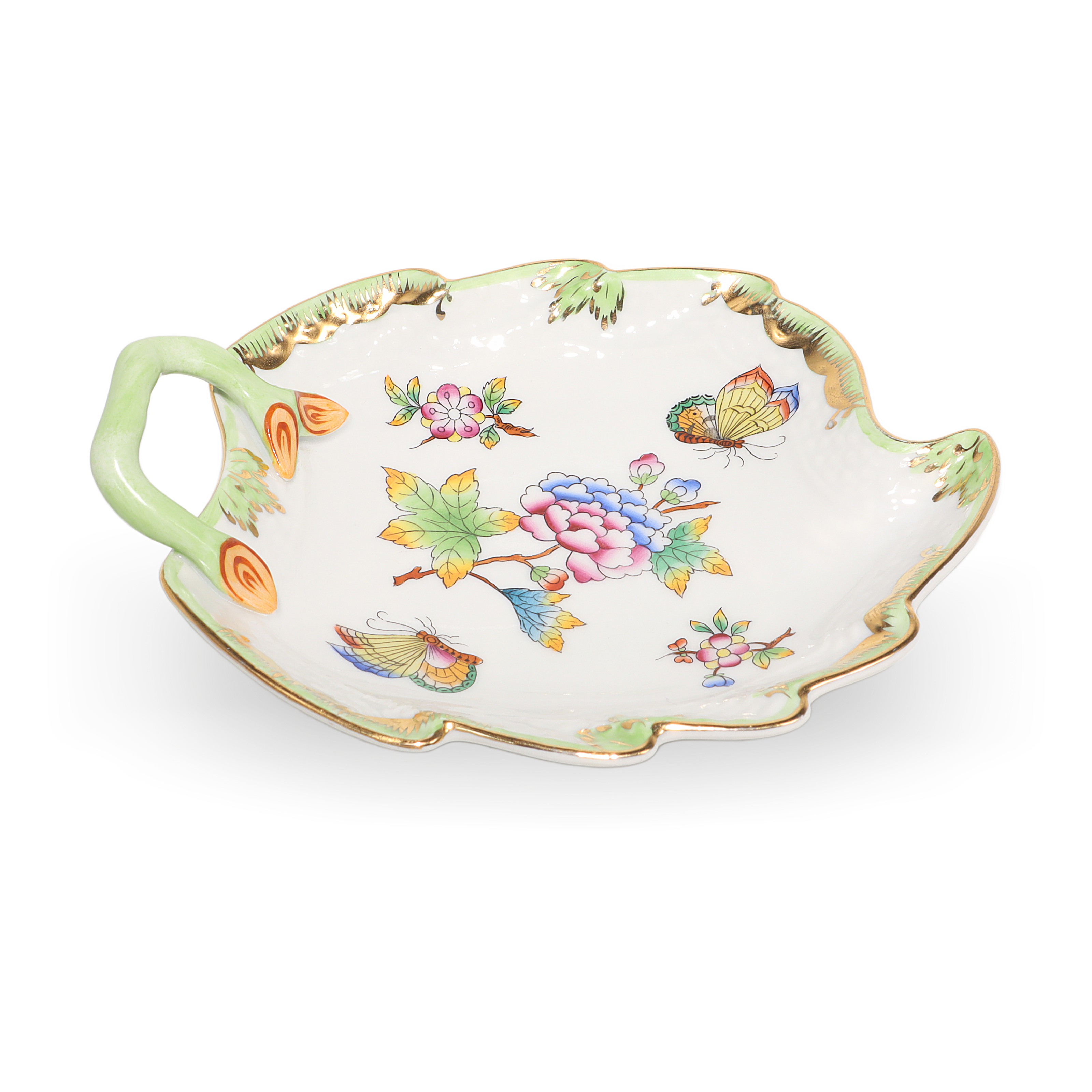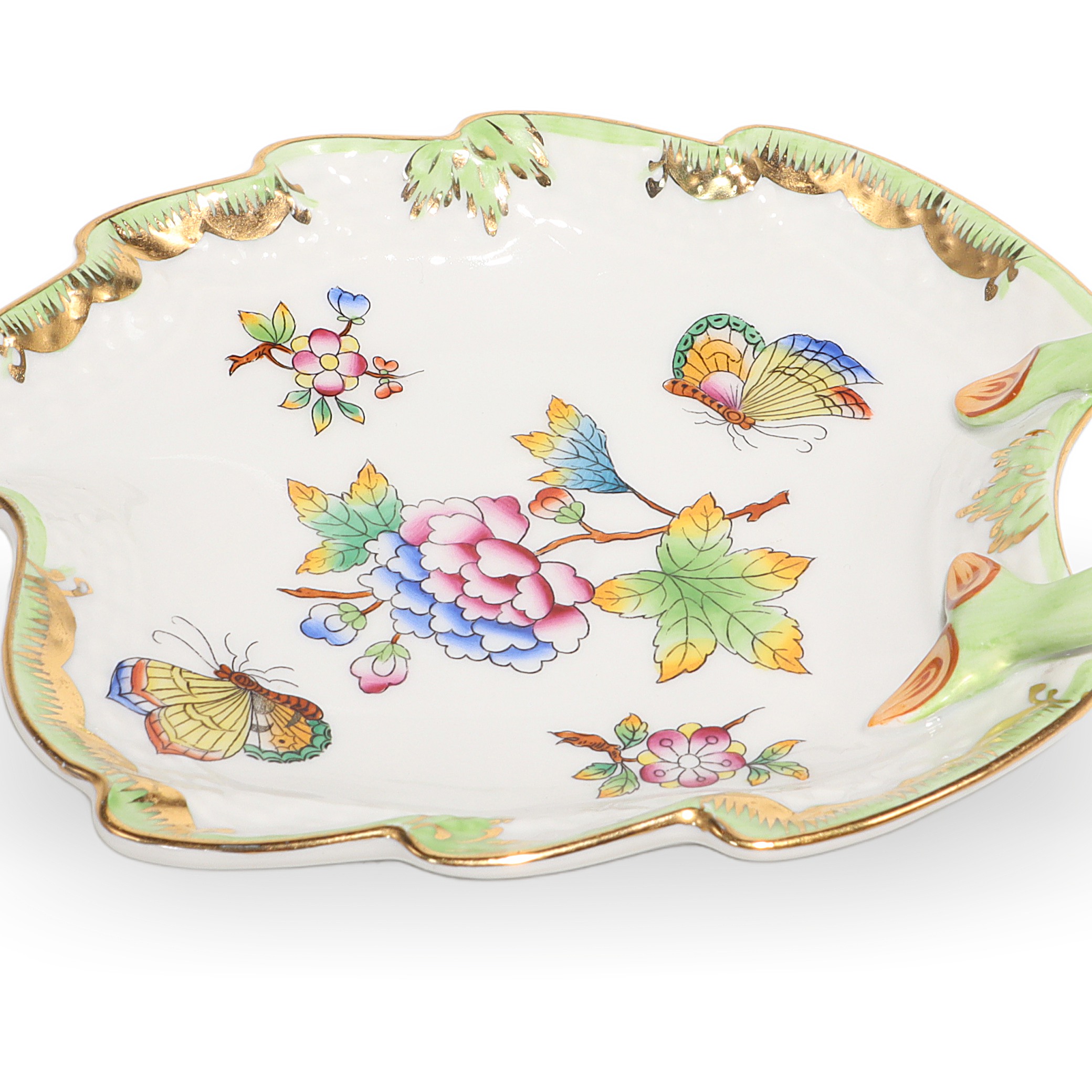 Herend Porcelain Leaf Dish - Queen Victoria Hand Painted Floral Design