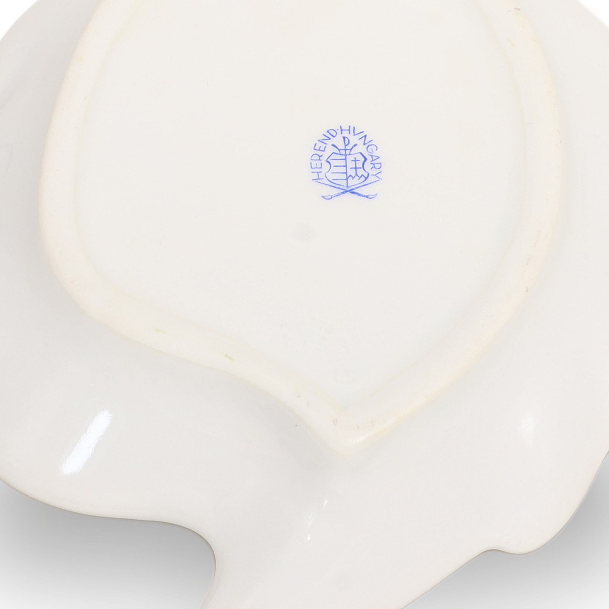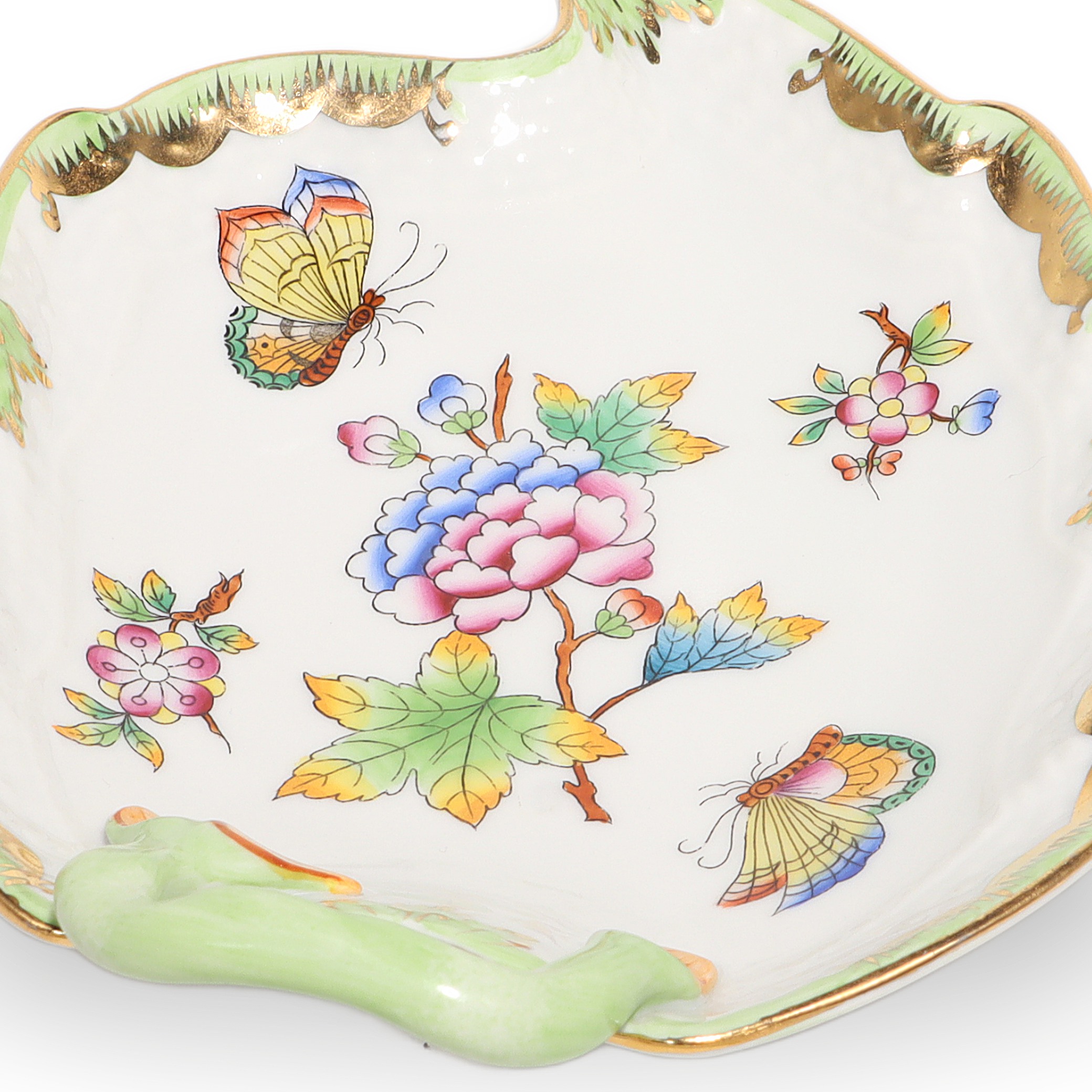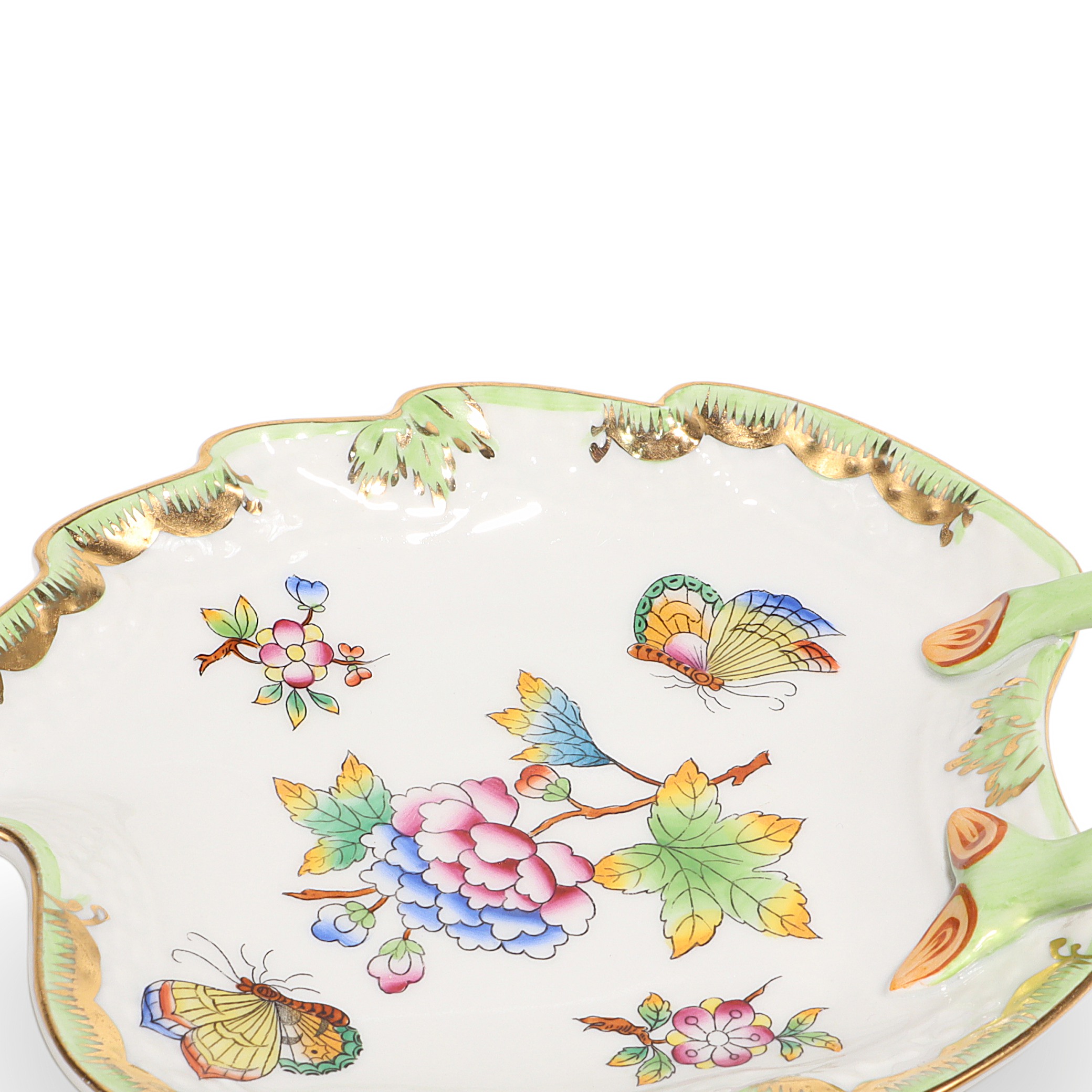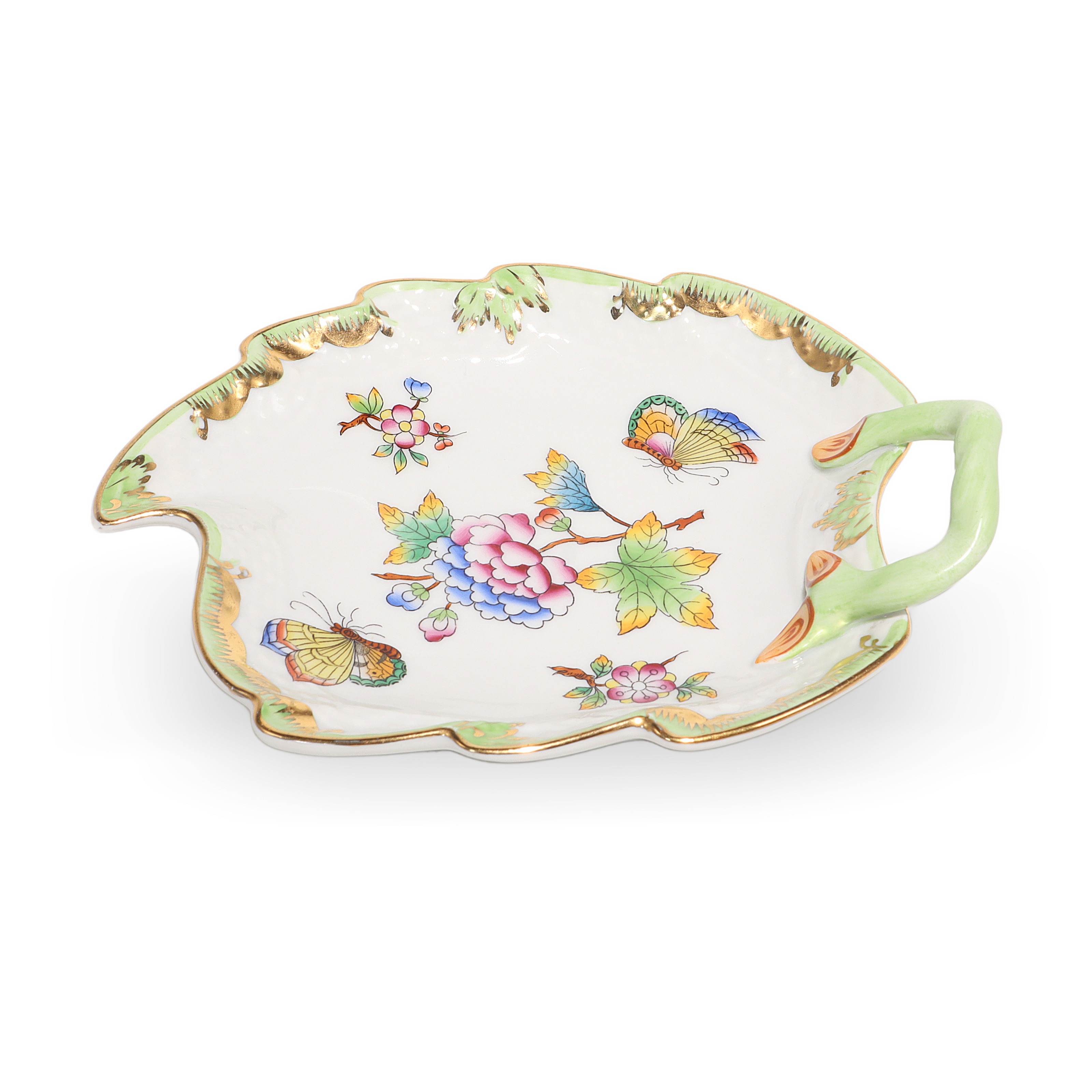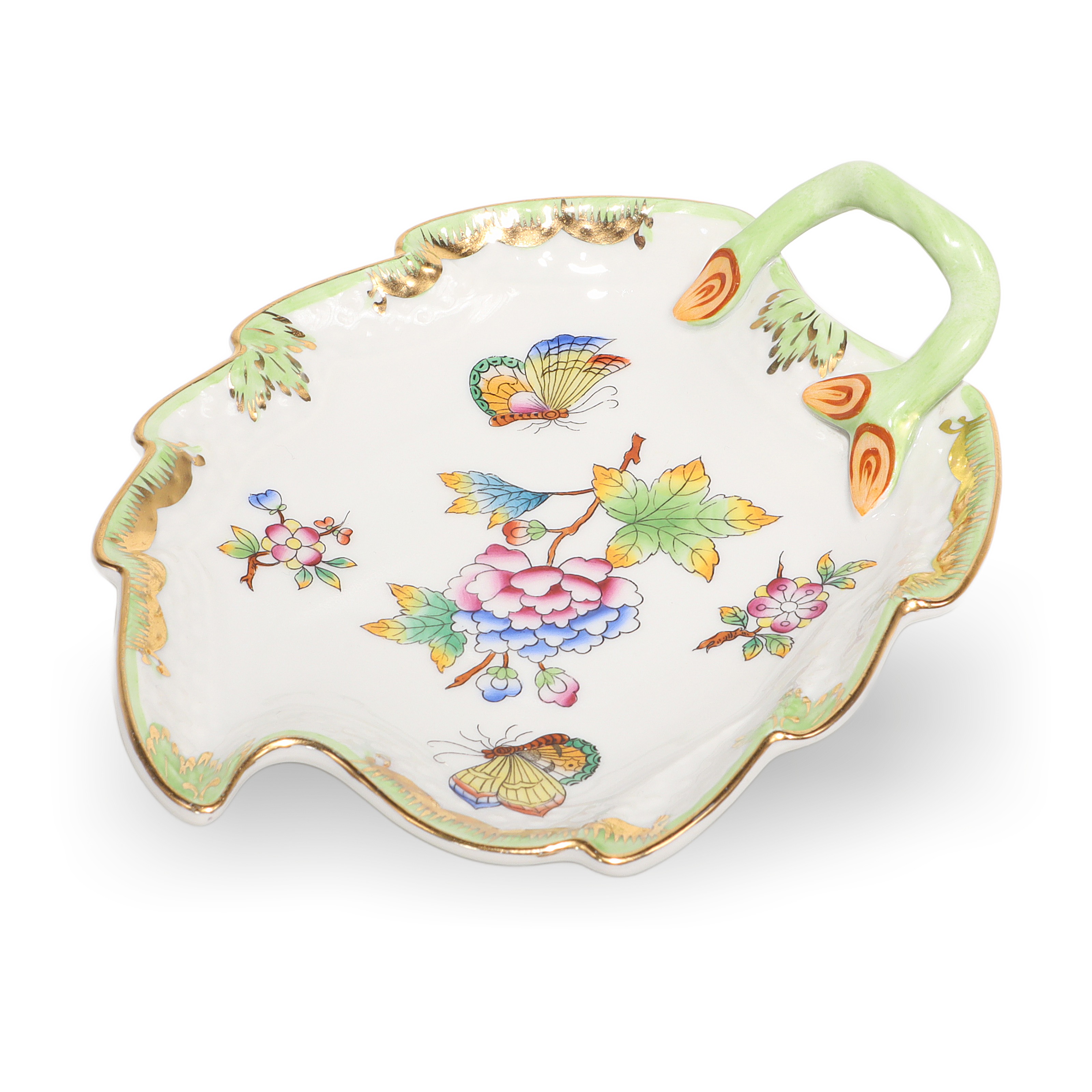 Herend Porcelain Leaf Dish - Queen Victoria Hand Painted Floral Design