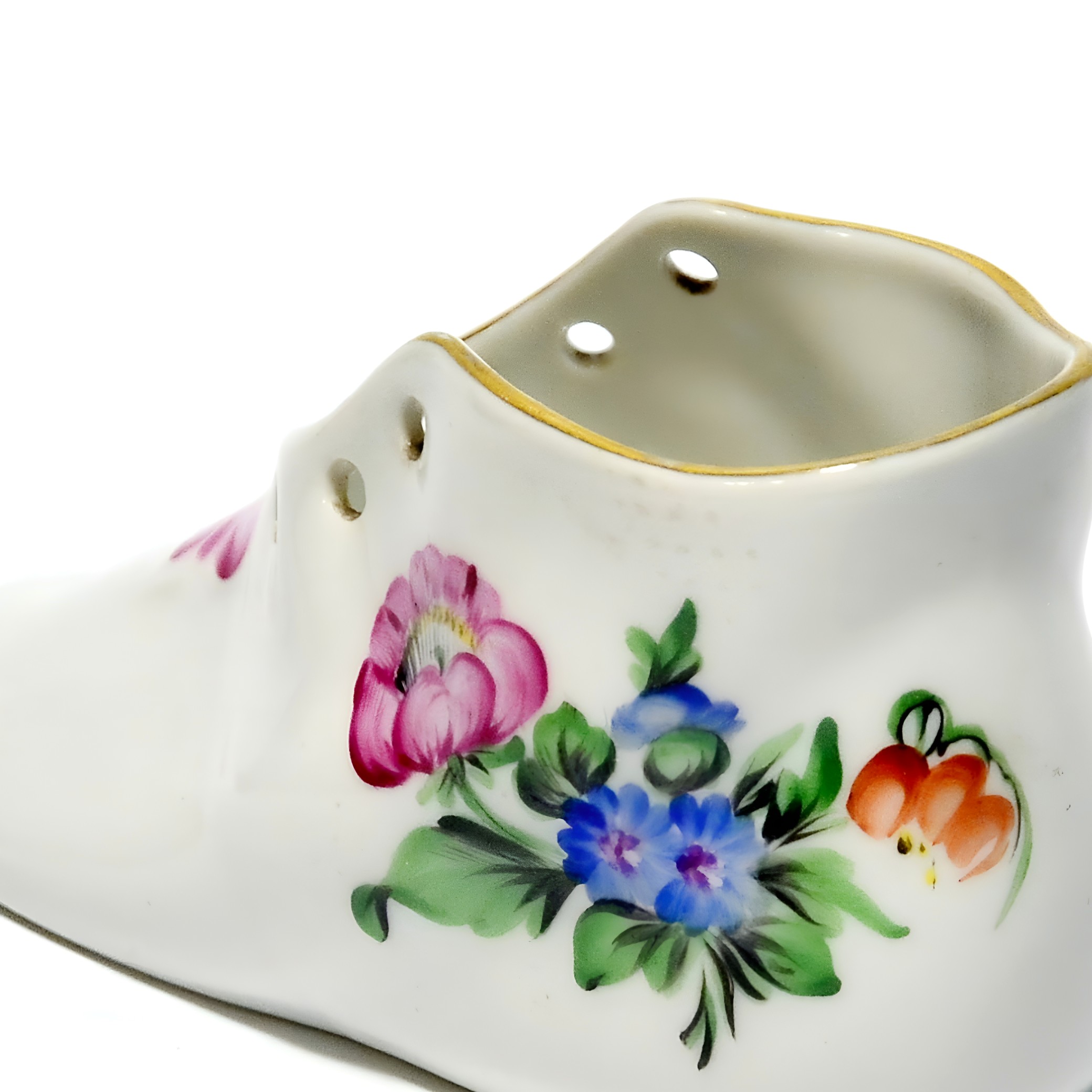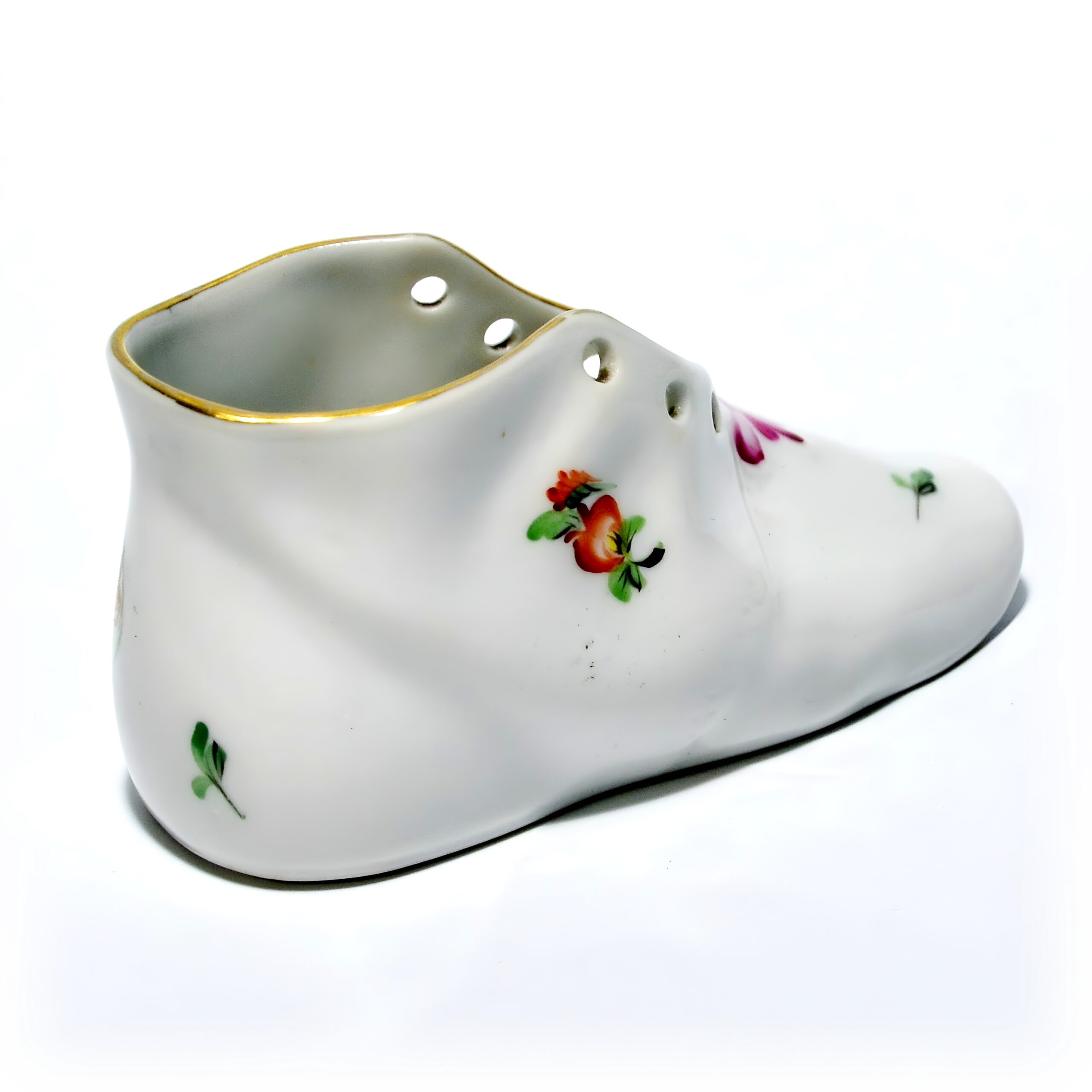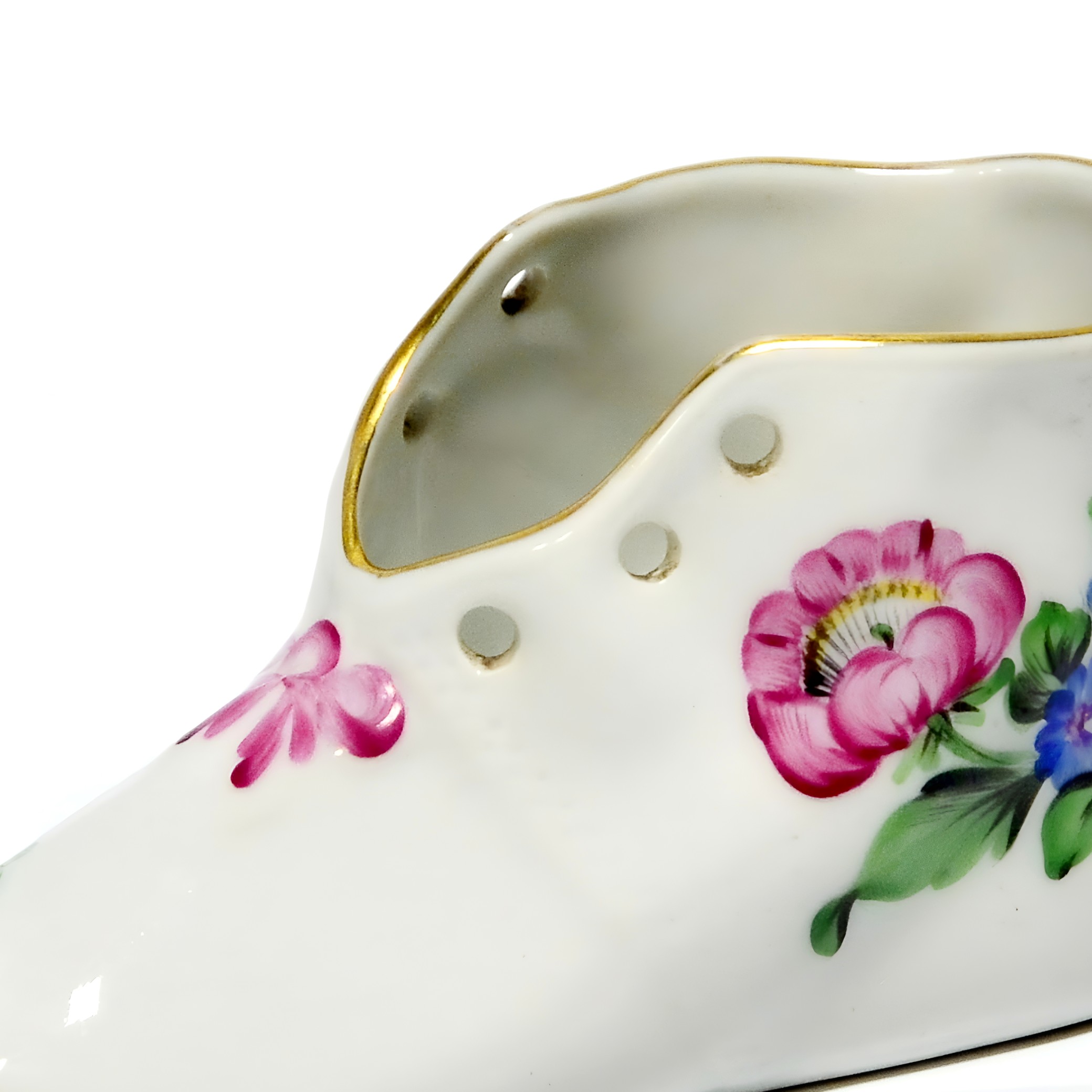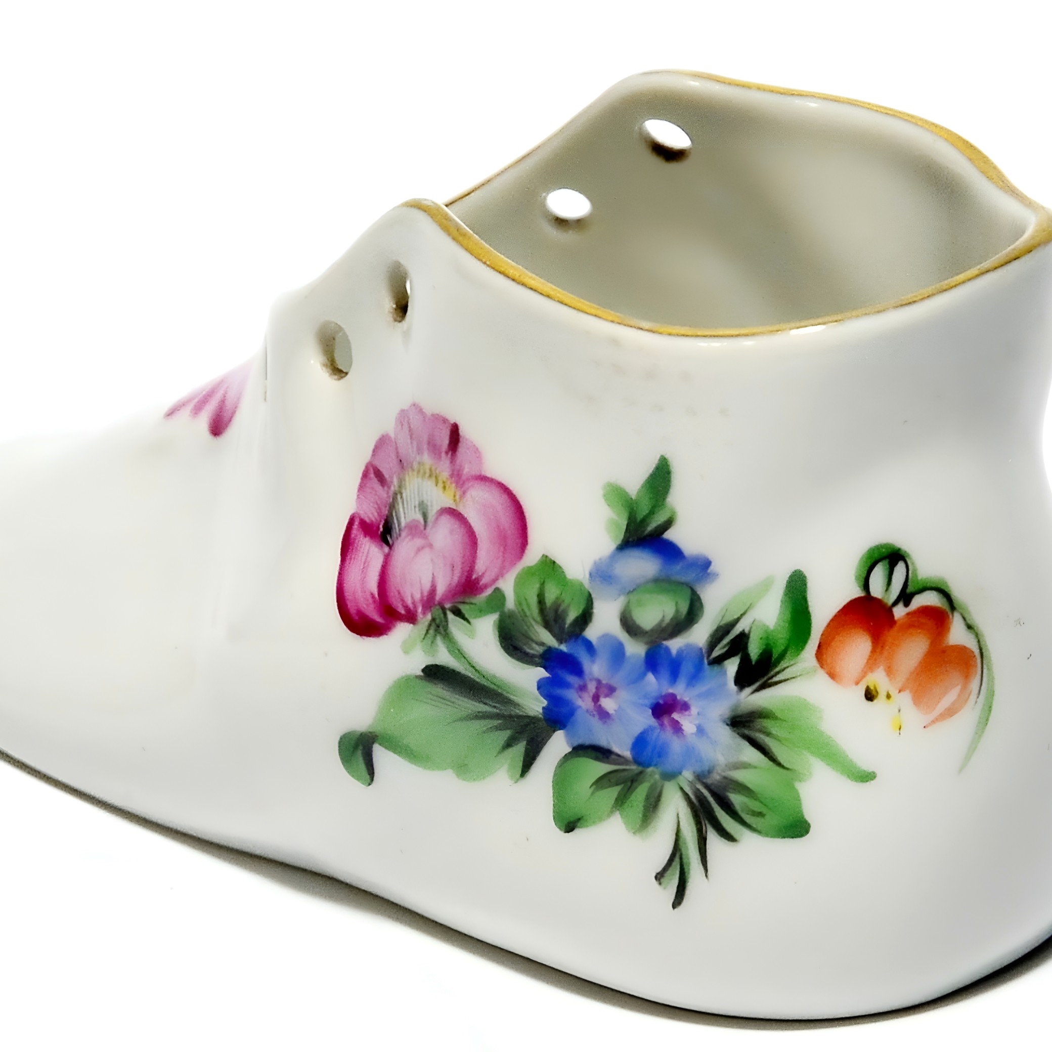 Herend is a renowned porcelain manufacturer from Hungary, established in 1826. The brand is celebrated for its intricate hand-painted designs and high-quality porcelain creations. Each piece is meticulously crafted by skilled artisans, often using techniques passed down through generations. Herend porcelain became particularly famous in the mid-19th century when it caught the attention of European royalty and aristocracy. The brand’s designs often feature nature-inspired motifs, such as animals, flowers, and intricate patterns, all of which require incredible attention to detail. Collectors worldwide seek Herend’s figurines, tableware, and home décor items for their elegance and timeless style. This little shoe figurine is a lovely example of the brand’s dedication to beauty and quality, capturing the essence of Herend’s artistic legacy. Whether you’re a seasoned collector or just starting, a Herend piece like this is a treasure that speaks to the heart and history of fine porcelain artistry.