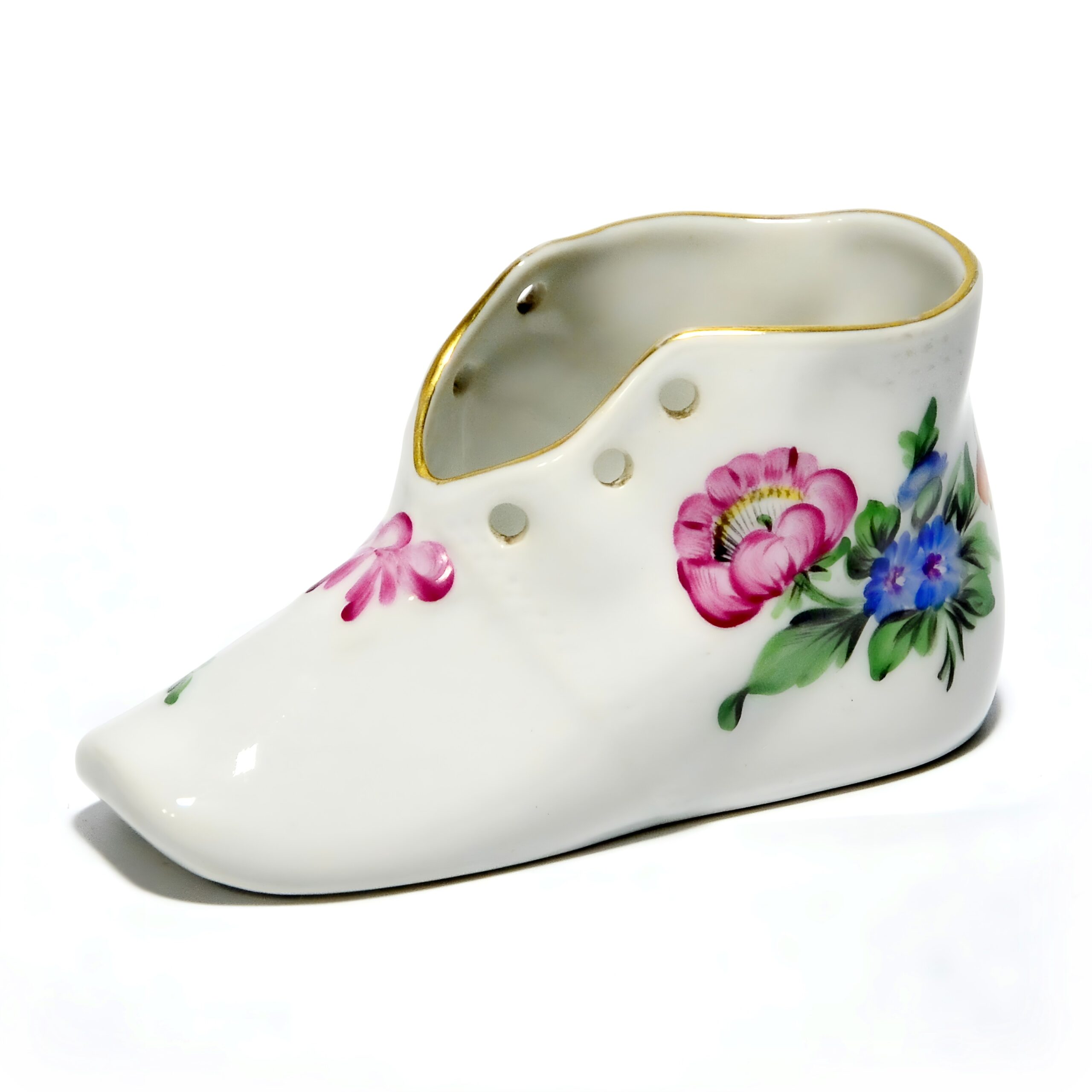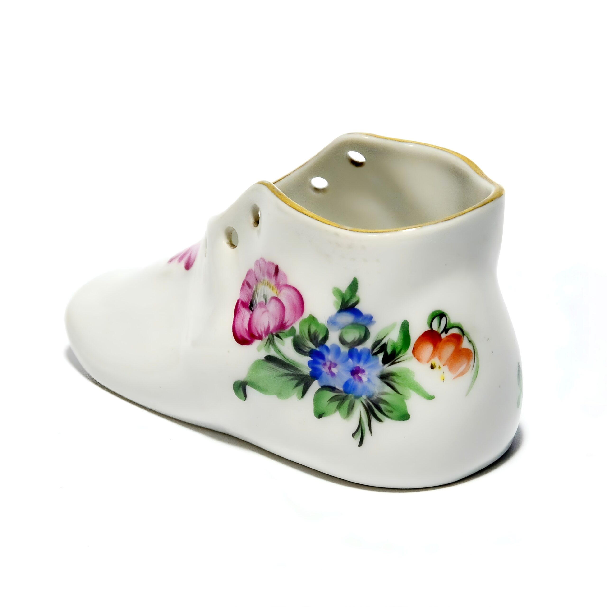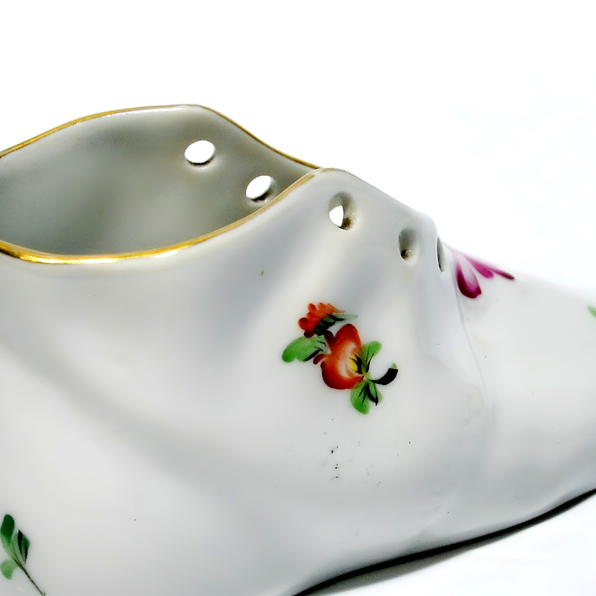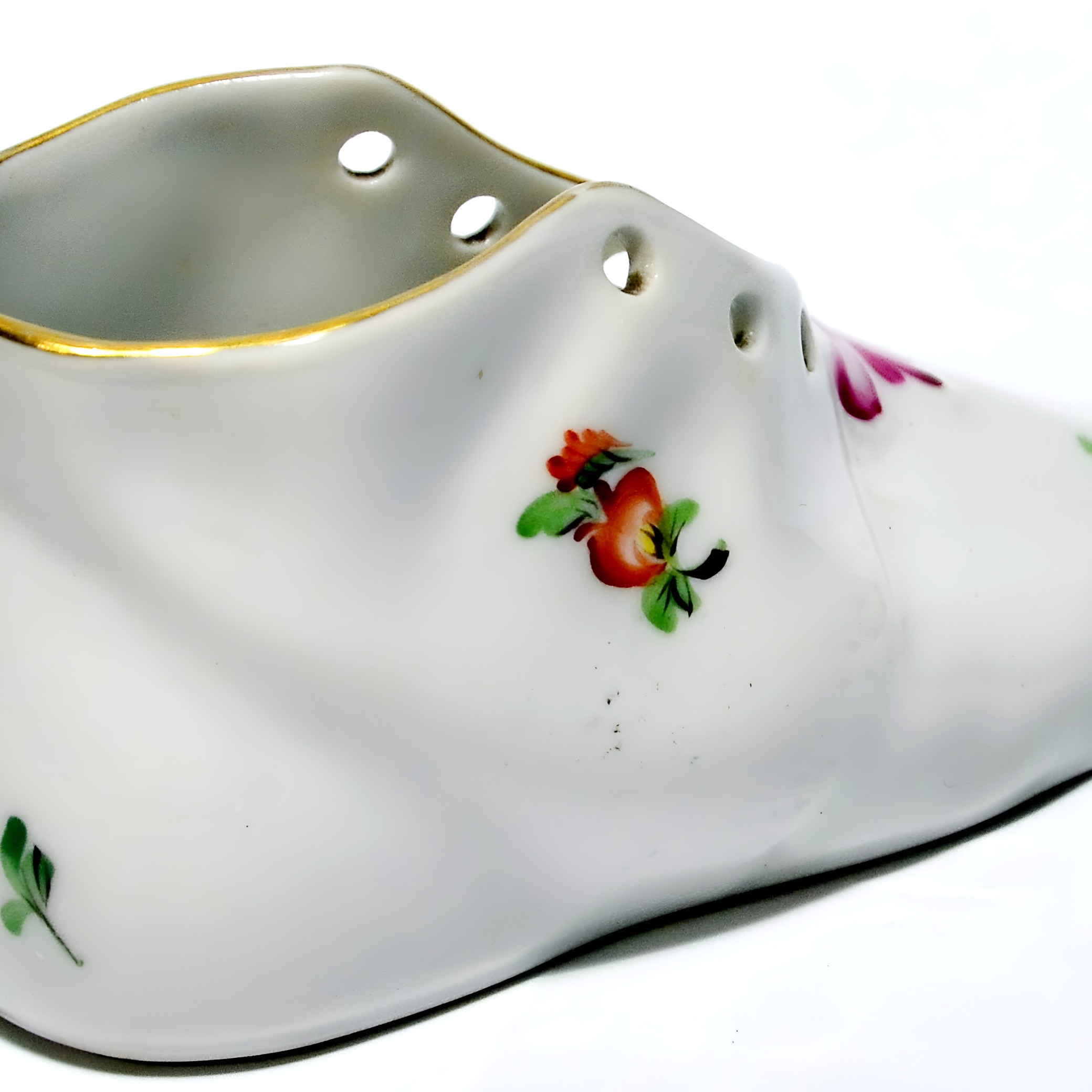 Herend is a renowned porcelain manufacturer from Hungary, established in 1826. The brand is celebrated for its intricate hand-painted designs and high-quality porcelain creations. Each piece is meticulously crafted by skilled artisans, often using techniques passed down through generations. Herend porcelain became particularly famous in the mid-19th century when it caught the attention of European royalty and aristocracy. The brand’s designs often feature nature-inspired motifs, such as animals, flowers, and intricate patterns, all of which require incredible attention to detail. Collectors worldwide seek Herend’s figurines, tableware, and home décor items for their elegance and timeless style. This little shoe figurine is a lovely example of the brand’s dedication to beauty and quality, capturing the essence of Herend’s artistic legacy. Whether you’re a seasoned collector or just starting, a Herend piece like this is a treasure that speaks to the heart and history of fine porcelain artistry.