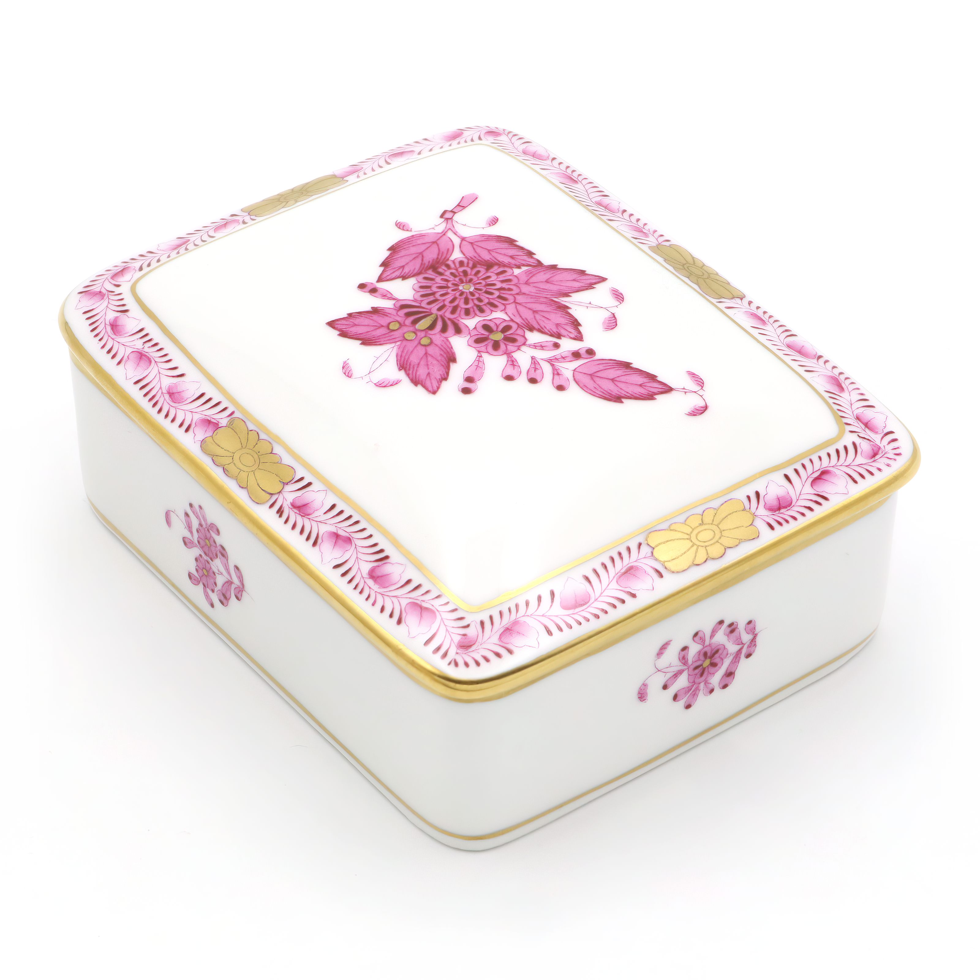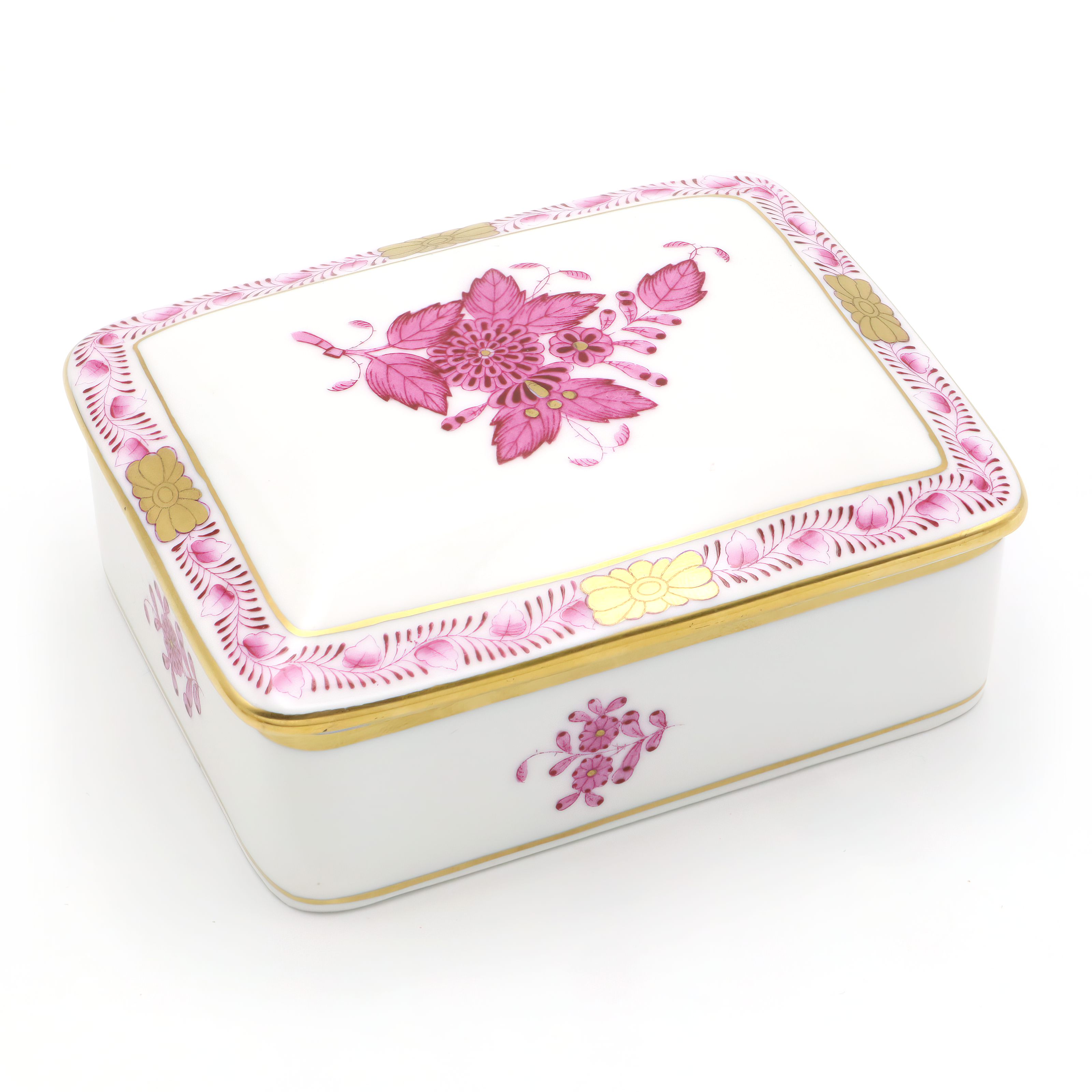 Herend Purpur Chinese Bouquet Large Jewelry Box - Porcelain Trinket Box