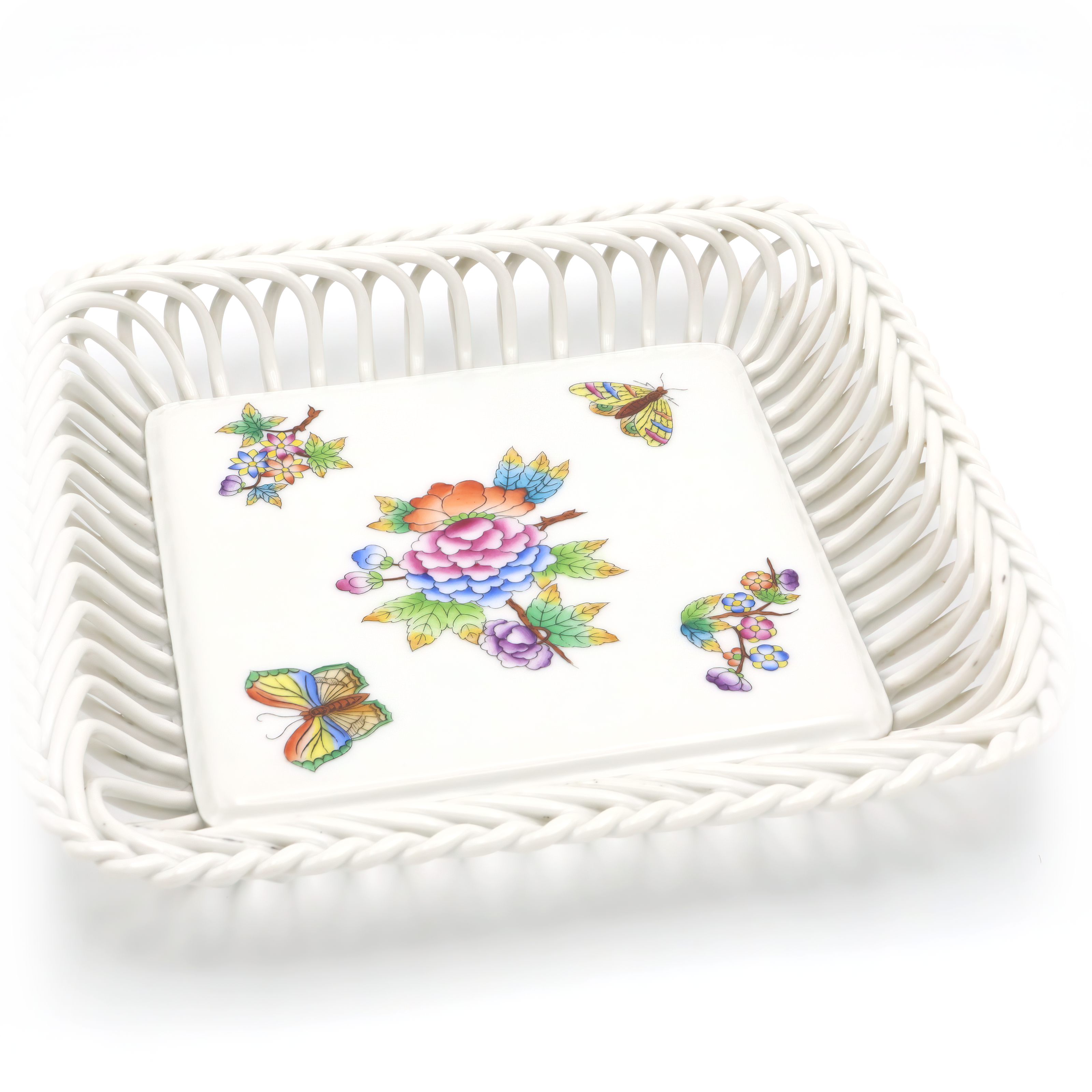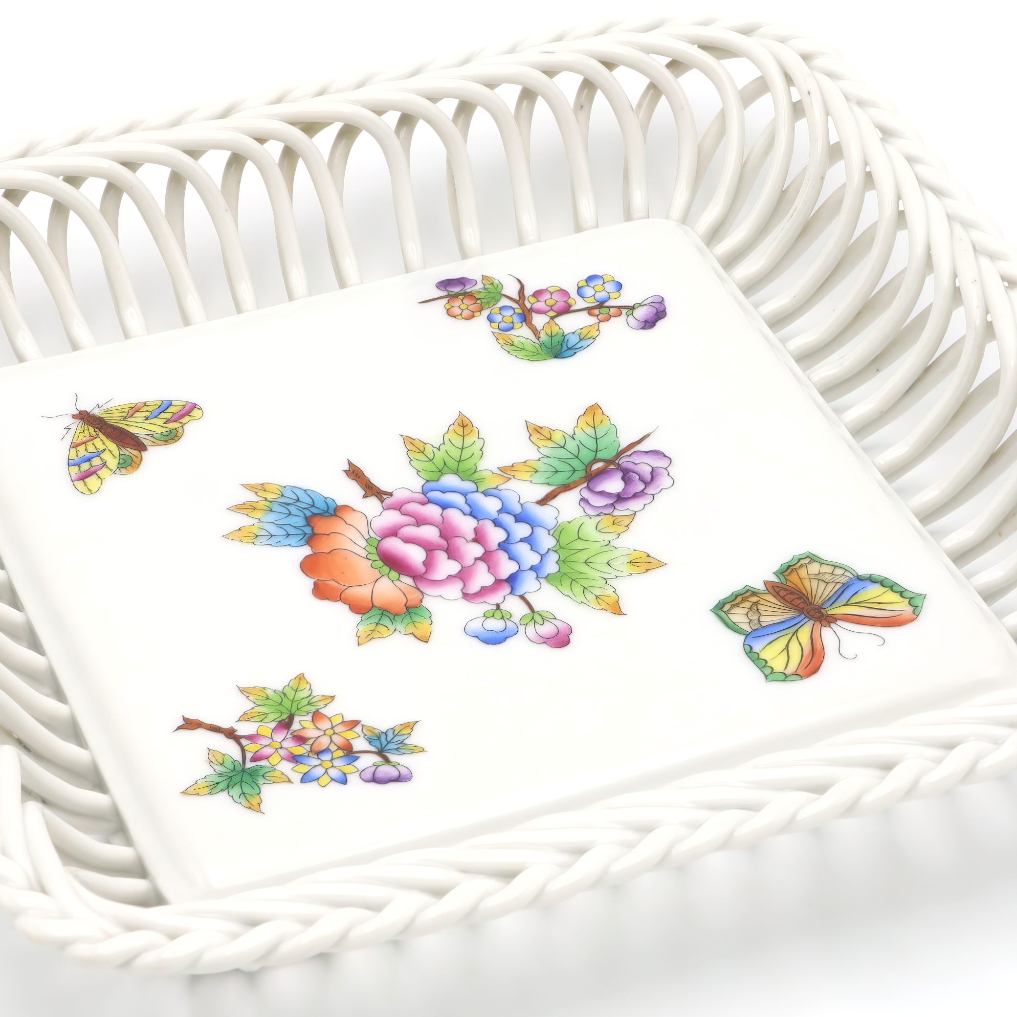 This beautiful piece is a Herend Queen Victoria open weave basket, crafted around 1960. Measuring just about 1.5 inches in height and 7.5 inches in…