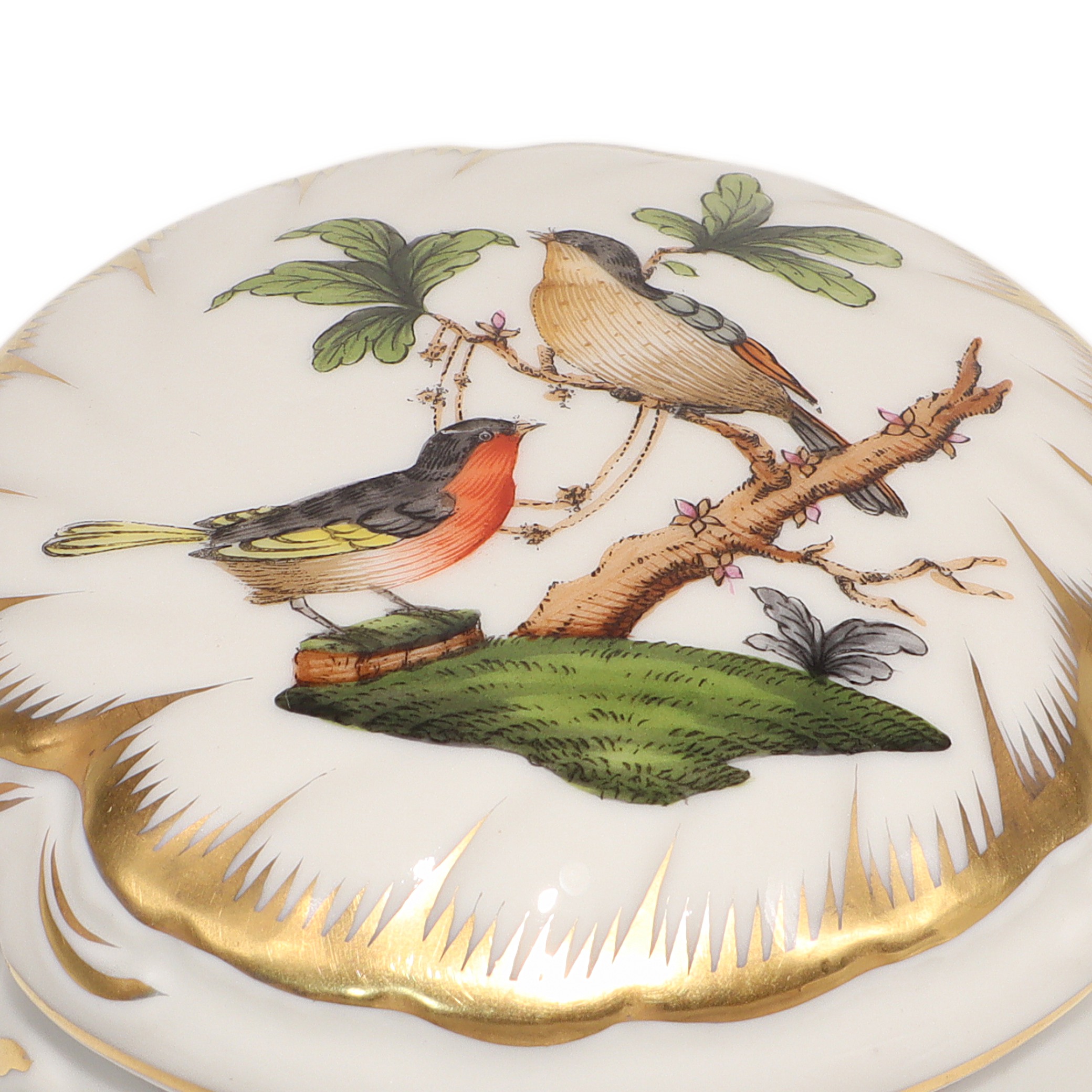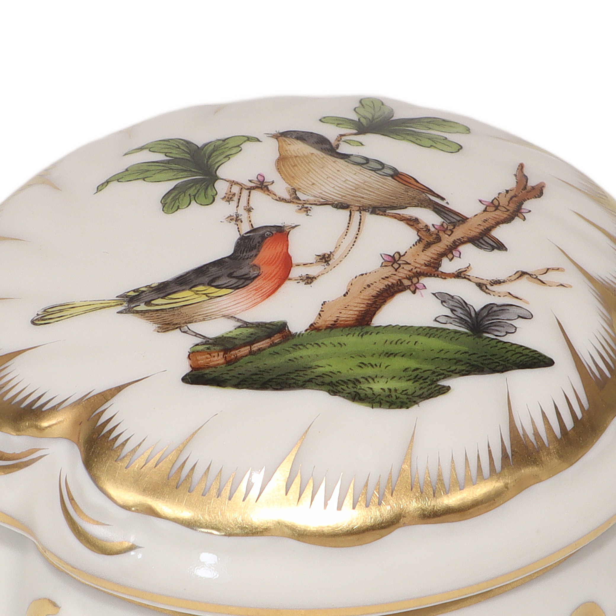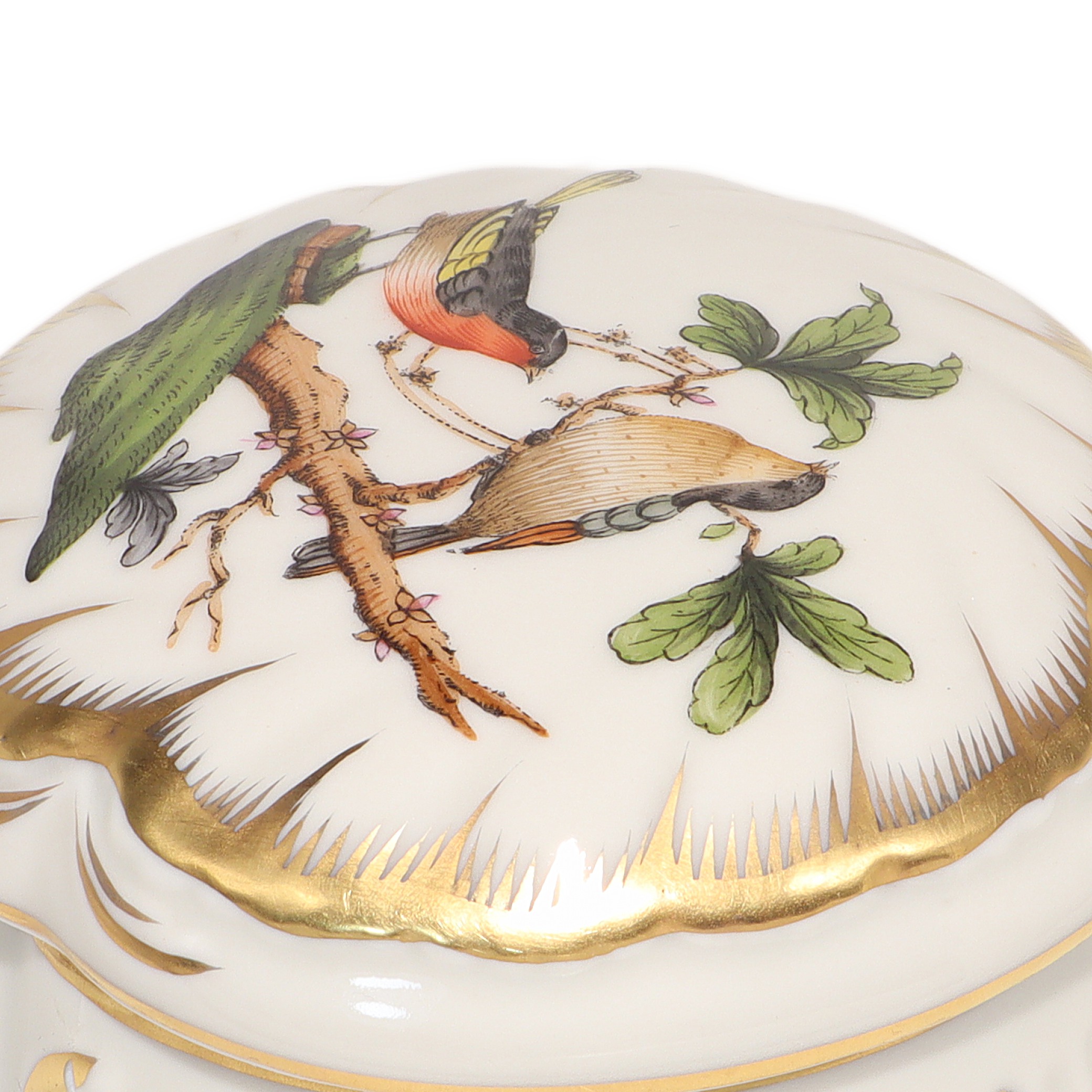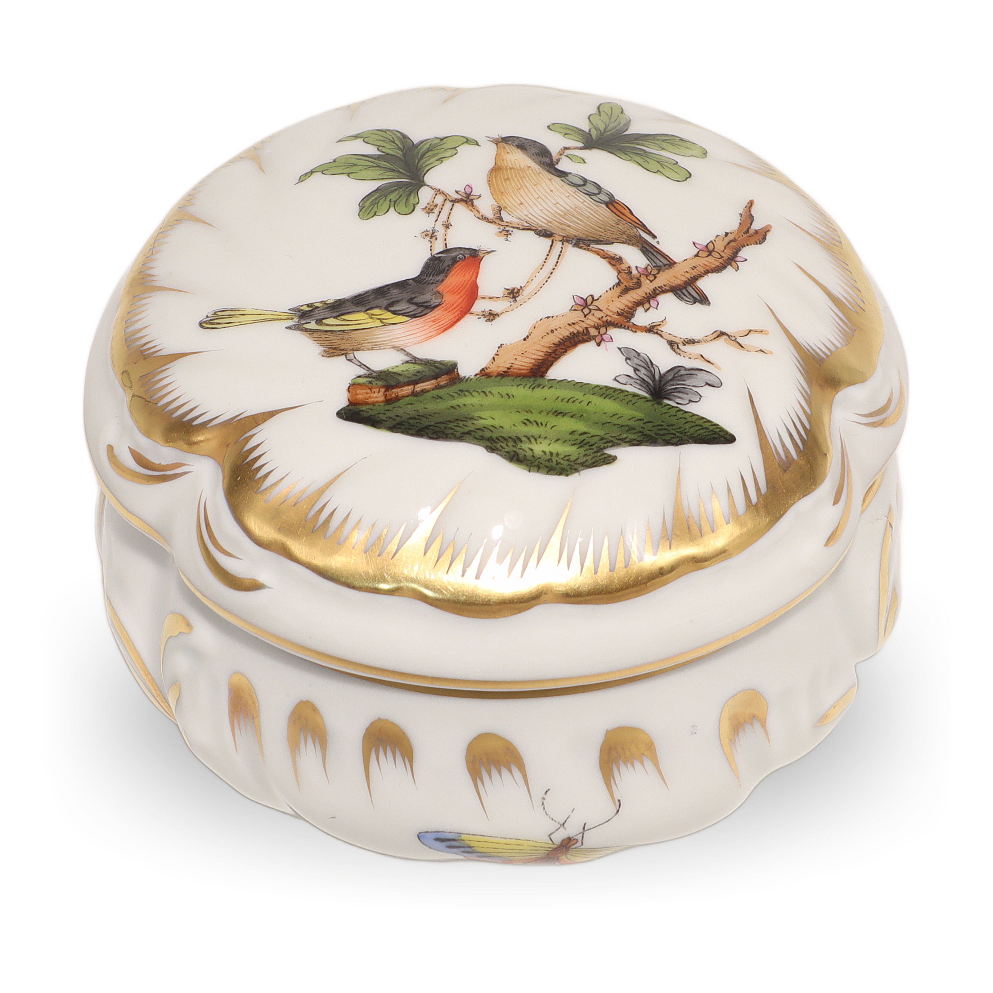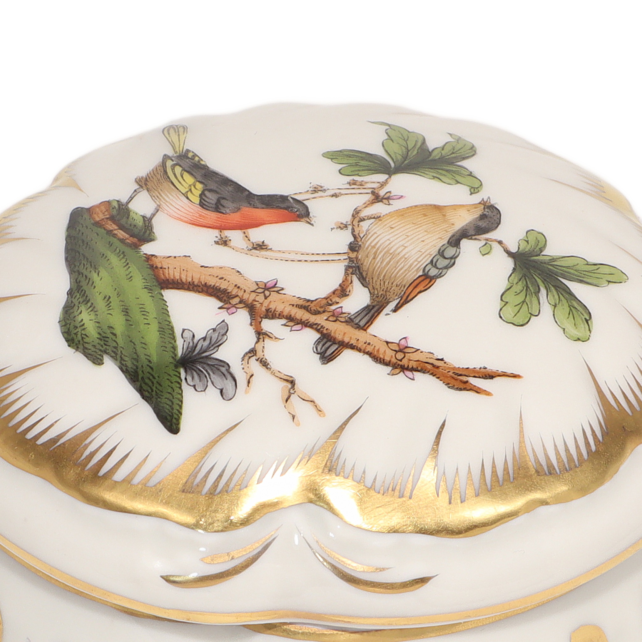 Herend Rothschild Trinket Box - Hand Painted Porcelain Bird Motif Box