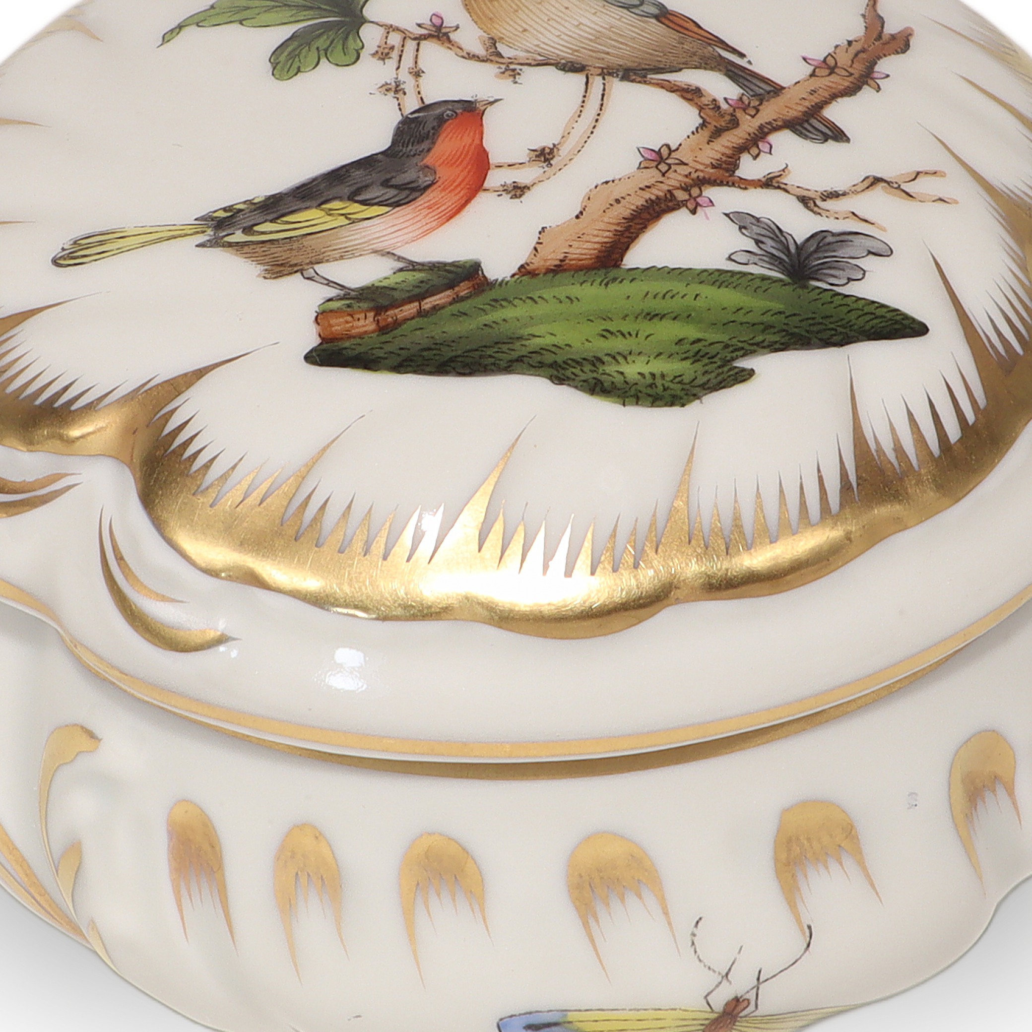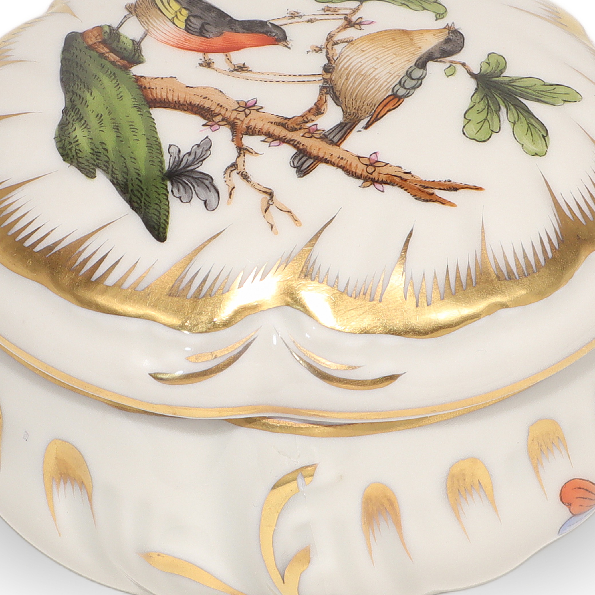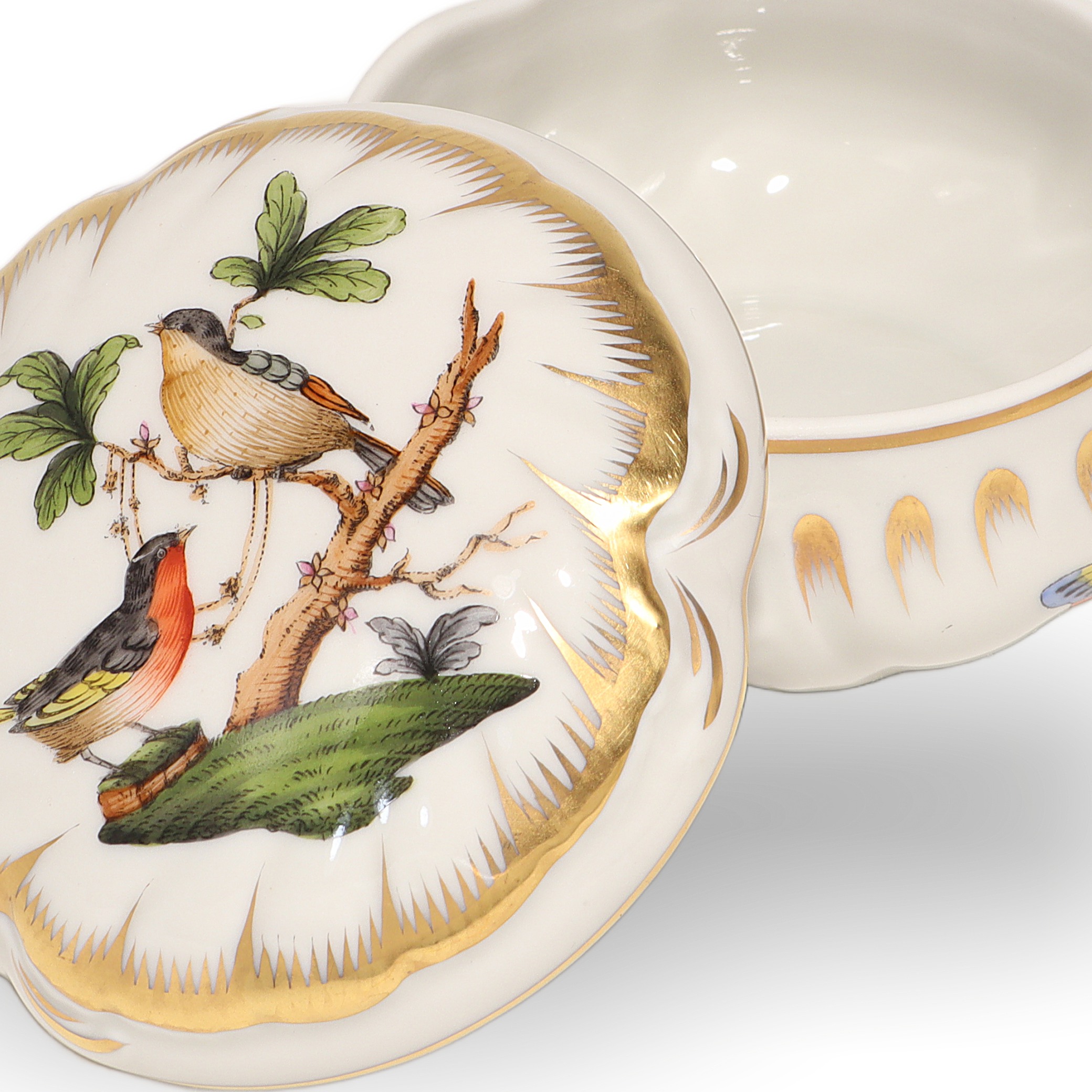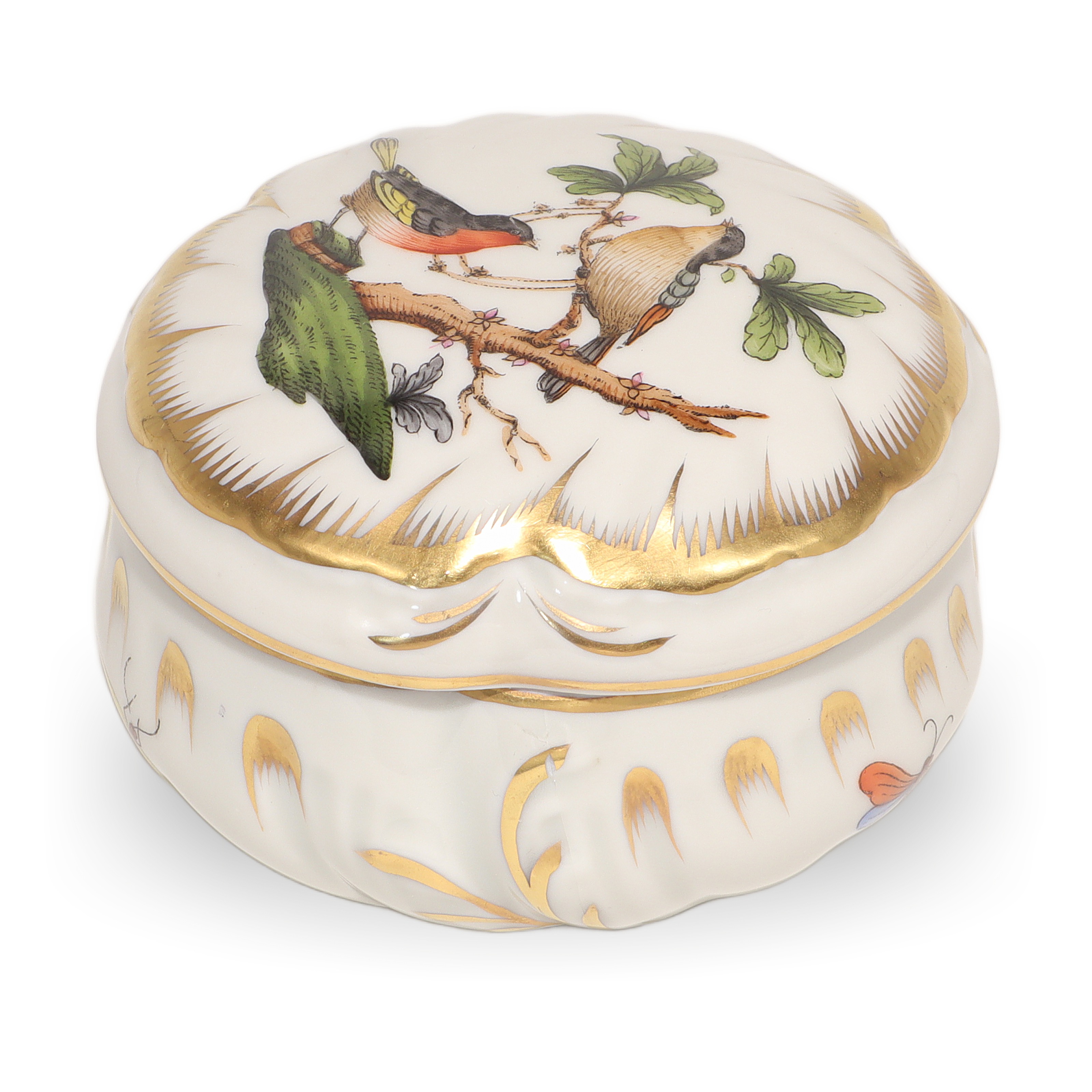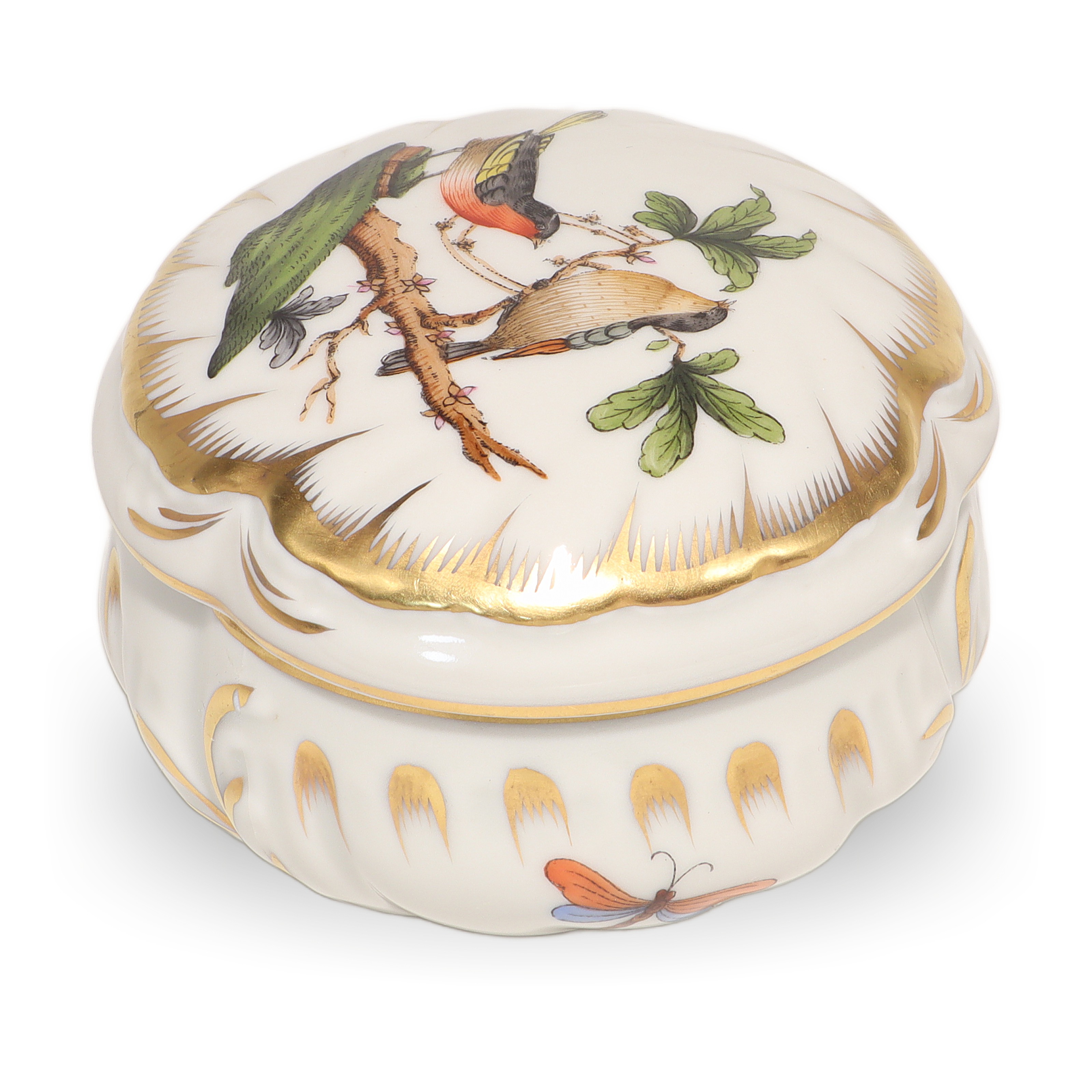 Herend Rothschild Trinket Box - Hand Painted Porcelain Bird Motif Box
