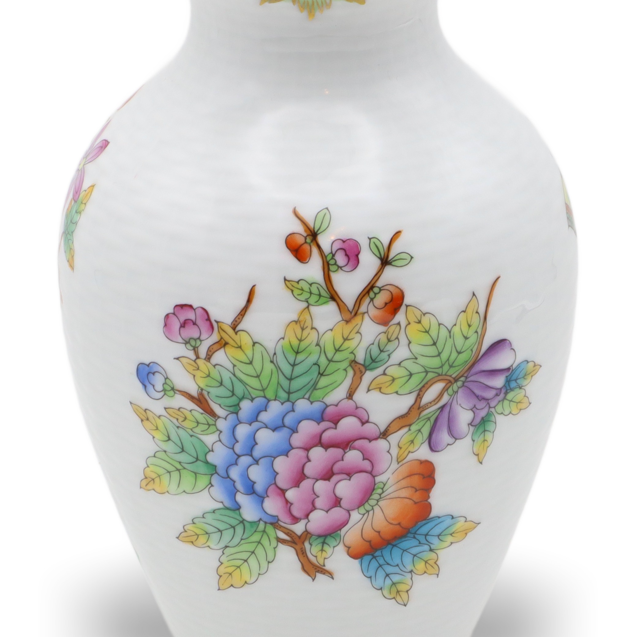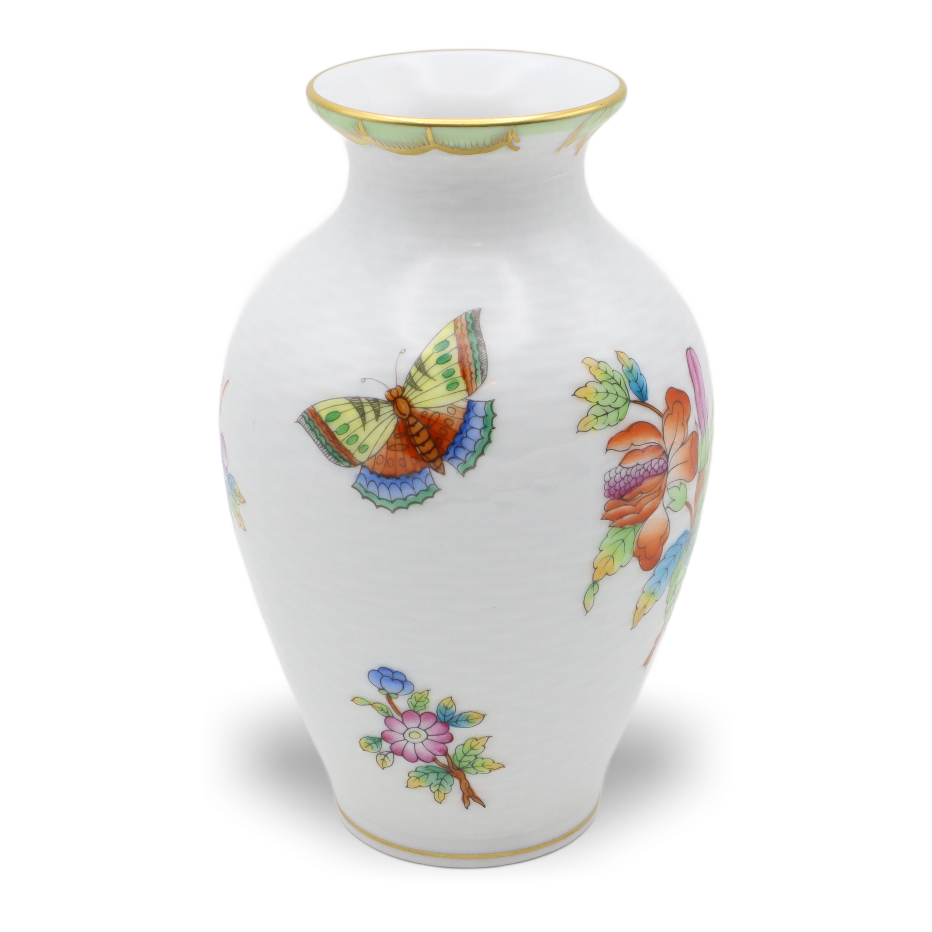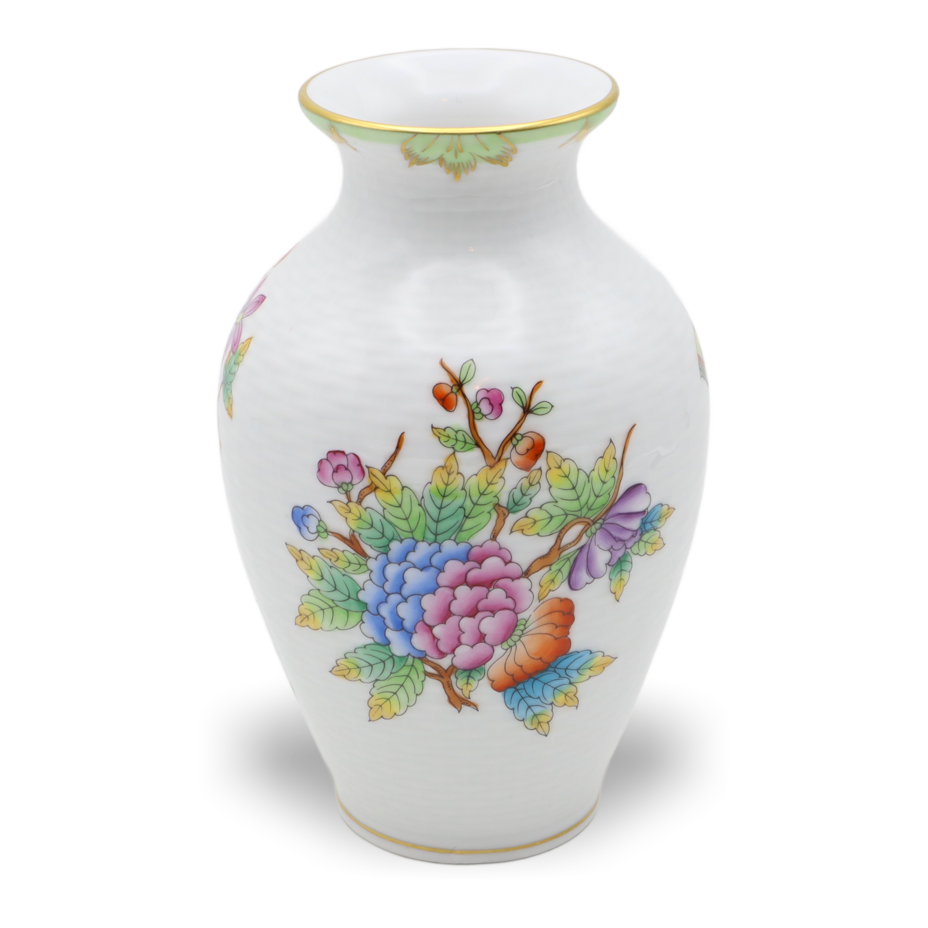 Herend is a legendary Hungarian porcelain manufacturer, famous all around the globe for their detailed, hand-painted designs and incredible attention to detail. The “Queen Victoria VBO” pattern, like the one on this vase, first turned heads way back in 1851 at London’s Great Exhibition, and Queen Victoria herself fell in love with it—hence the name. What makes this line extra special is the unique basket weave texture in the porcelain, a subtle raised pattern that gives each item a little extra depth. Every Herend piece is made and painted by hand, so even within the same collection, no two are exactly alike. Collectors and decorators value these pieces not just for their beauty, but for the rich history and exceptional skill behind each one. Finding an example from the 1970s in such pristine condition is pretty rare, and it’s a snapshot of a time when porcelain craft was taken very seriously.