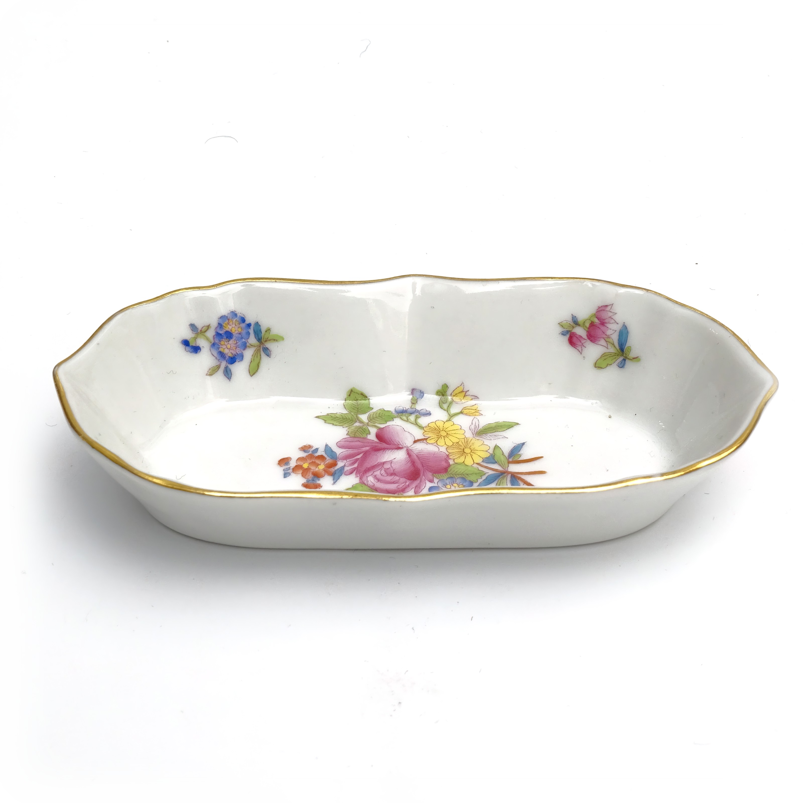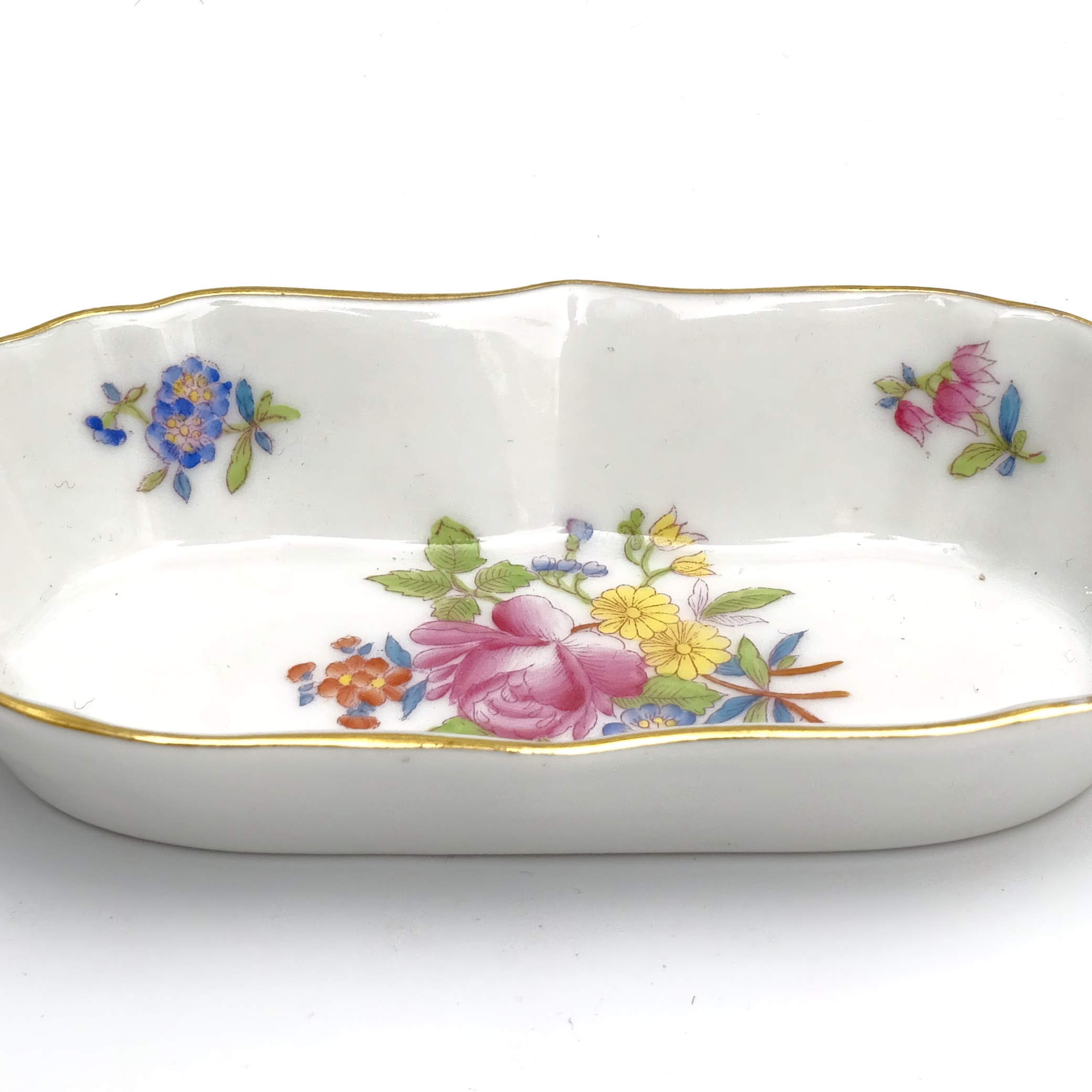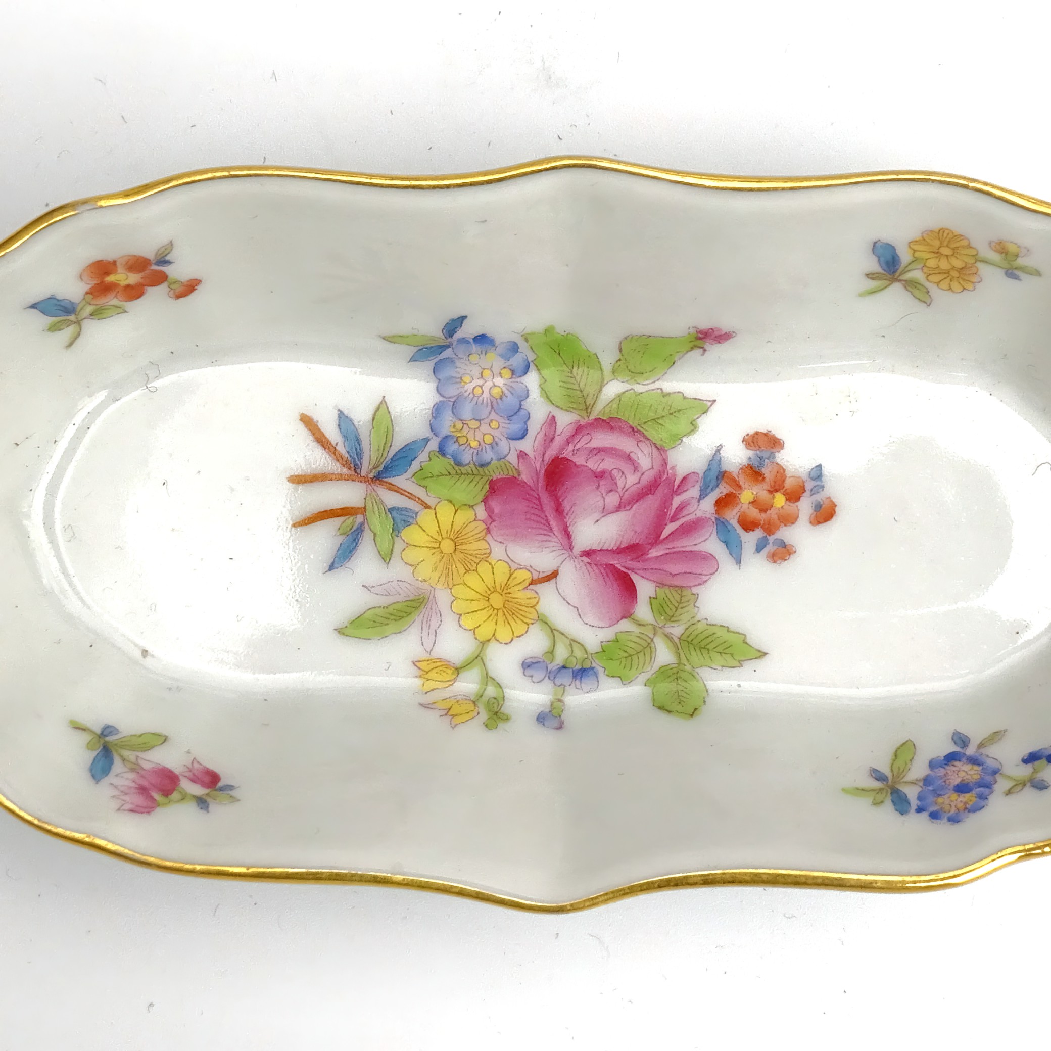 The trinket tray is part of a long tradition of Herend’s dedication to artistry, combining centuries-old techniques with stunning designs. The intricate hand-painting on this piece highlights the skill of the artisans who make these porcelain items. Owning a Herend piece is like owning a small part of art history, reflecting both the brand’s storied past and the timeless elegance it continues to impart. The rarity of such well-preserved items from this era adds to their allure, making them valued collectibles that stand the test of time.
