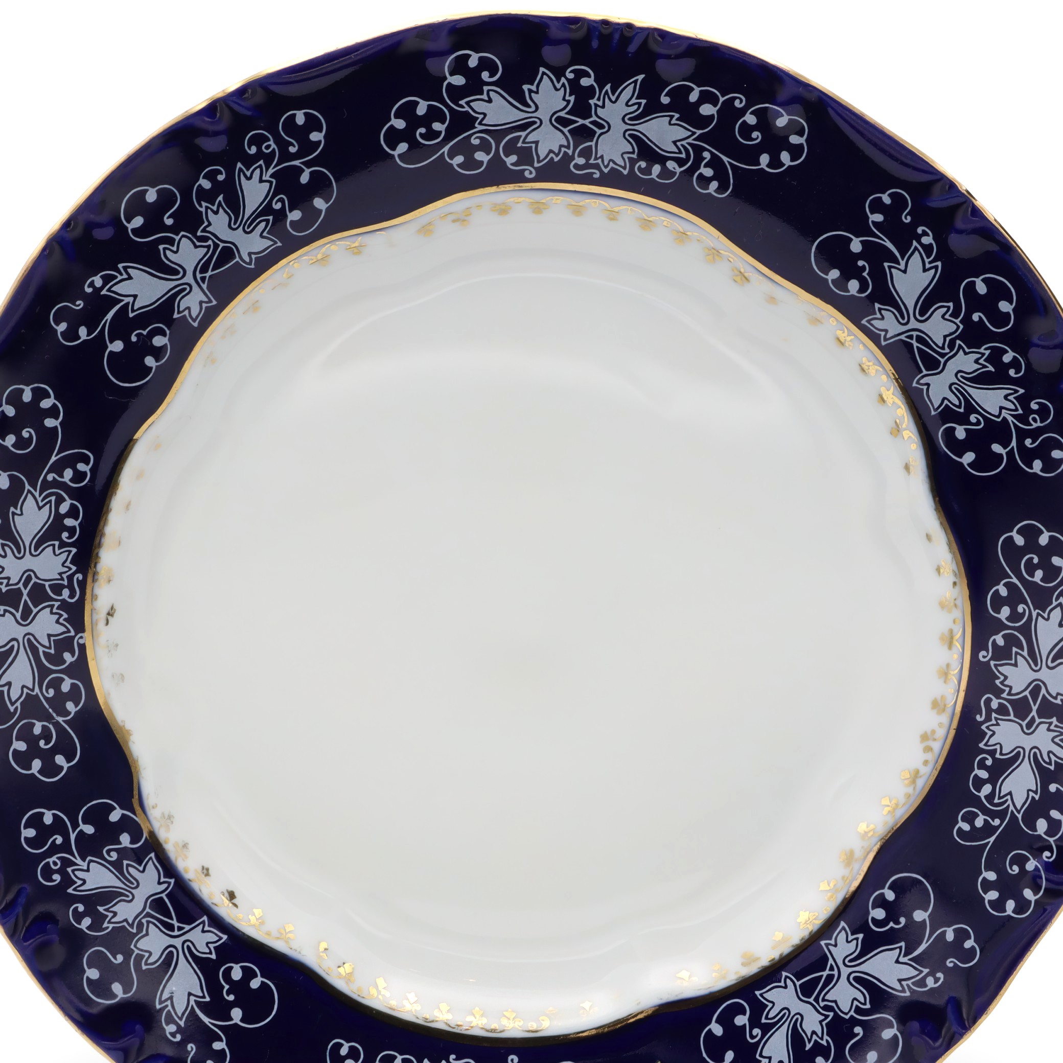 This exquisite dessert plate, crafted in around 1980, is a fine example of Hungarian porcelain artistry from the Zsolnay brand. Its cobalt blue color, adorned with intricate hand-painted gold designs, makes it…